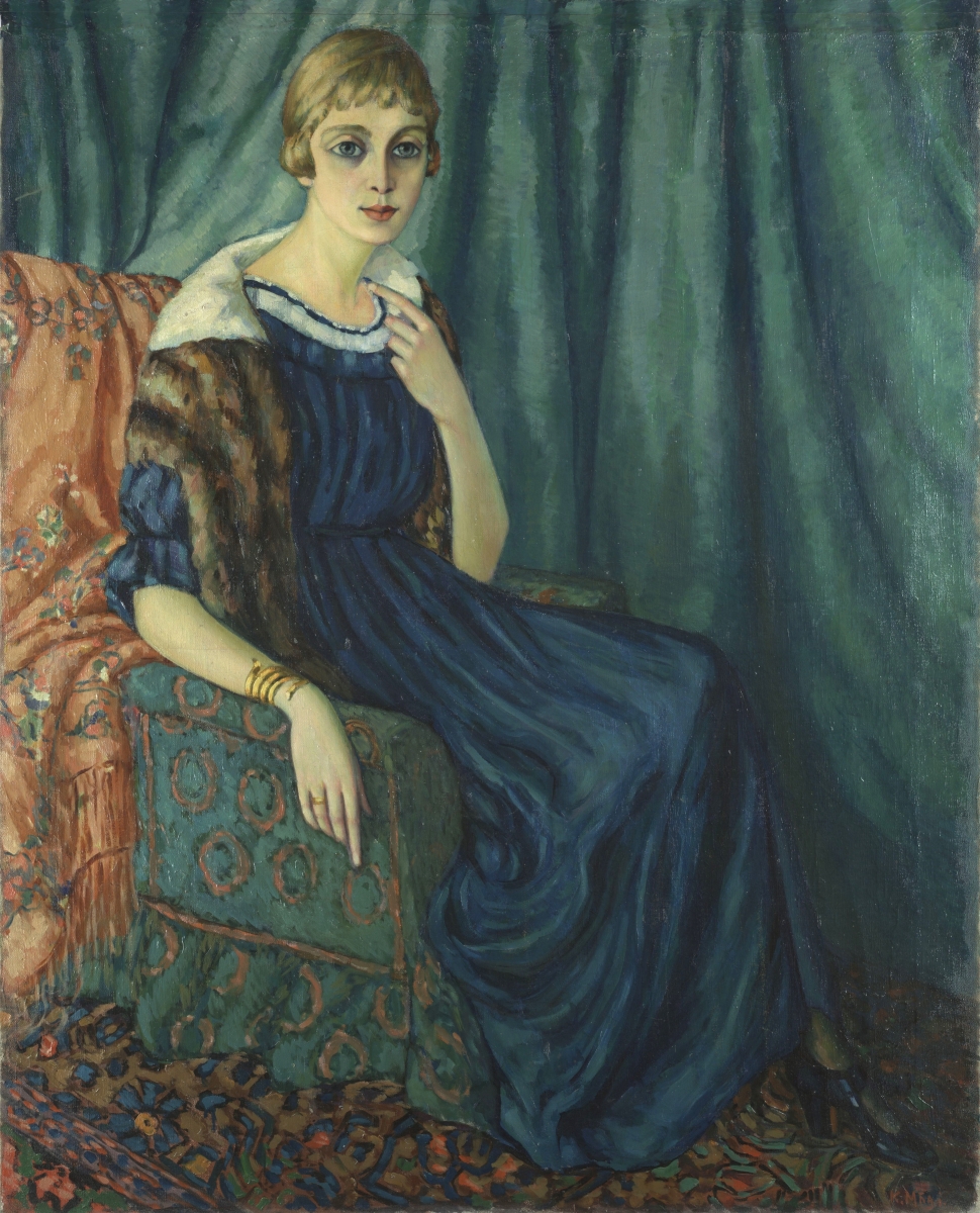 Signature work of the exhibition: Portrait of Linda Uuehendrik-Hakkaja. 1917–1918. Oil, canvas. 139 × 112 cm. Private collection