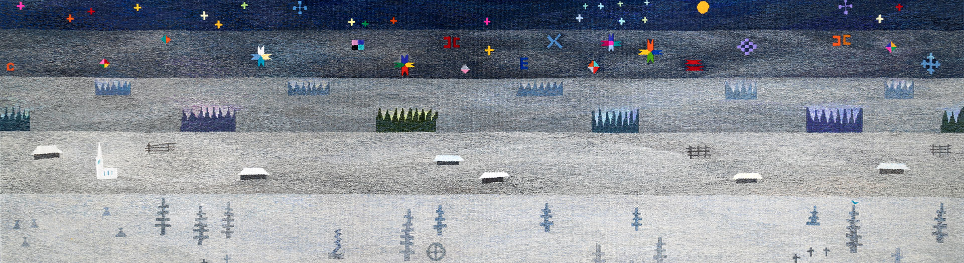 Personal exhibition dedicated to the 75th birtday of the textile artist, professor emeritus and academic Anu Raud. There are about 50 tapestries on display from the period of 1968-2018.Anu Raud is one of the most recognized textile artists, whose lucid sense of life is always on time and who has dedicated her life to teaching. The works displayed at the exhibition form an entirety. In addition to her legendary works “The Collectors”, “Kiln-drying Barn” and “Nordic Night”, a number of entirely new rugs, dedicated to the centennial of the Republic of Estonia, are on display, including the title tapestry “Landscapes of My Fatherland”. The exhibition is accompanied with the drawings and photos by her students that depict the inspiring milieu of Raud’s homestead at Kääriku.