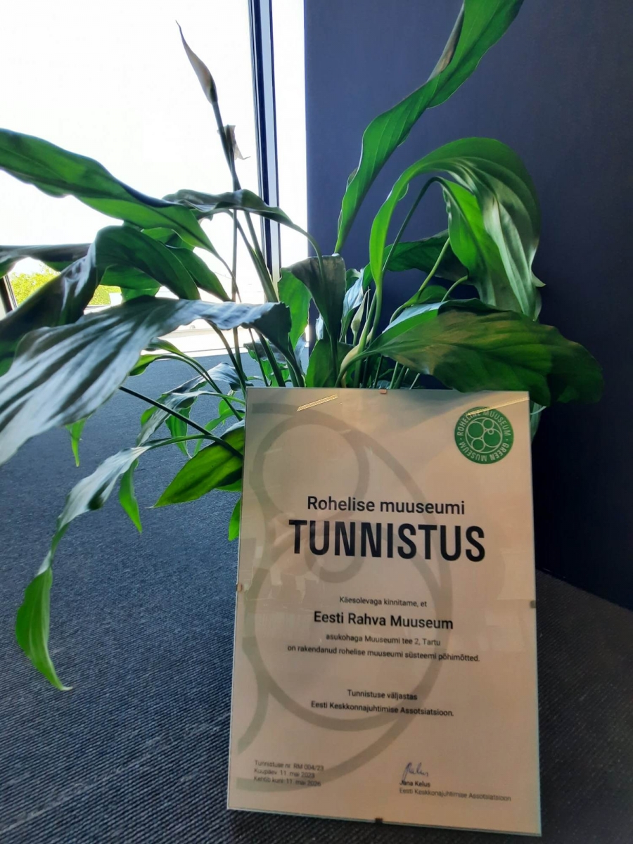 Eile, 15. mail anti välja uued rohelise muuseumi tunnustused ning selle pälvis ka Eesti Rahva Muuseum. Rohelise muuseumi sertifikaati annab välja Eesti Keskkonnajuhtimise Assotsiatsioon ja sellega tunnustatakse muuseume, kes tegelevad aktiivselt oma tegevuse jätkusuutlikumaks muutmisega.