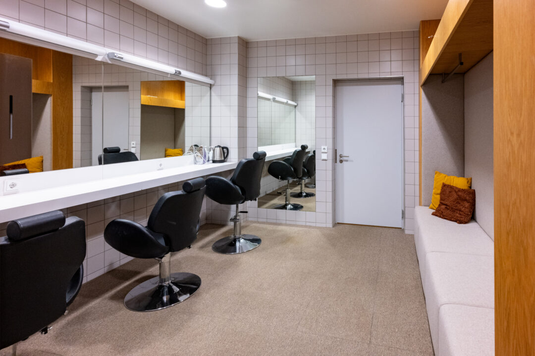 - Standard- ja nurgapoodiumid ning toolid, mis võimaldavad istekohti paindlikult paigutada vastavalt ürituse vajadusele