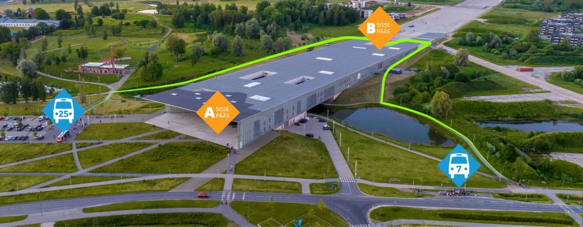 Juhis jalgsi ja bussiga tulijale A- ja B-sissepääsudeni.