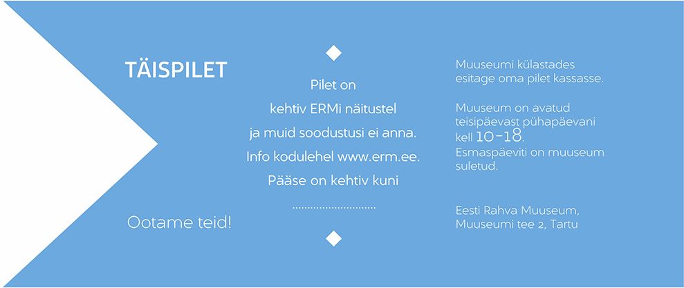 NB: Iga kuu teisel pühapäeval kehtib ERMi piletitele 50%line soodustus (ei laiene ERMi aastapiletitele ja grupikülastustele).