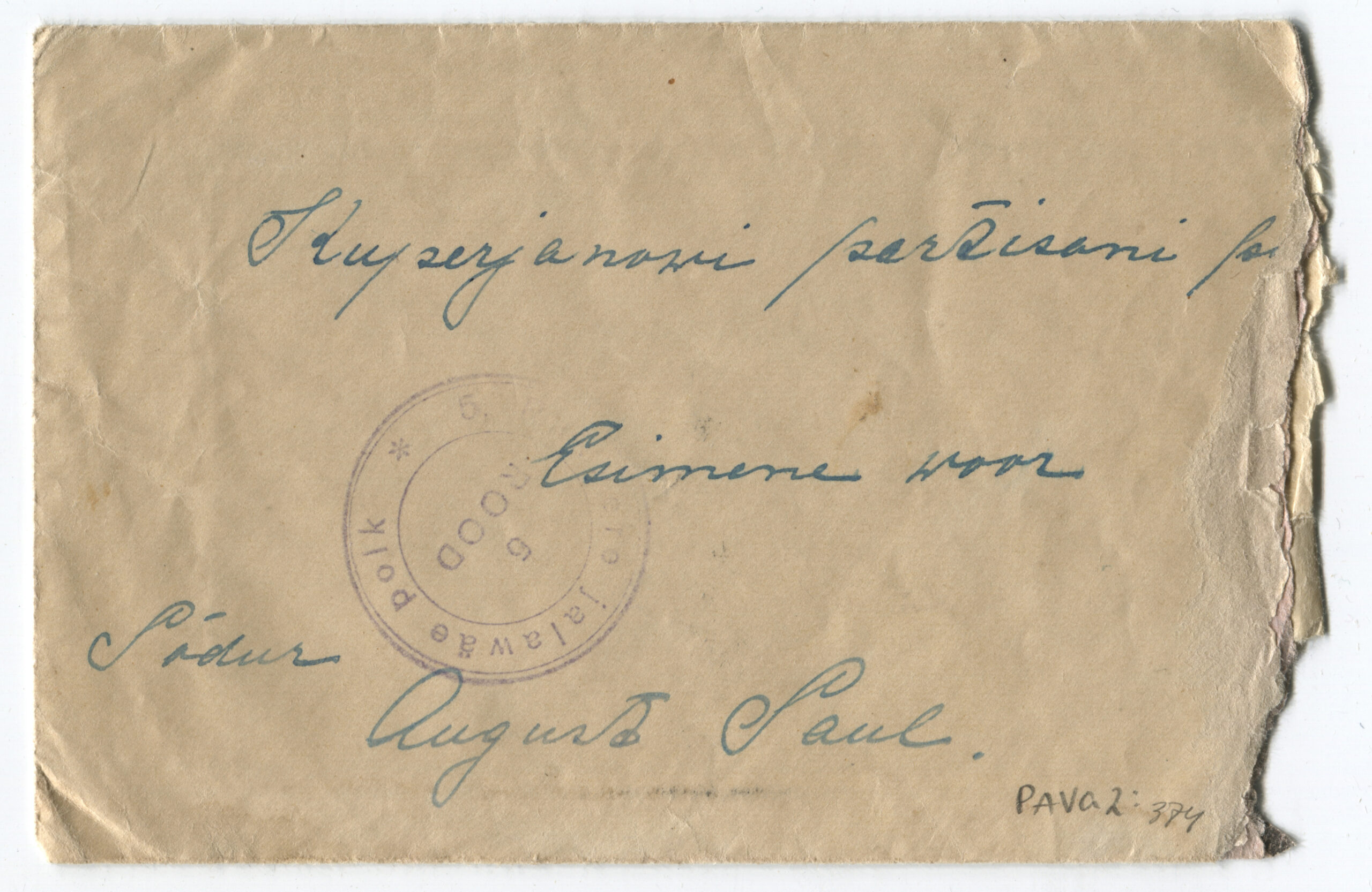 Kiri on saadetud Tunne Kelami isale. „Ta oli Tallinna Kunsttööstuskooli vabatahtlike hulgas, soomusrongil oma sõbra ja toakaaslase Eduard Wiiraltiga, suhteliselt lühikest aega. Mäletan tema juttu mõnest episoodist, mis seotud just rongil olemisega. Kirja saatja peaks olema tema vend, minu onu Kristjan Sink,“ meenutab Tunne Kelam.Kopli Sõjawäe Haigemaja Tallinnas / Kirjade tarwis