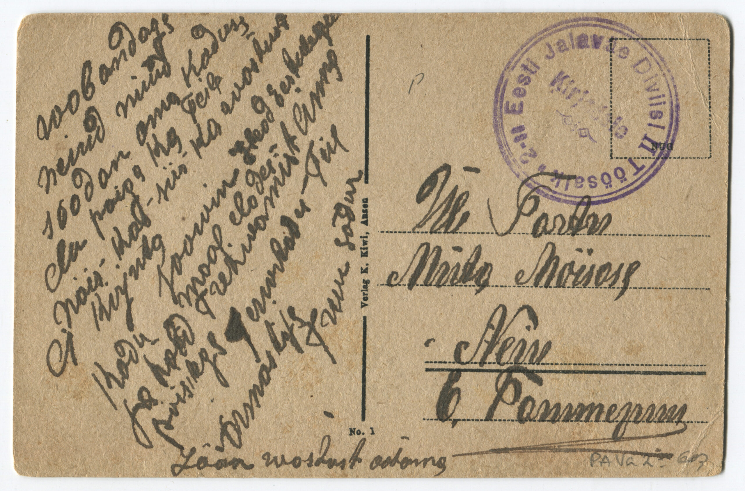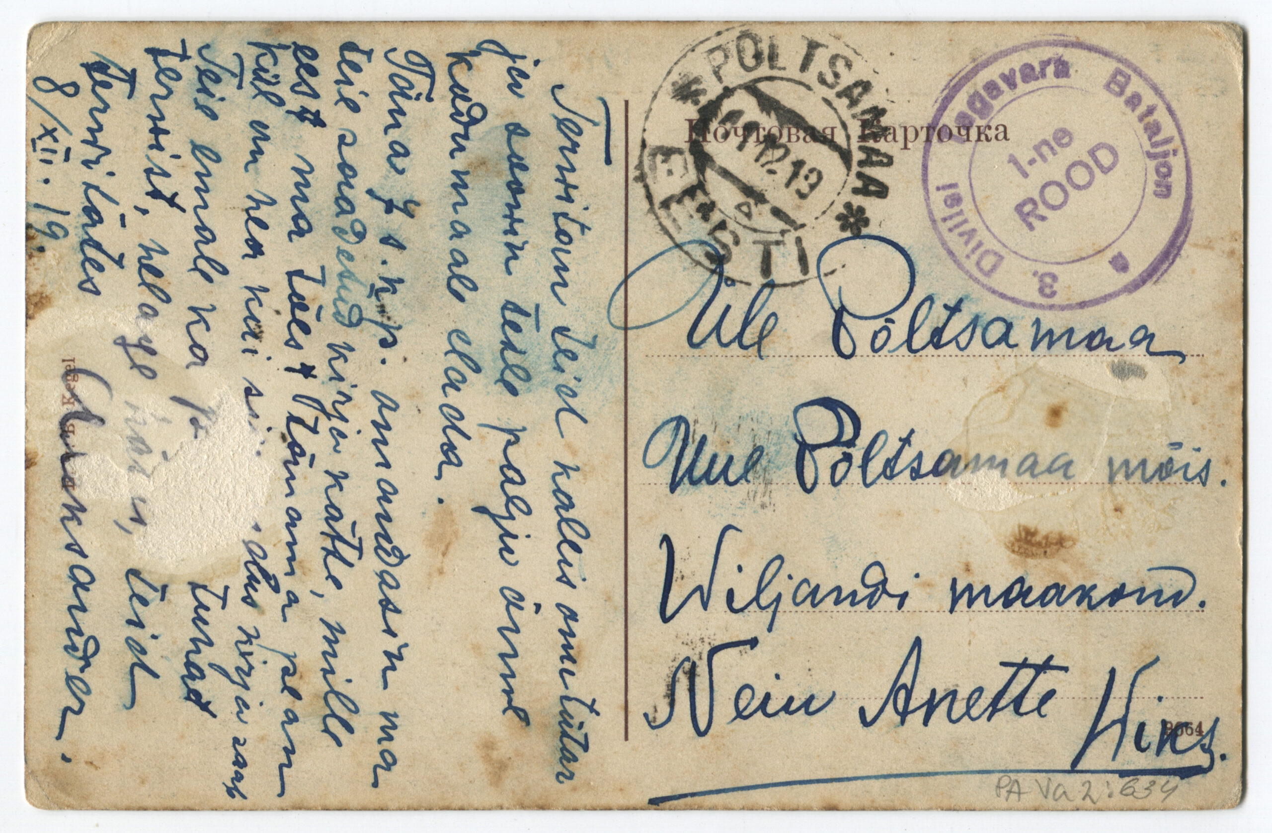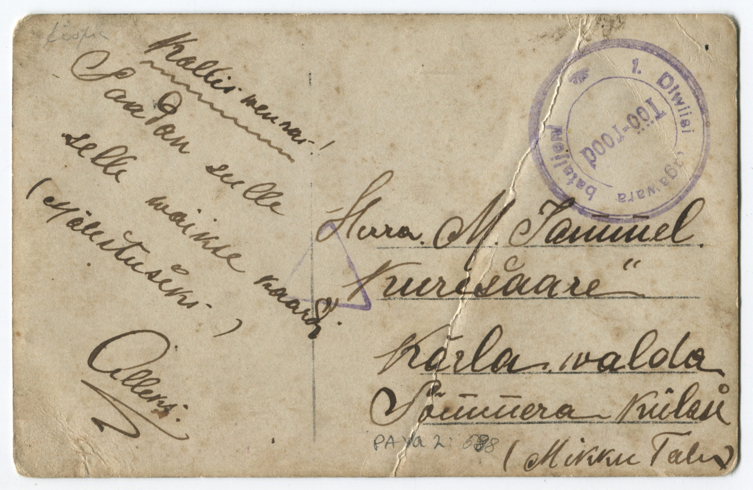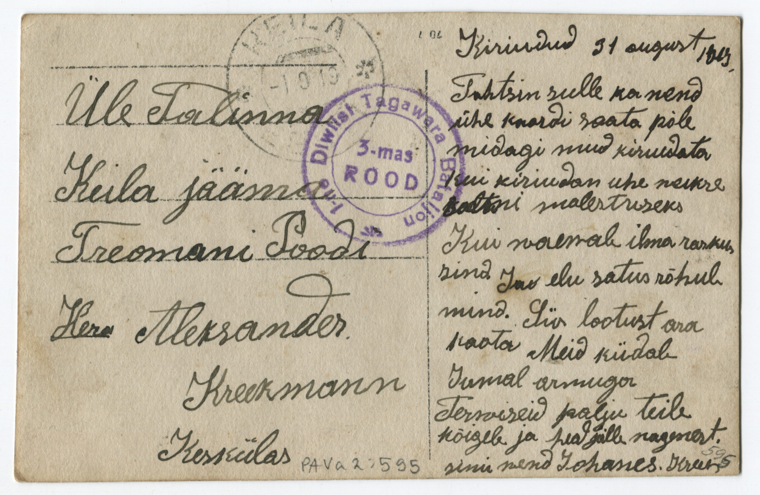 ERMTempel: 1-se Diviisi tagavara pataljon / Kirjadele