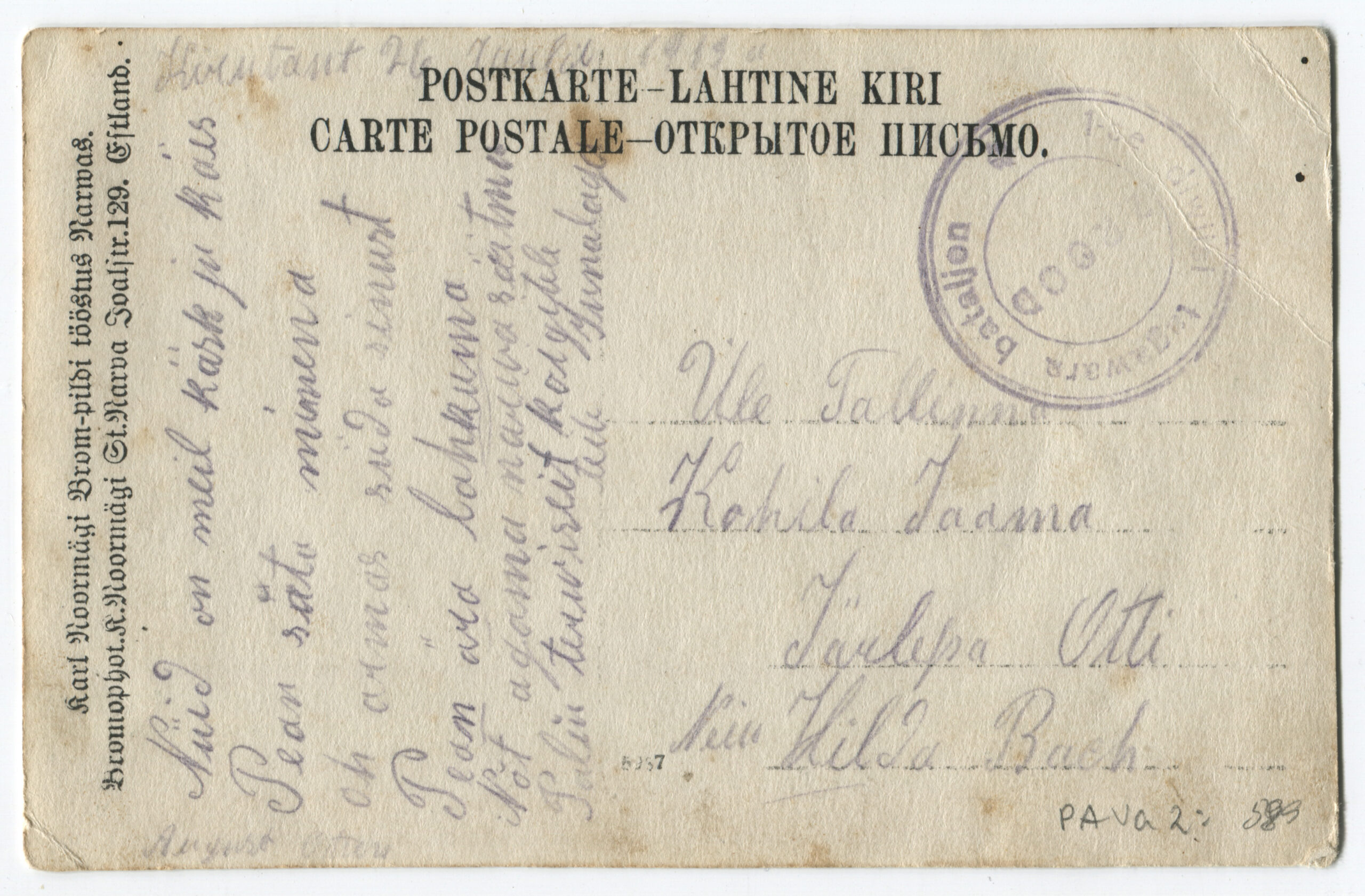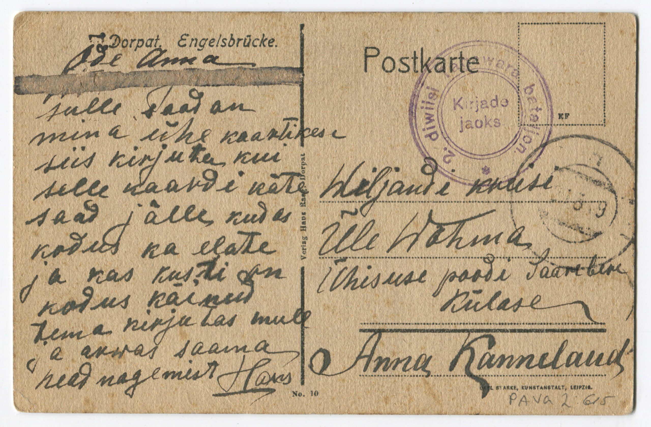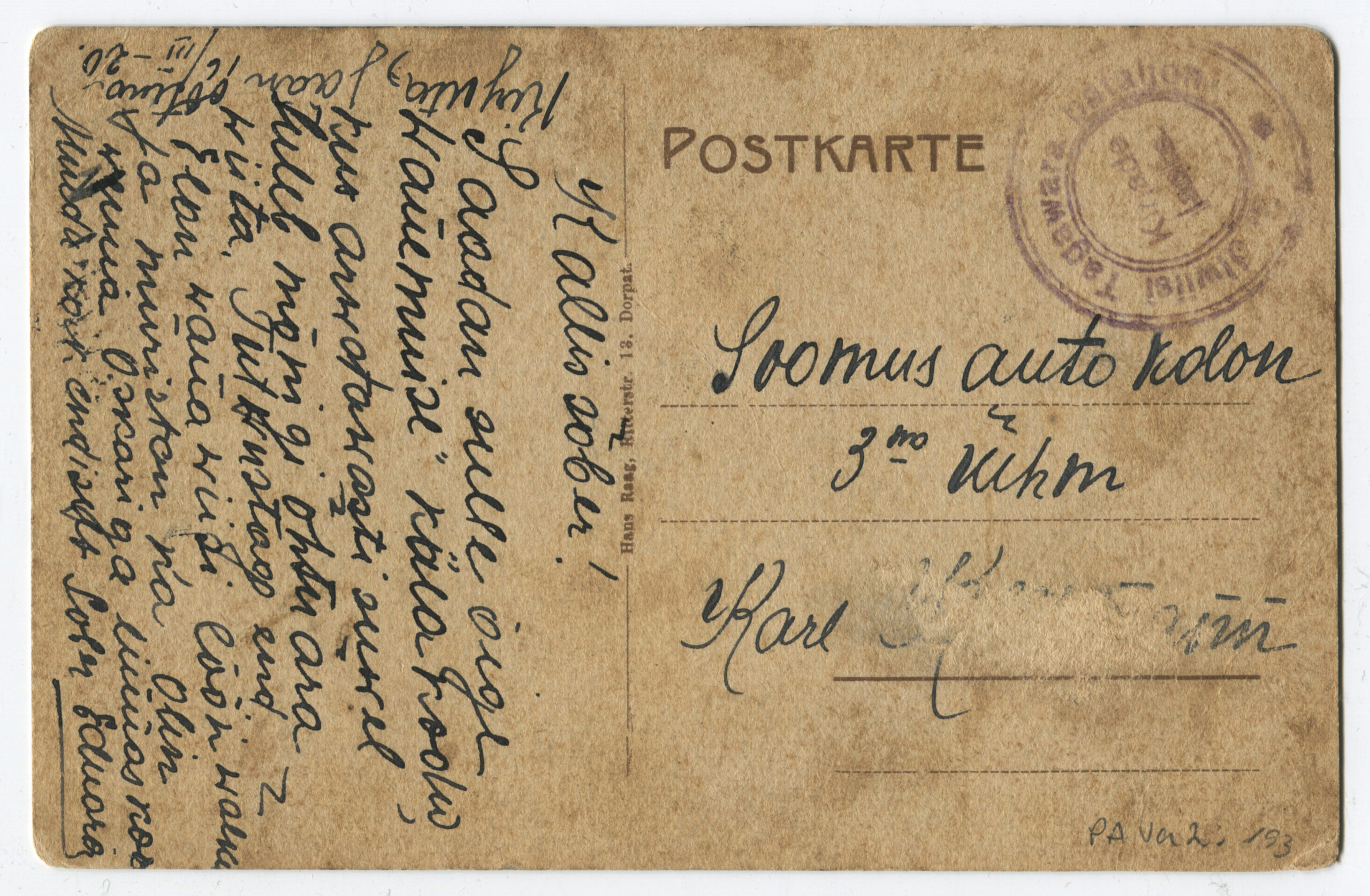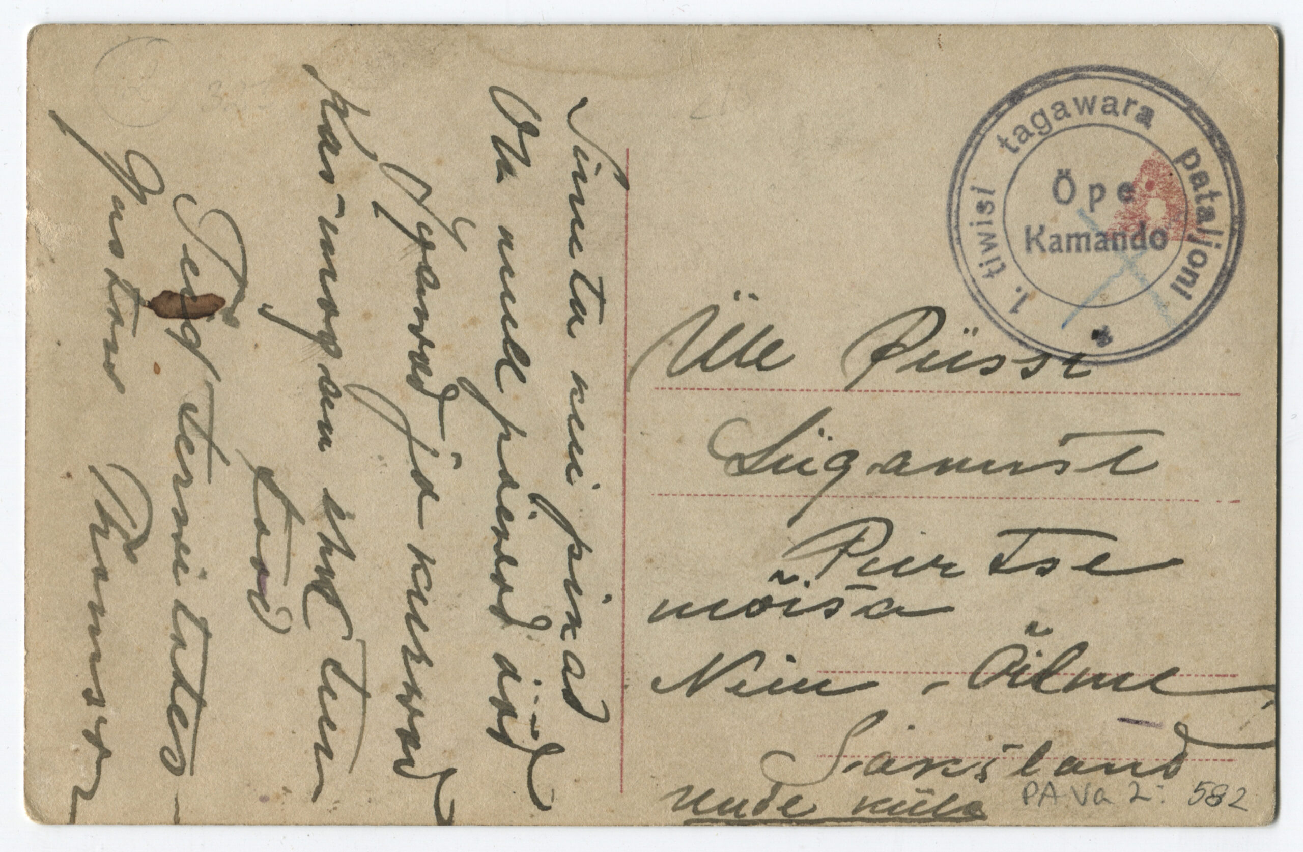 ERMTempel: 1-se Diviisi tagavara pataljon / Kirjadele