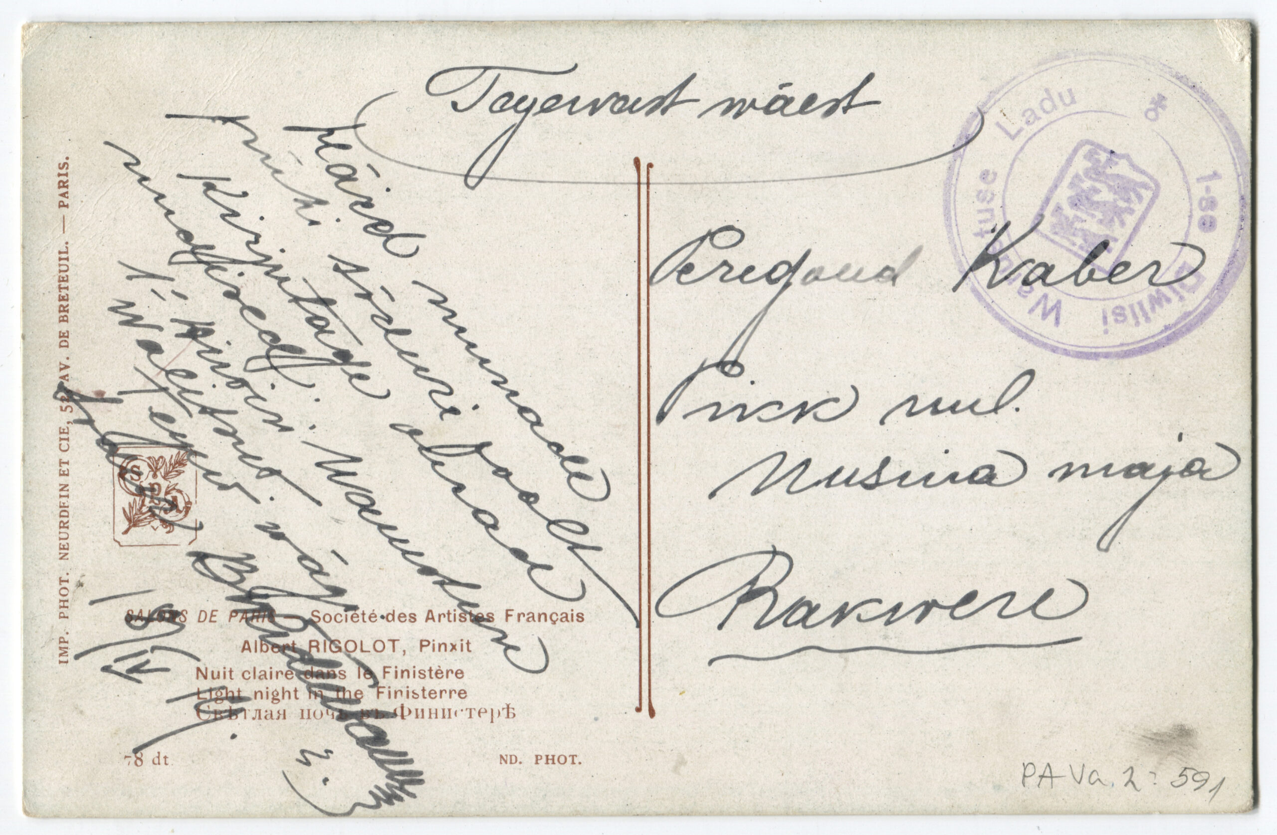 ERMSalons de Paris. Societè des Artistes Francais Nuit claire dans le Finistère / Kuuvalge öö Finistere`is