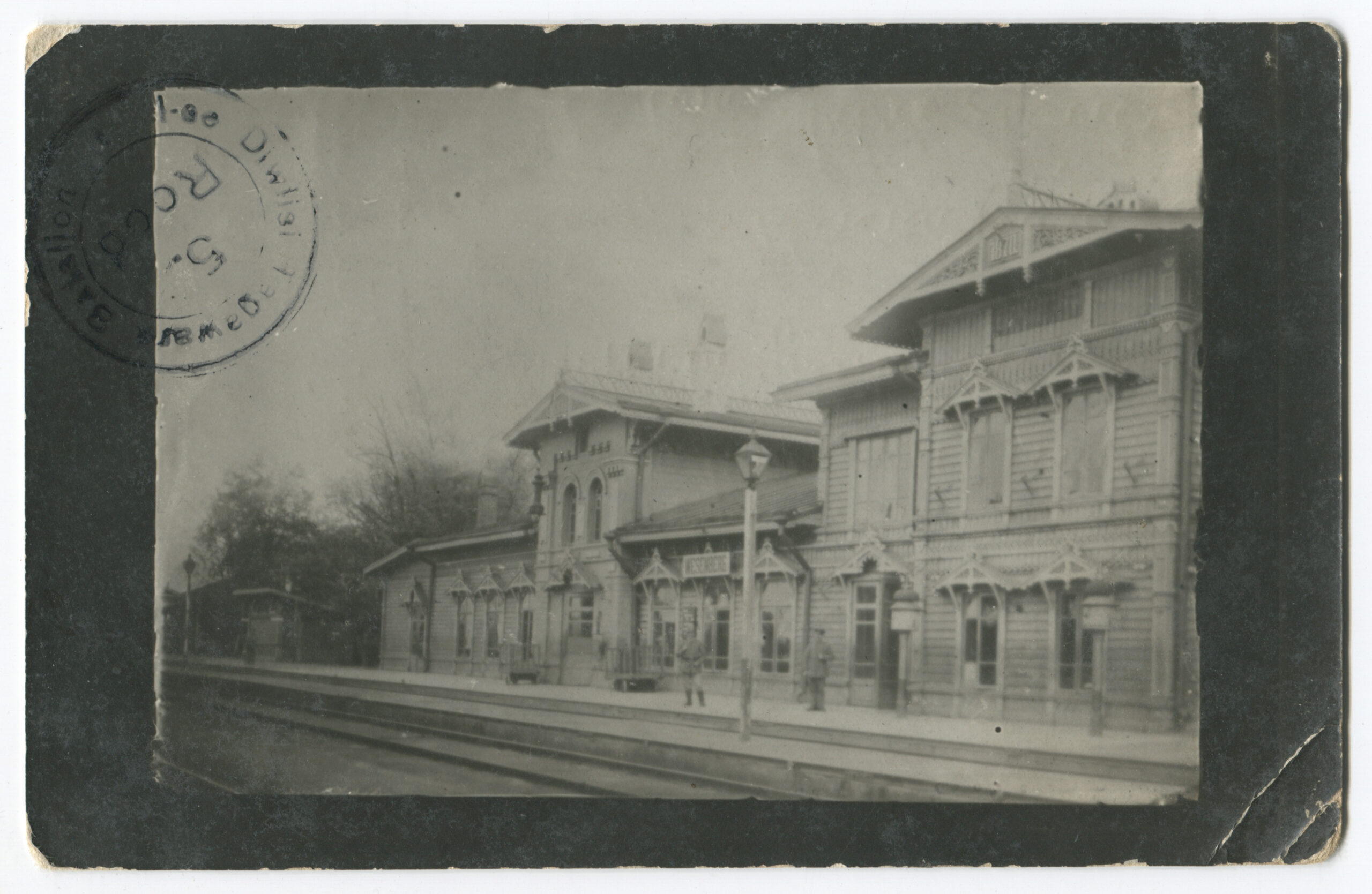 Kolmnurkne Tartu Sõjaväe Kontrolli tempel „SK“. Kohanimed on kustutatud.