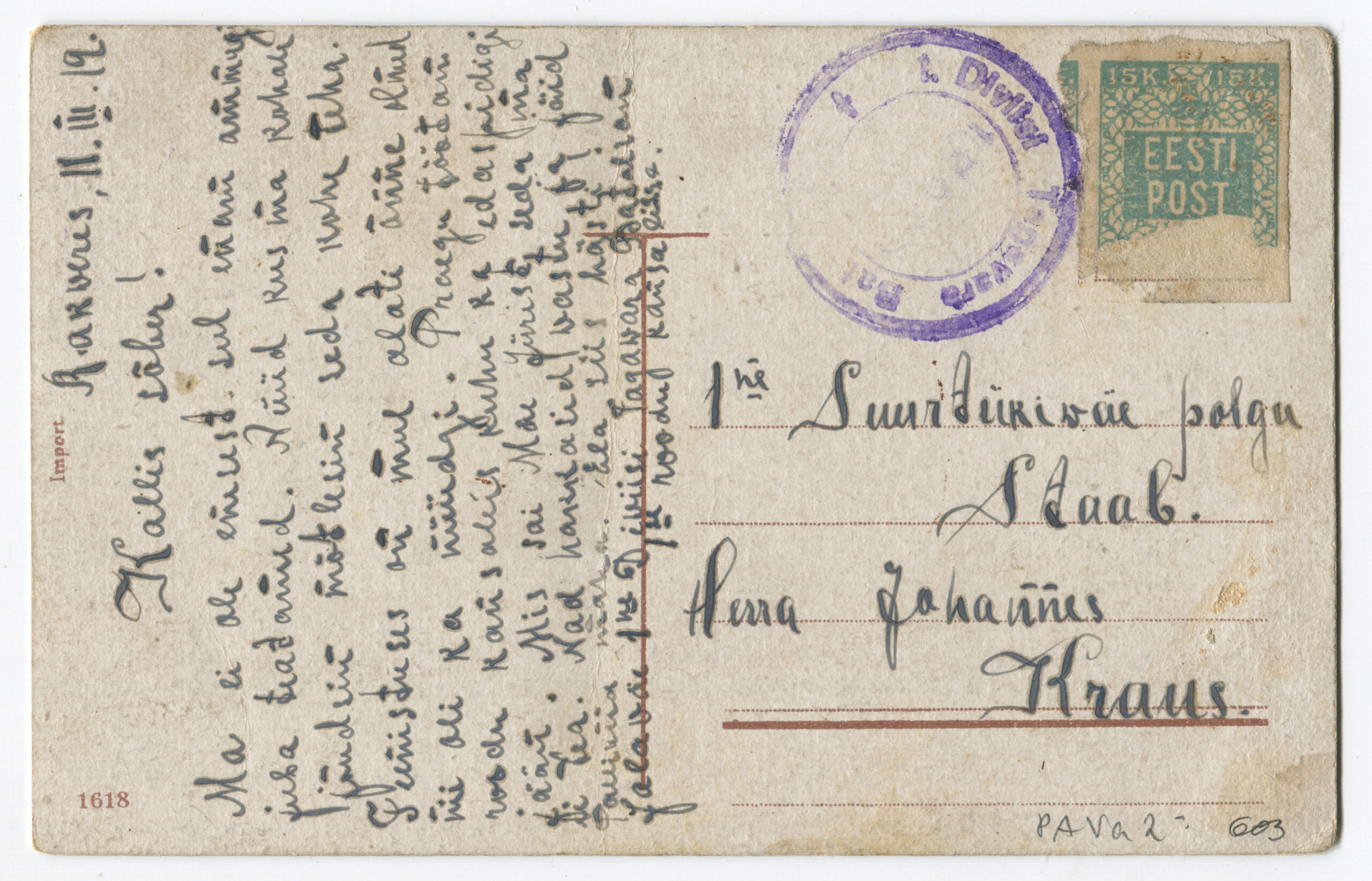 Jätkame Eesti Vabadussõja postiajaloo kogu sirvimist. Näituse neljandas osas on 1., 2., ja 3. diviisi väeosade postitemplid.