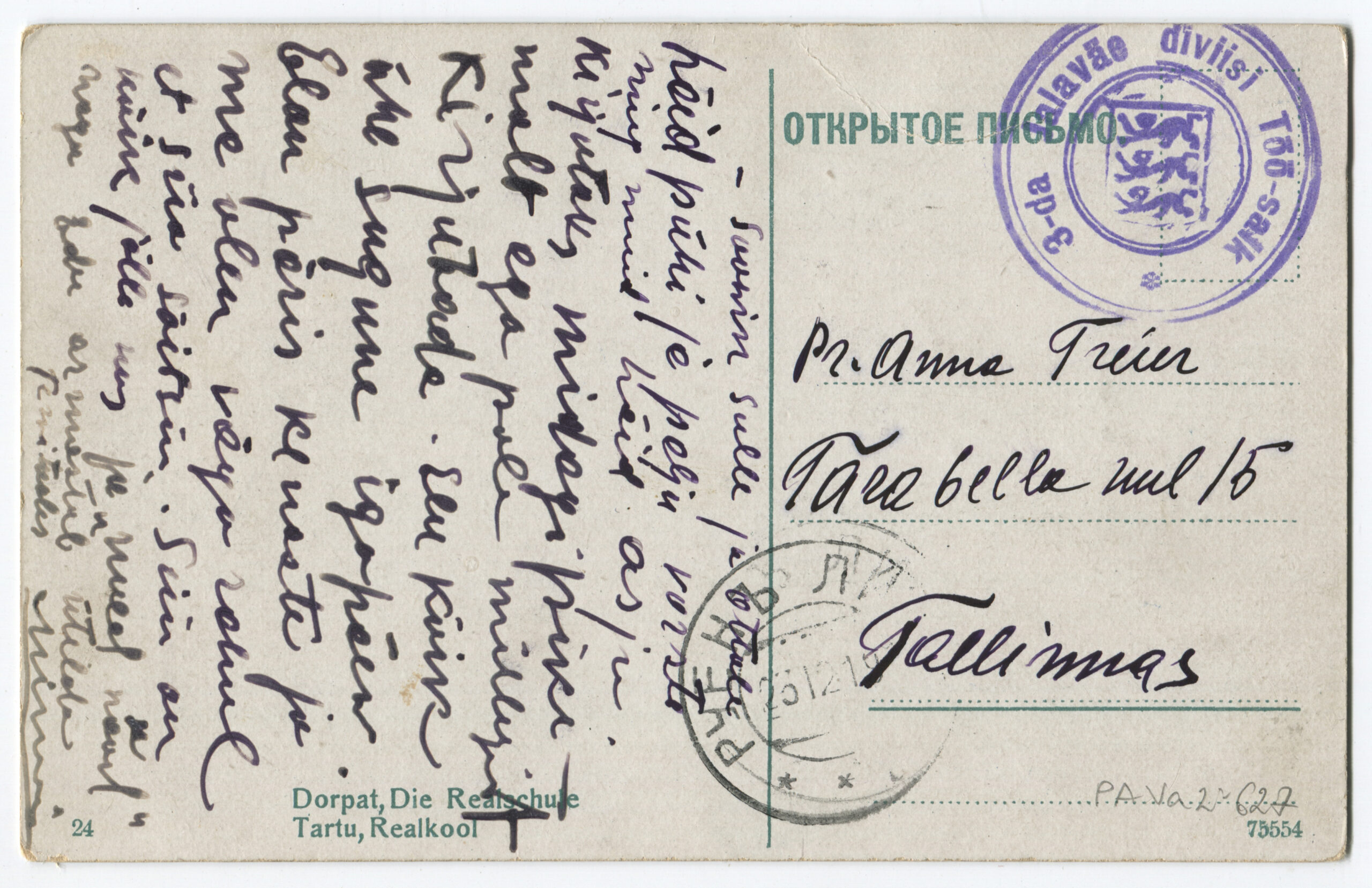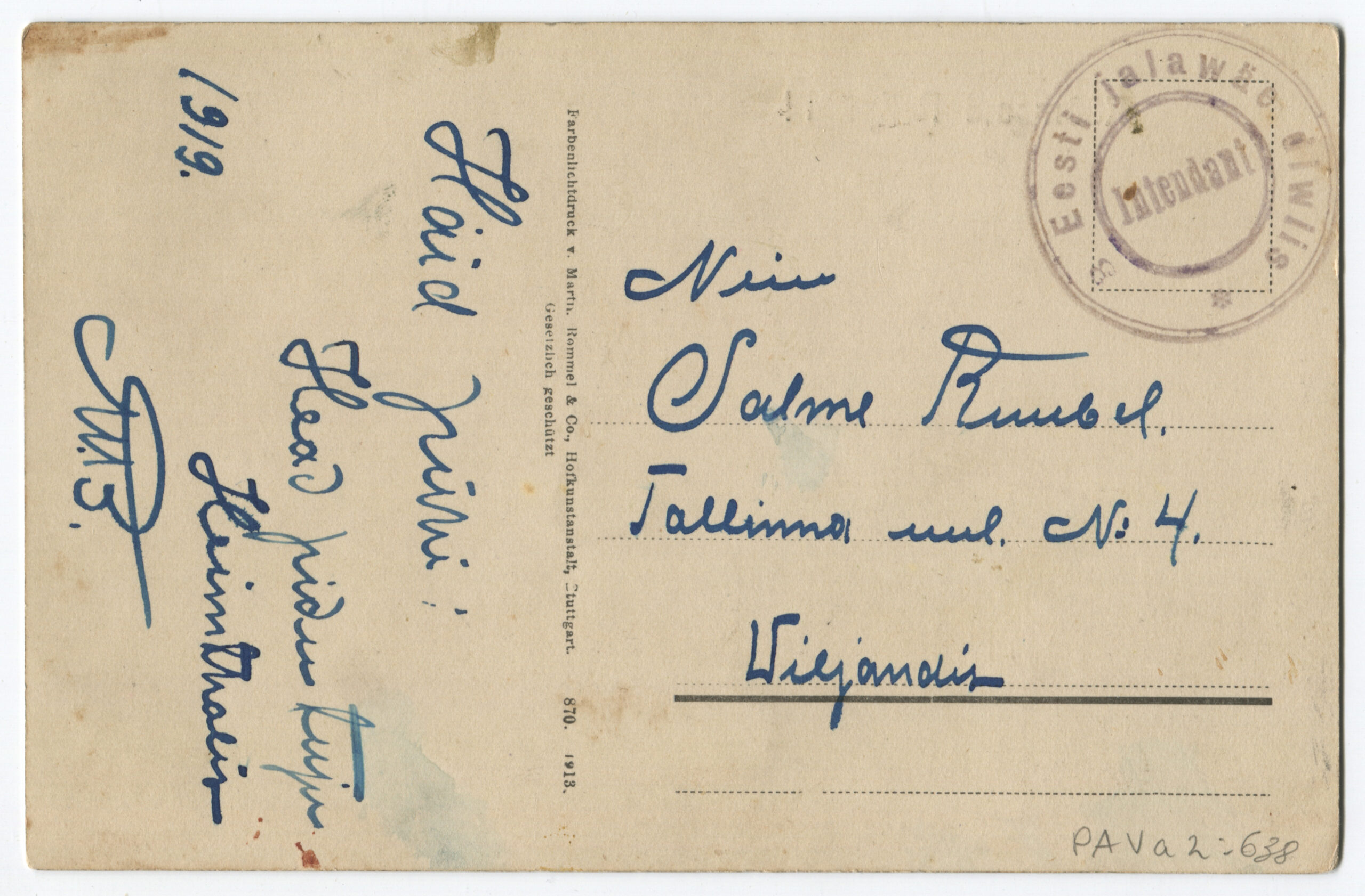 ERMTempel: 3 jalaväe diviisi Intendandivalitsus / Kirjadele