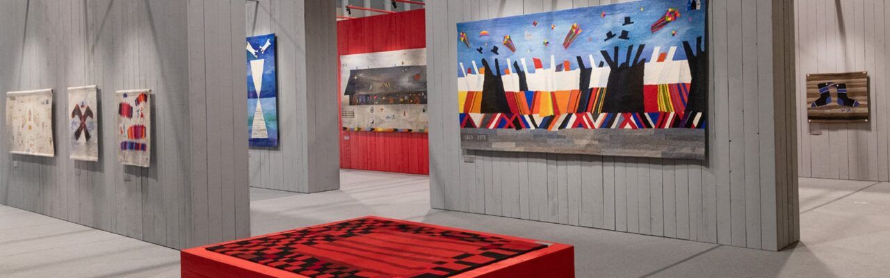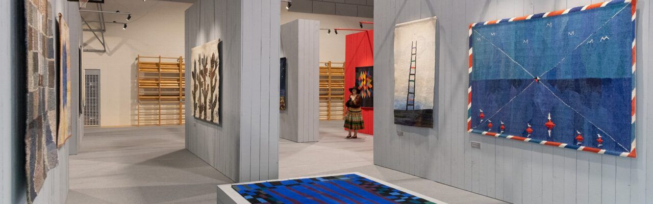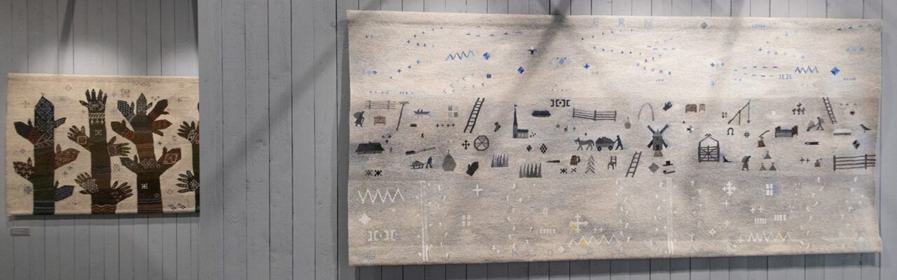 Anu Raud vaibakunstnikuna. Näitusel on väljas valik tema vaibaloomingust.