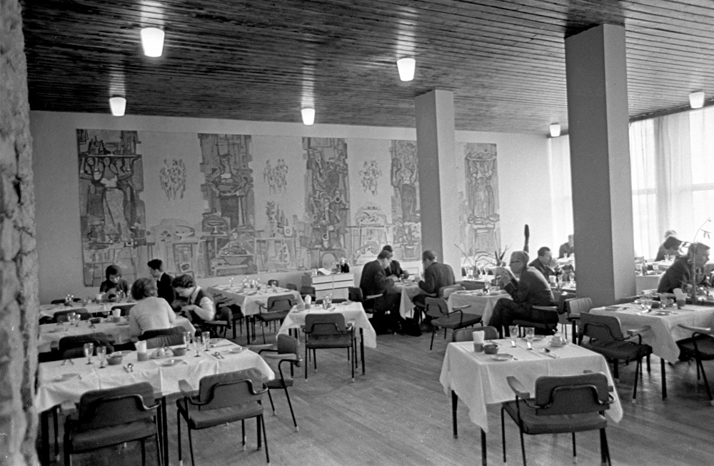 Ajaleht Edasi (24.12.1965) kirjutas kunstiteostest, mis esimest korda kujundasid toonases Tartus vastavatud hoonet ansamblina. Nendest kaalukaim oli restorani Tarvas tarbeks loodud monumentaalne sgrafiitotehnikas seinapannoo – üks esimesi ja julgemaid modernistliku kunsti näiteid sõjajärgse Eesti avalikus ruumis. Tehniliselt meisterlik ja väljendusrikas pannoo oli hele-tumedalt rütmiline ja elav, väljendas elurõõmu ning külluslikkust. Seda on peetud Elmar Kitse tippteoseks ning töö valmides levis arvamusi, et „see kõik saab ehk kõrtsi jaoks liiga hea“.