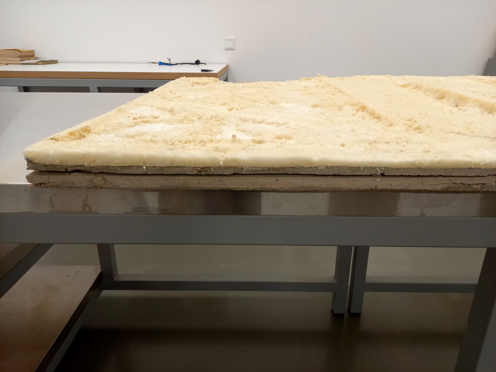 - pannoo krohvikiht ümbritseti raamiga, täideti plaatimisseguga, siluti sisse krohvivõrk ning asetati peale toestusplaat; paigaldati raskused ja jäeti kaheks nädalaks kuivama;