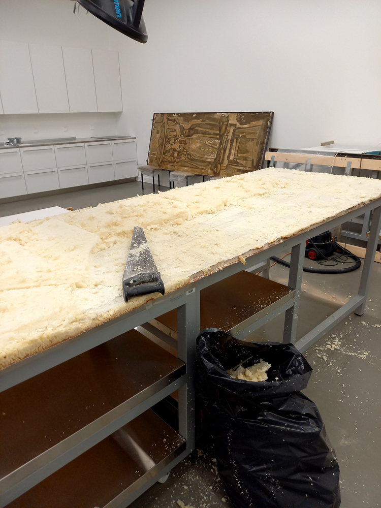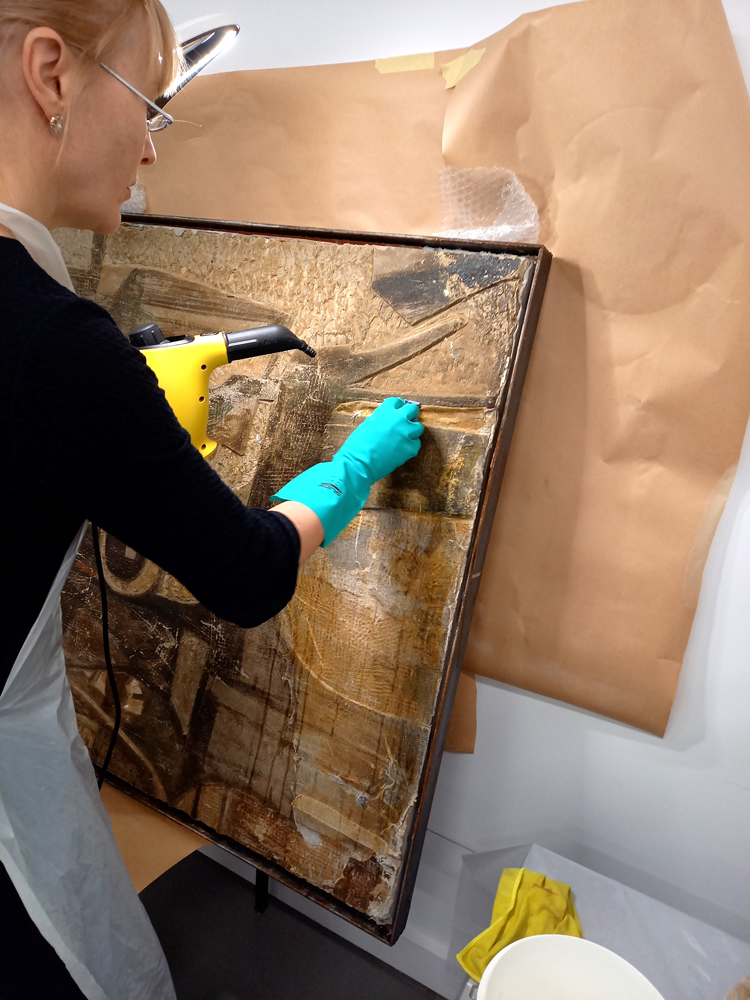 - kanga- ja liimikihid eemaldati teose pinnalt kuuma vee ja kuumaurupihusti abil.