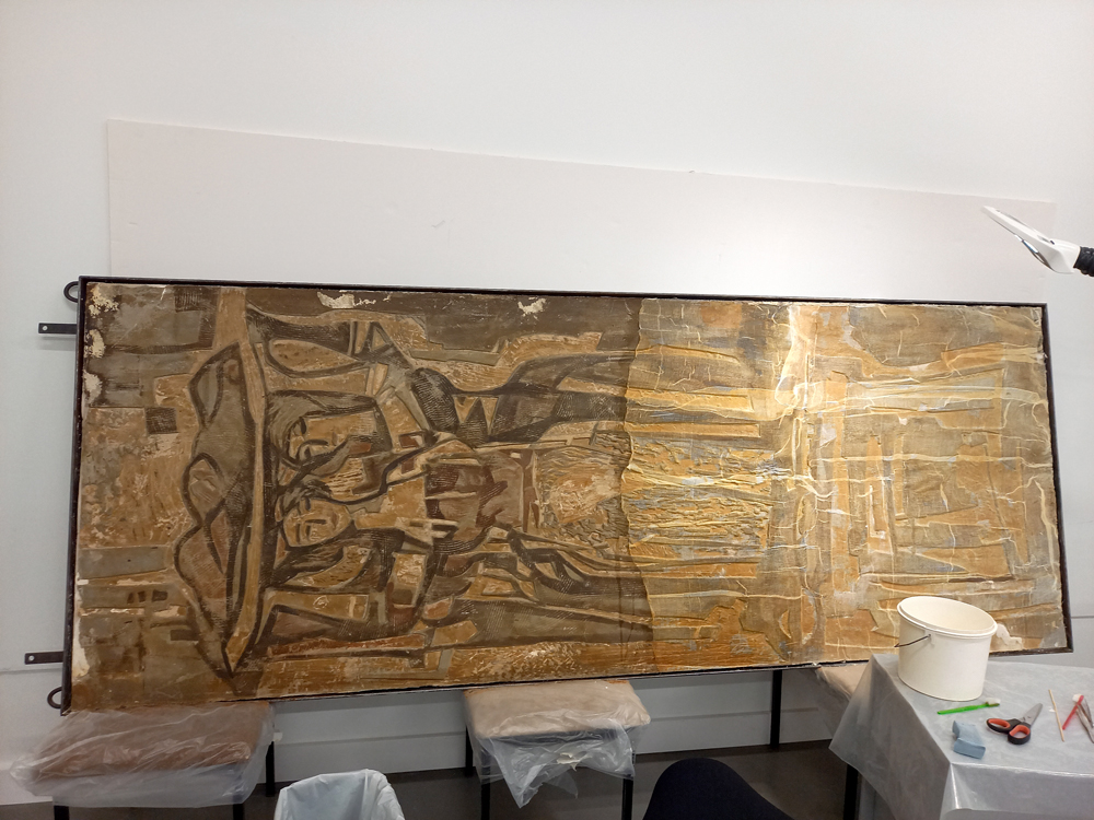 Aastaid hoiti pannootahvleid ERMi puiduhoidla koridori seina ääres, kuni näituse „Kellele kuulub öö?“ kuraator soovis eksponeerida keskmist tahvlit. Kuraatori palvel ning demonteerimist juhtinud Hilkka Hiiopi julgustusel ja juhendamisel algas keskmise tahvli nn lahtipakkimine. Selle käigus selgus, et pannoo seisund on halb – sgrafiitotehnikas krohvikiht oli ulatuslikult irdunud seina krohvikihist ning nõudis põhjalikku stabiliseerimist. Sama võis eeldada ka ülejäänud tahvlite puhul.