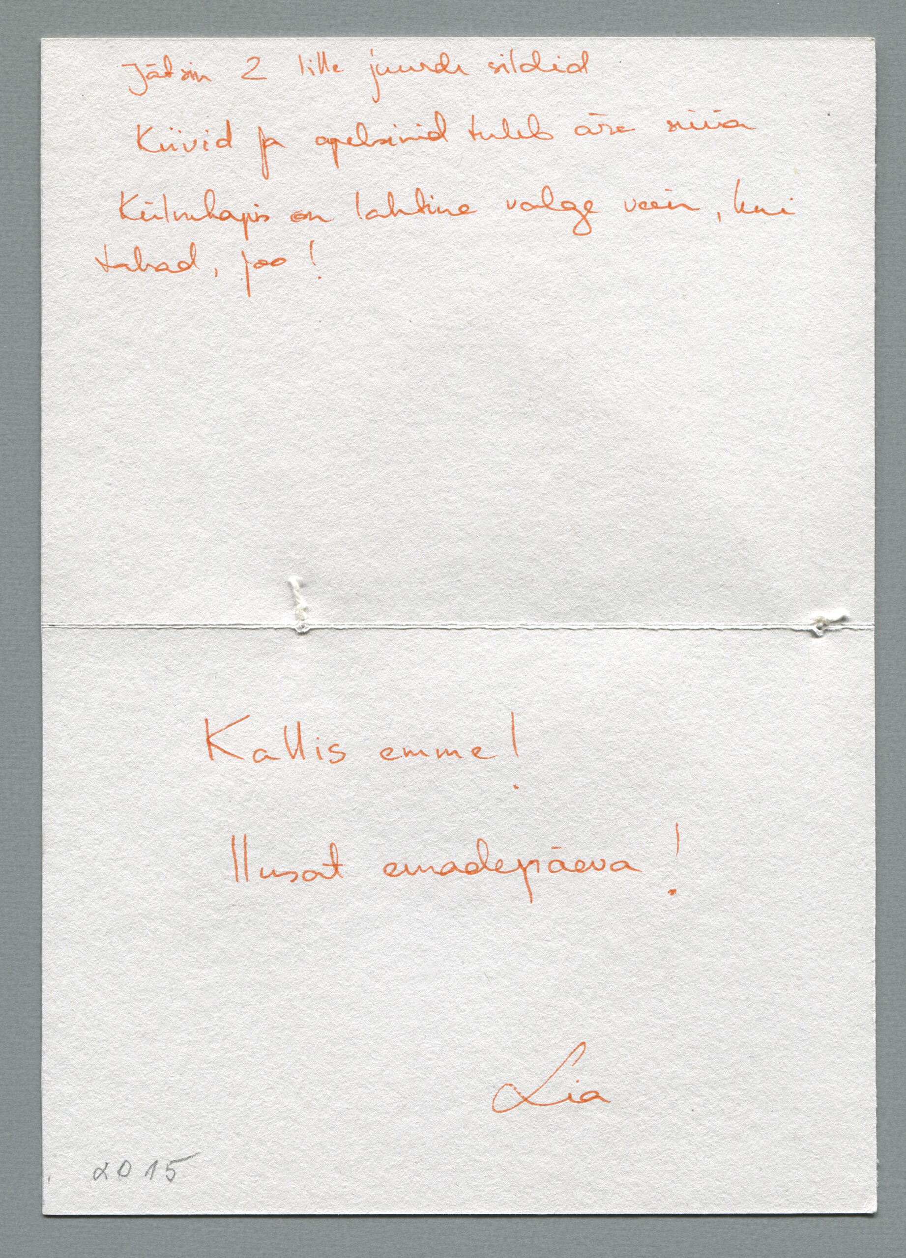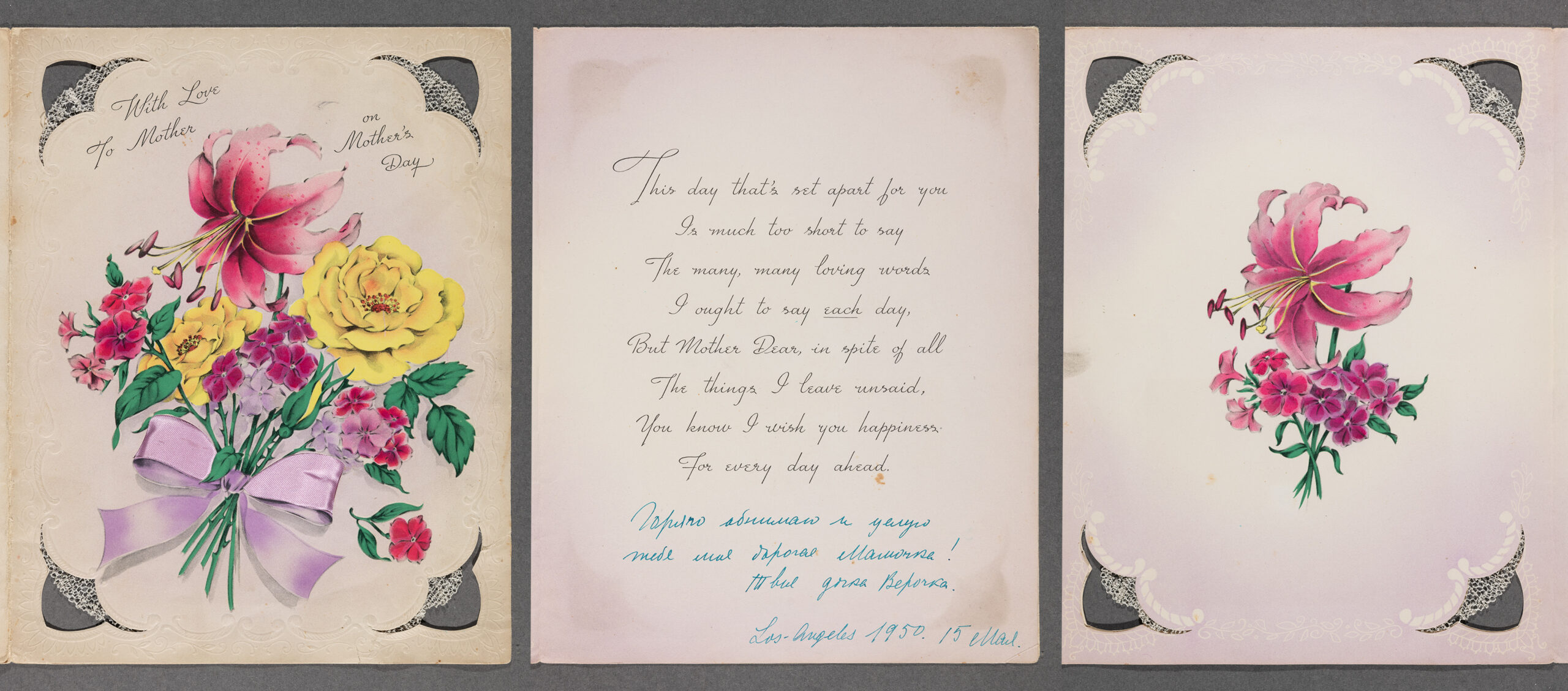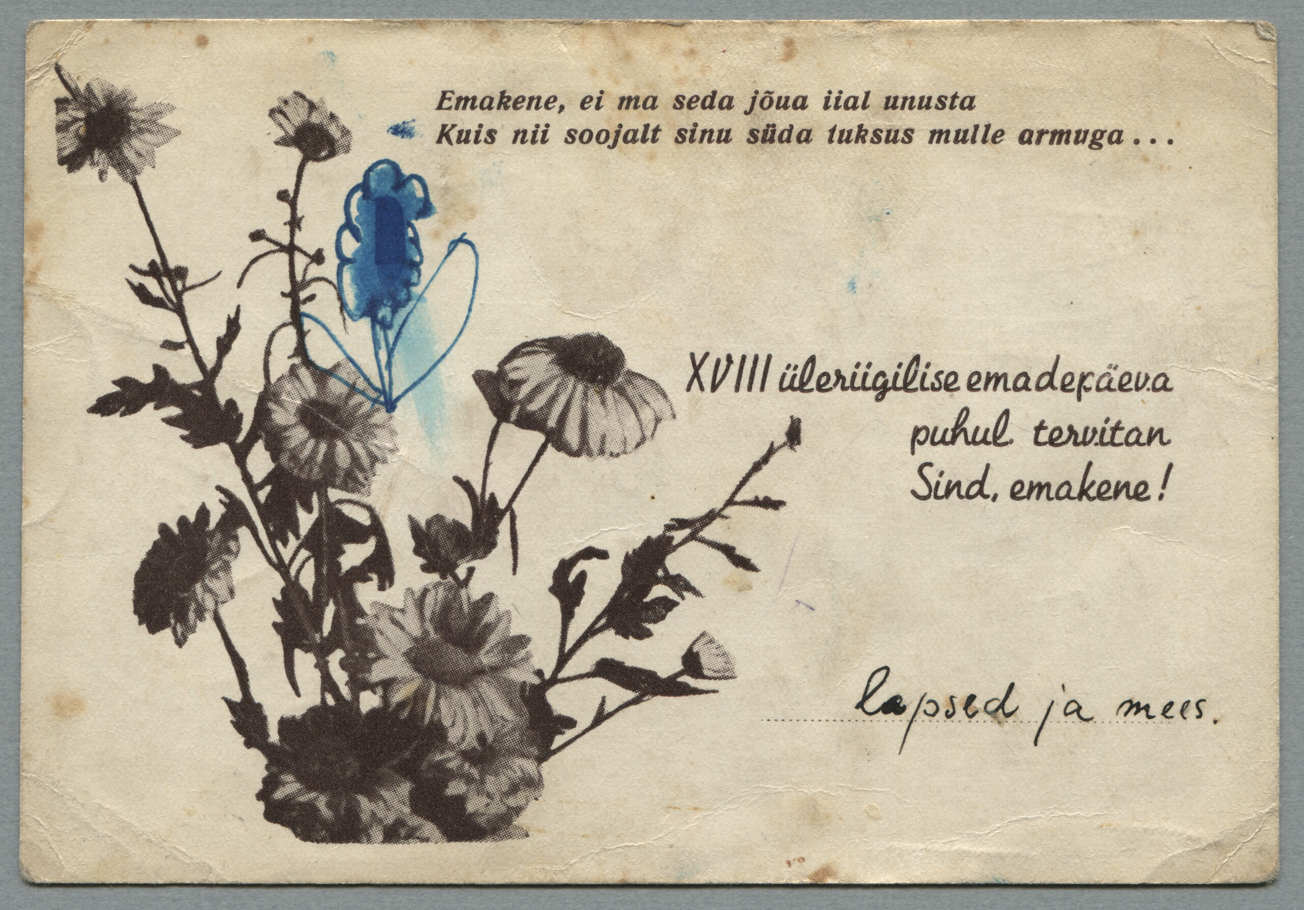 ERMi koguVega Küüni meisterdatud emadepäeva kaart Fernanda-Alide Küünile aastatel 1934–1947