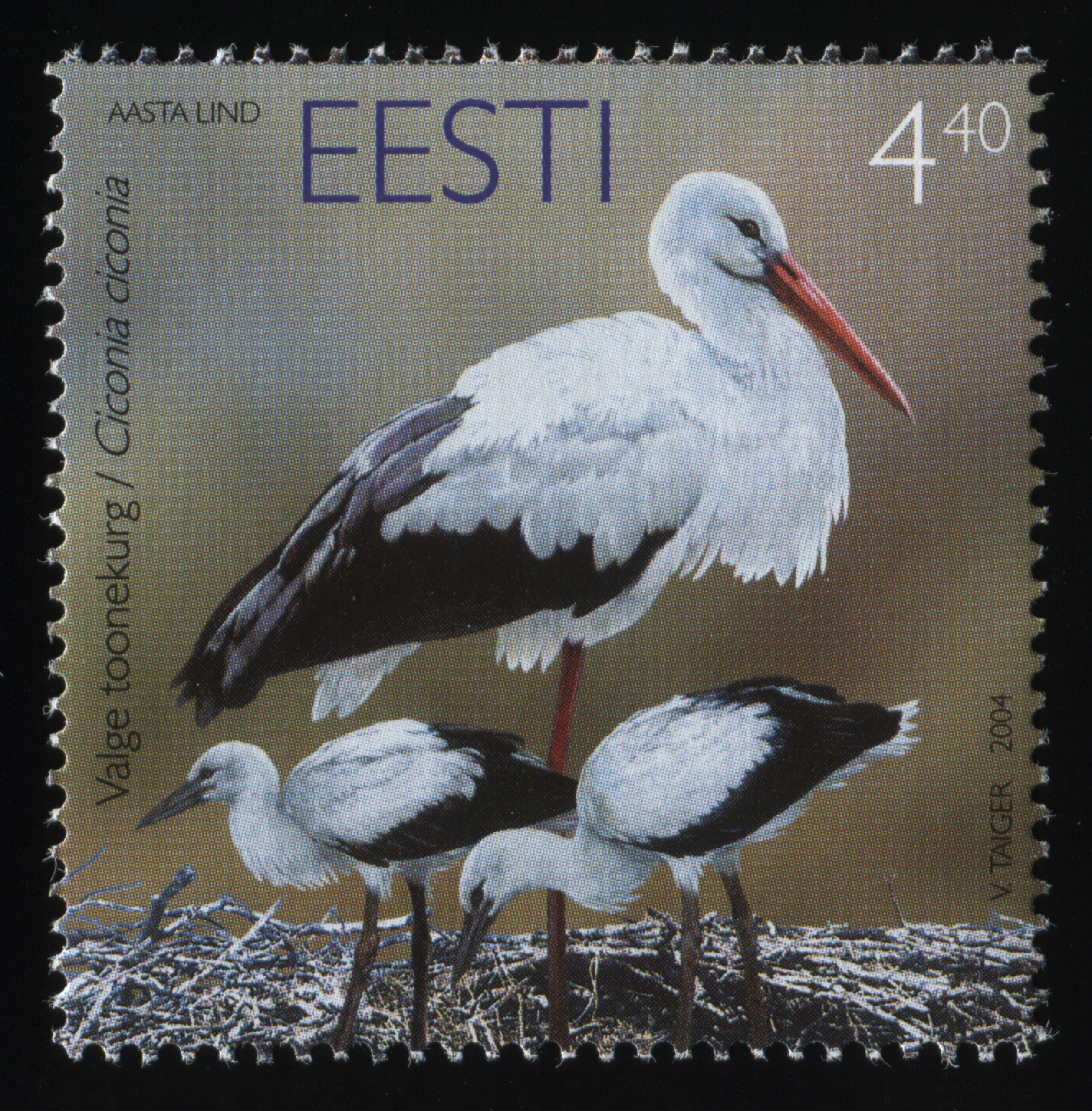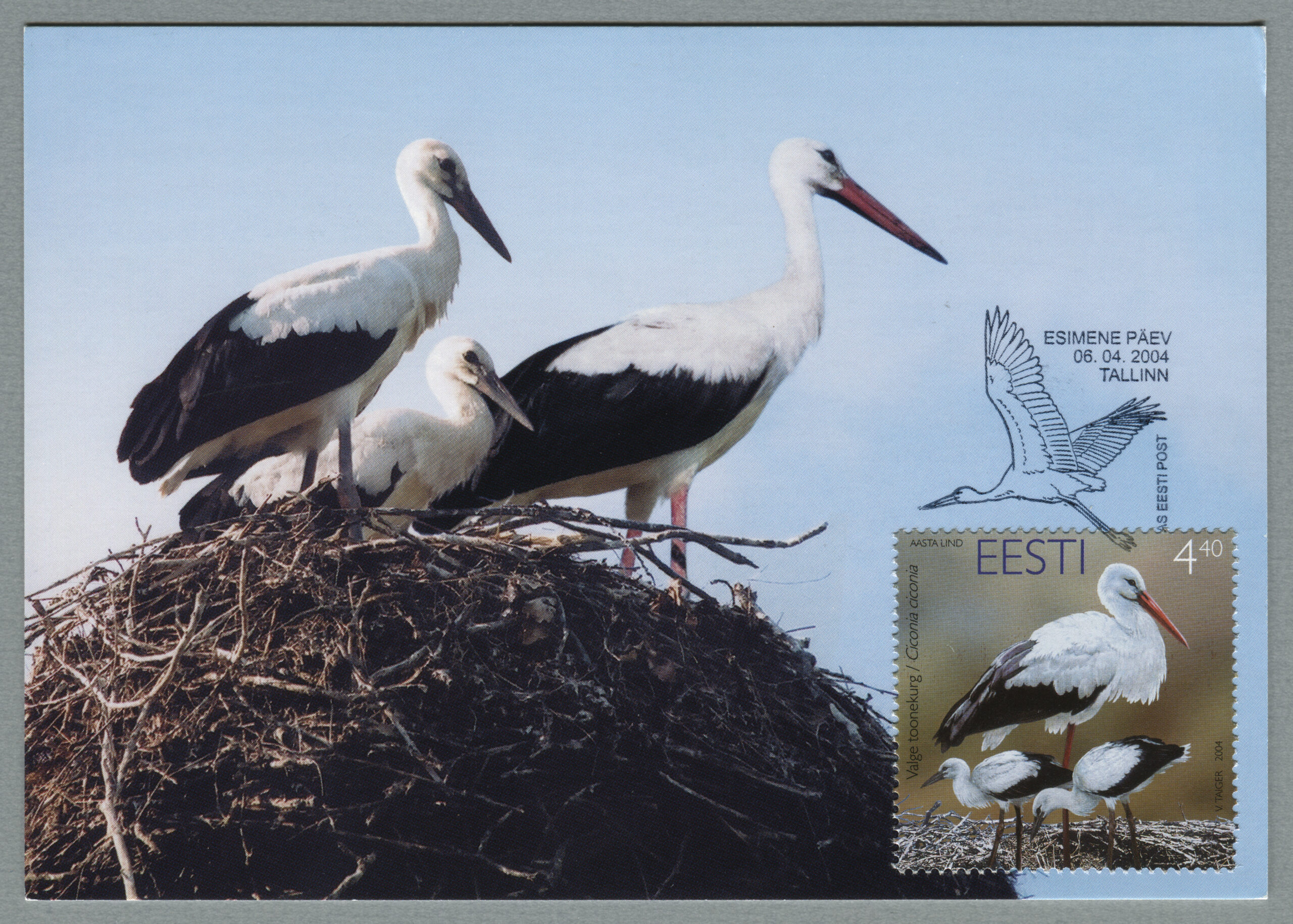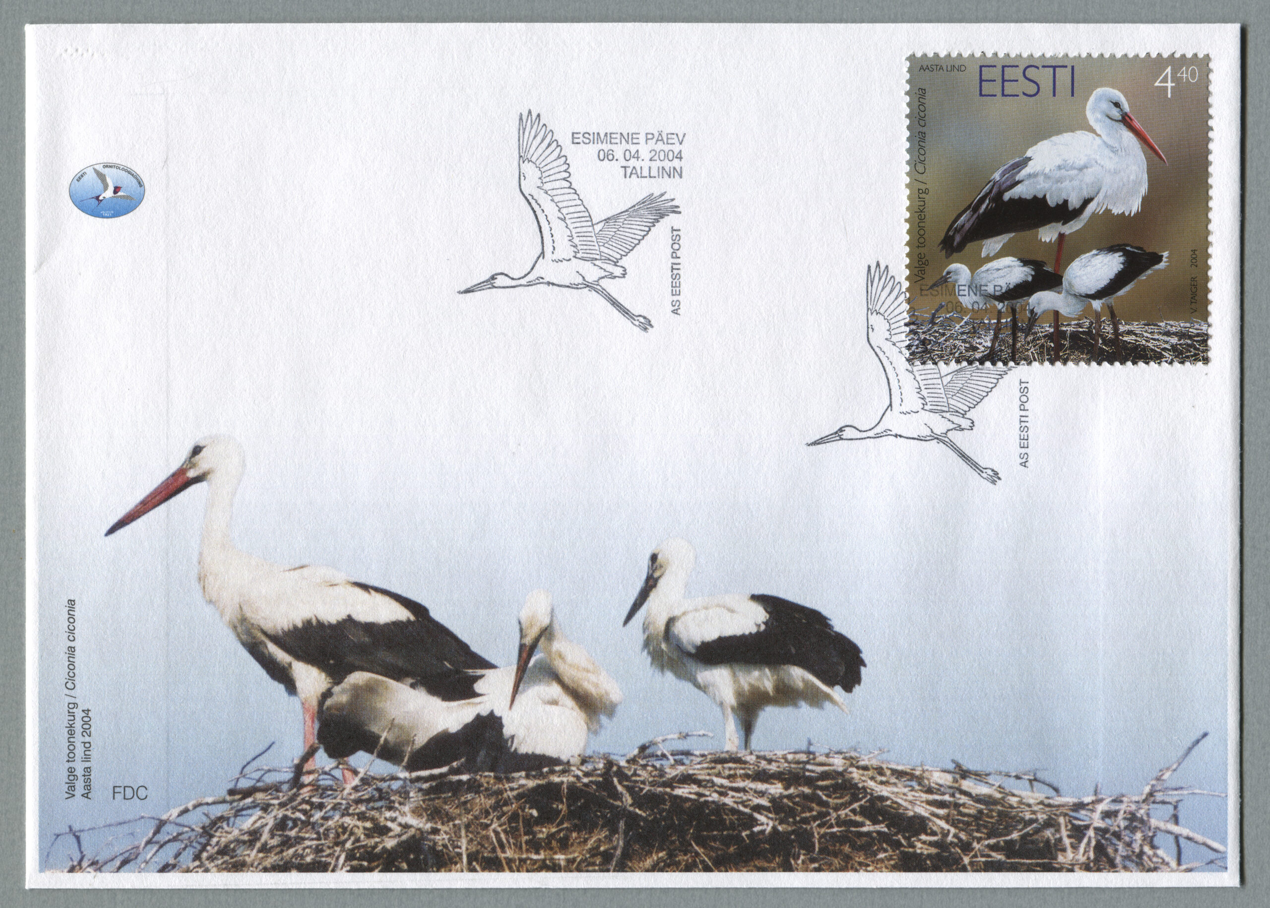ERMi koguValge-toonekurg. Värvipliiatsi joonistus. Vladimir Taigeri erakoguEsimese päeva ümbrik (FDC). Aasta lind – valge-toonekurg, 6.04.2004