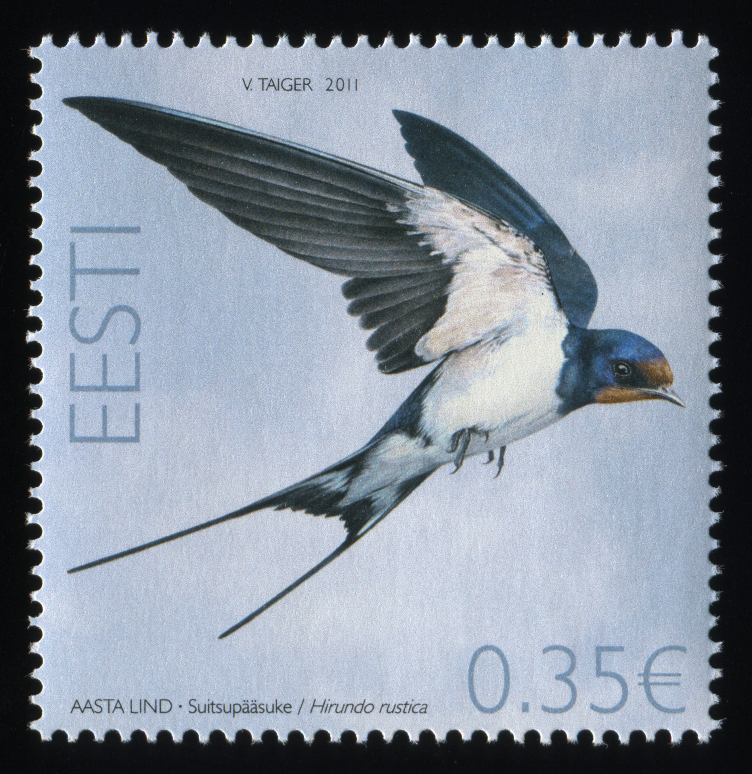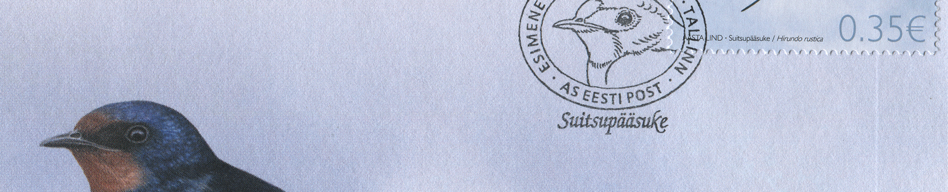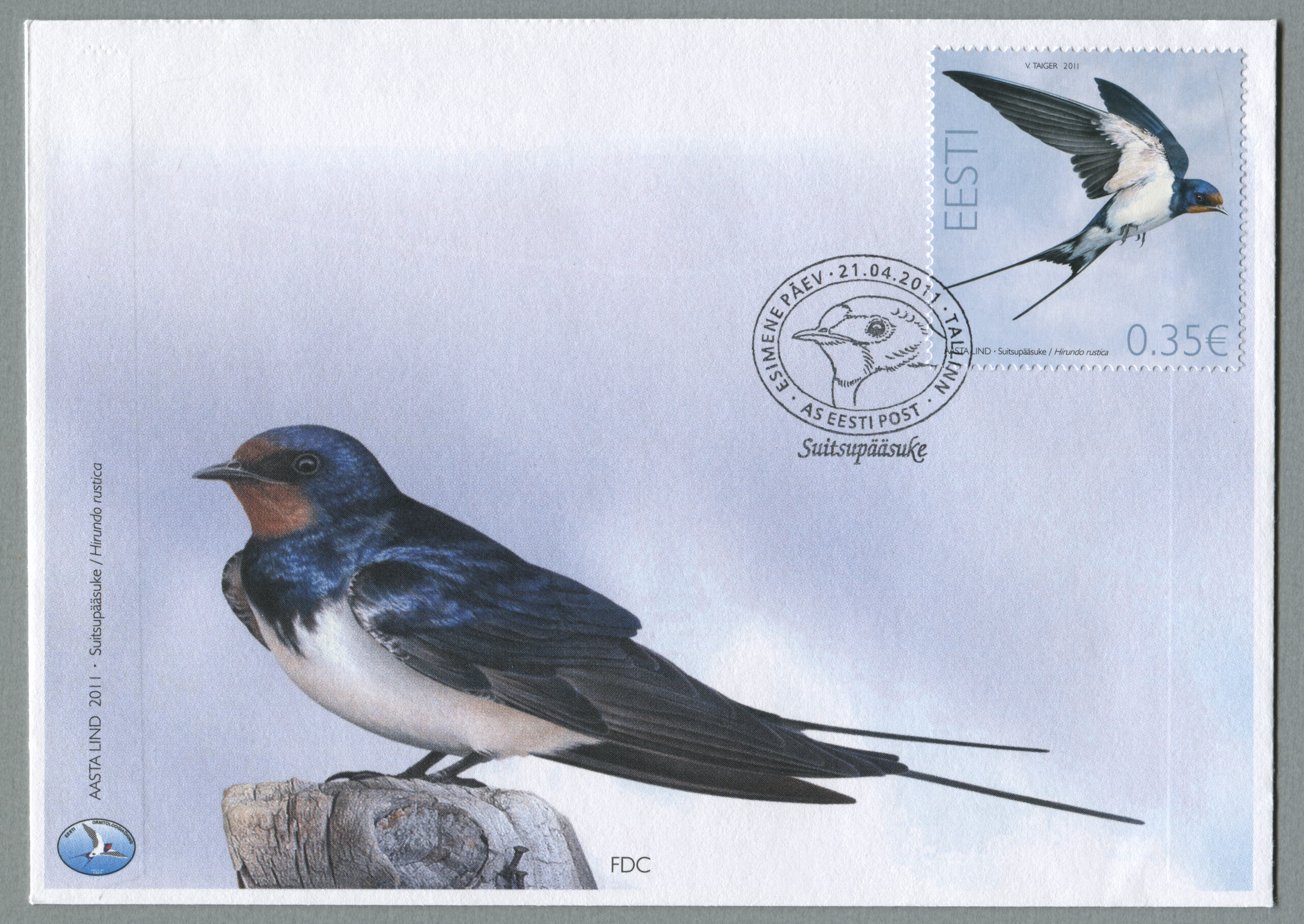 ERMi koguSuitsupääsuke. Värvipliiatsi joonistus. Vladimir Taigeri erakoguSuitsupääsuke. Värvipliiatsi joonistus. Vladimir Taigeri erakoguEsimese päeva ümbrik (FDC). Aasta lind – suitsupääsuke, 21.04.2011