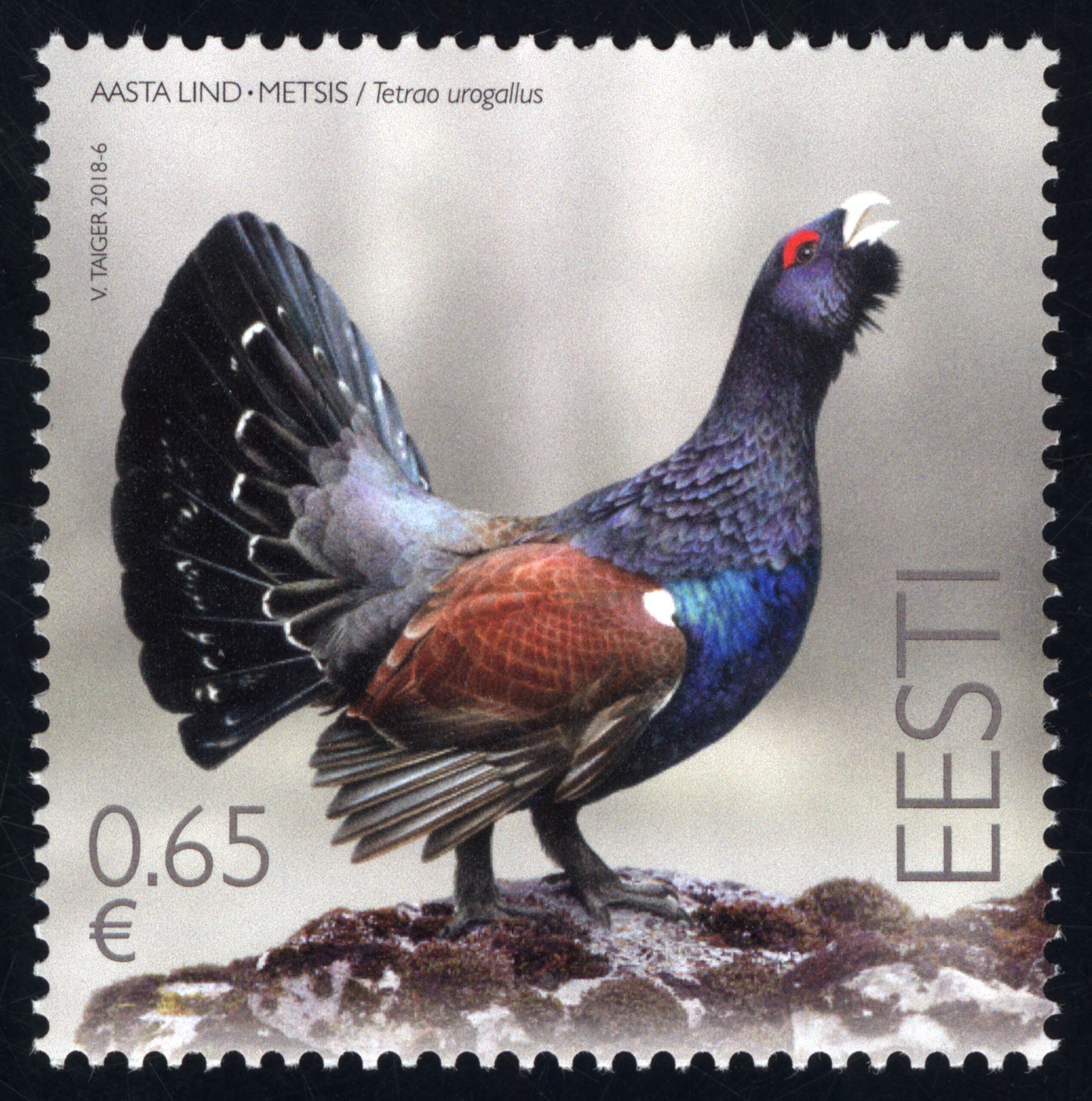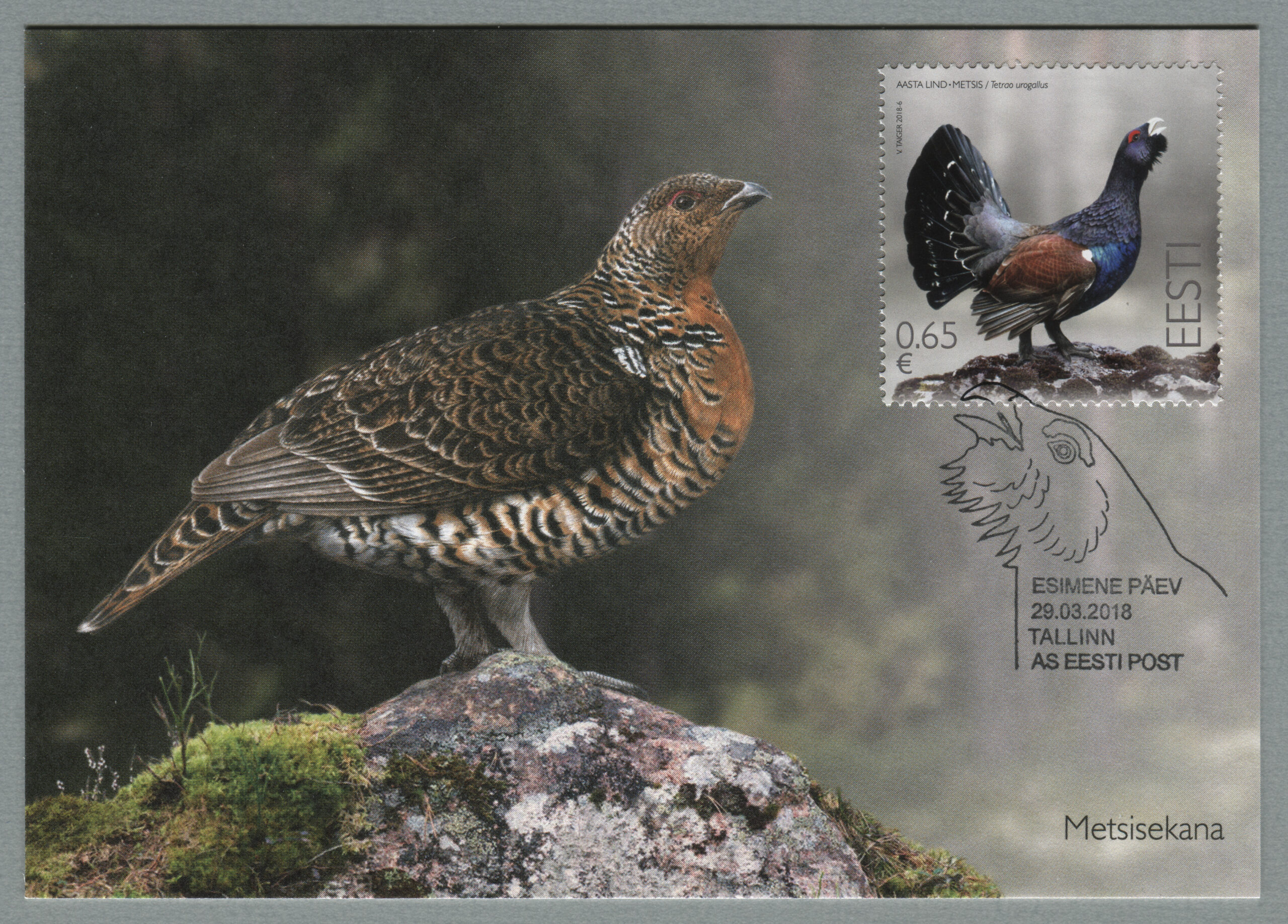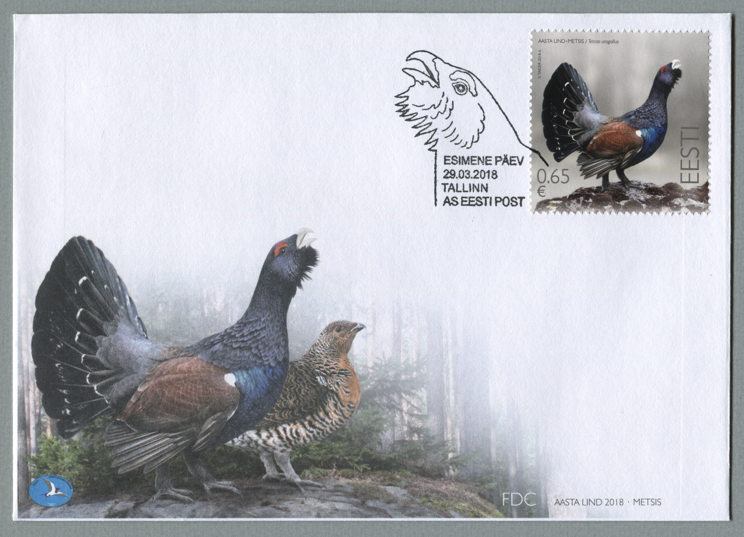ERMi koguMetsis. Värvipliiatsi joonistus. Vladimir Taigeri erakoguEsimese päeva ümbrik (FDC). Aasta lind – metsis, 29.03.2018