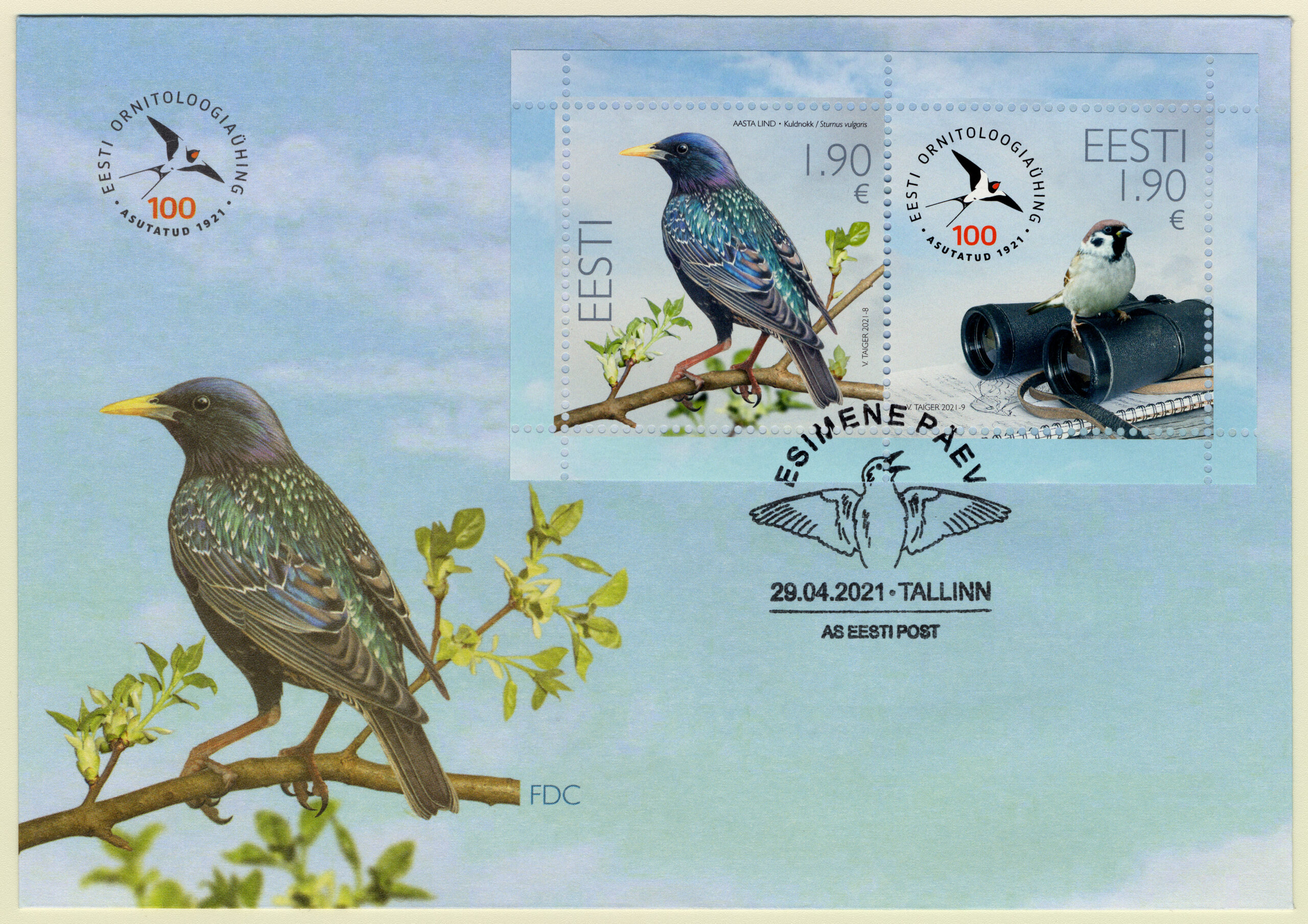 ERMi koguEsimese päeva ümbrik (FDC). Eesti Ornitoloogiaühing 100, 29.04.2021