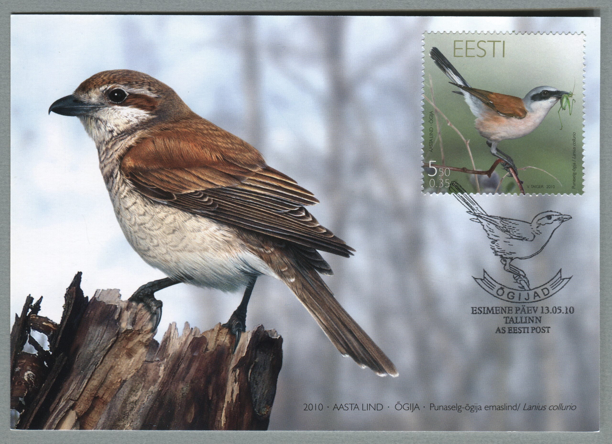 ERMi koguPunaselg-õgija. Värvipliiatsi joonistus. Vladimir Taigeri erakoguHallõgija. Värvipliiatsi joonistus. Vladimir Taigeri erakoguEsimese päeva ümbrik (FDC). Aasta lind – õgija, 13.05.2010