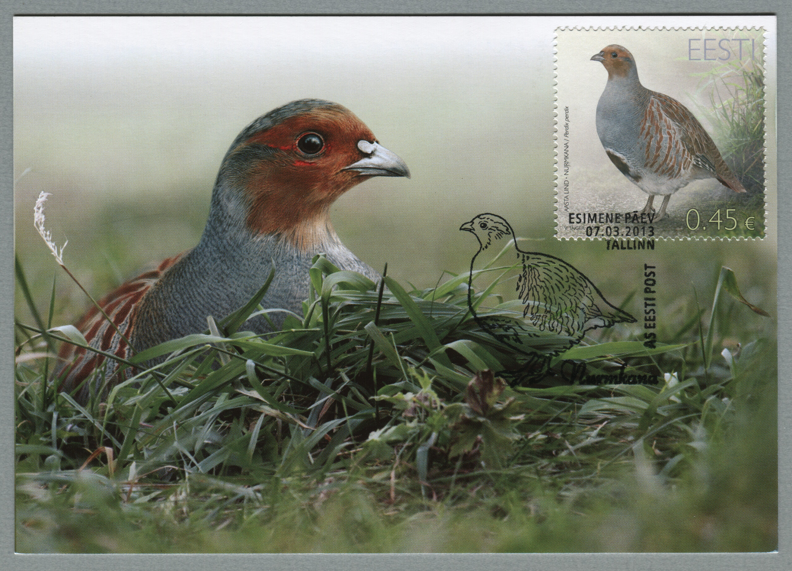 ERMi koguNurmkana. Värvipliiatsi joonistus. Vladimir Taigeri erakoguEsimese päeva ümbrik (FDC). Aasta lind – nurmkana, 7.03.2013