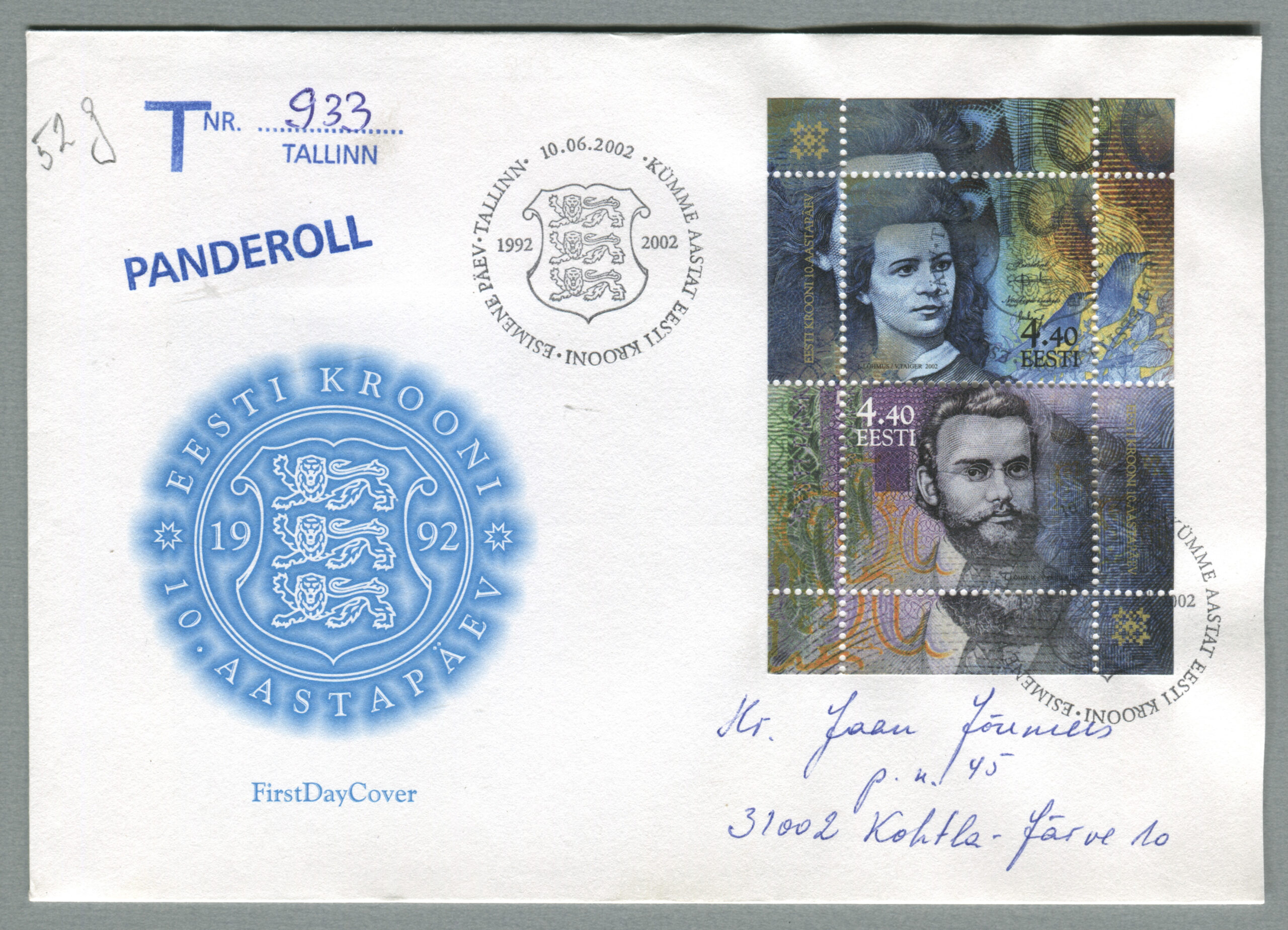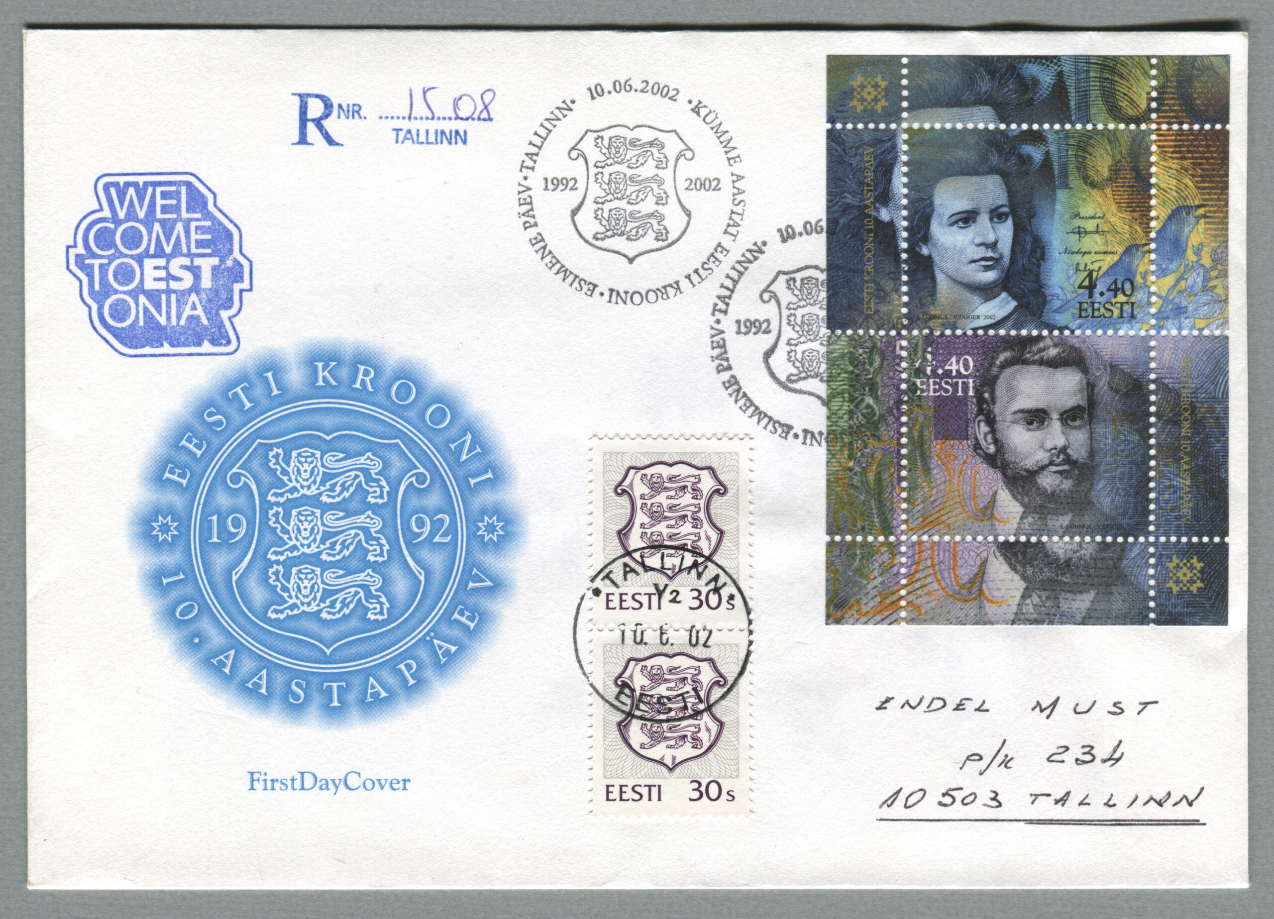 ErakoguTähitud kiri, mis on saadetud Tallinnast 10.06.2002 Kohtla-Järvele 11.06.2002.