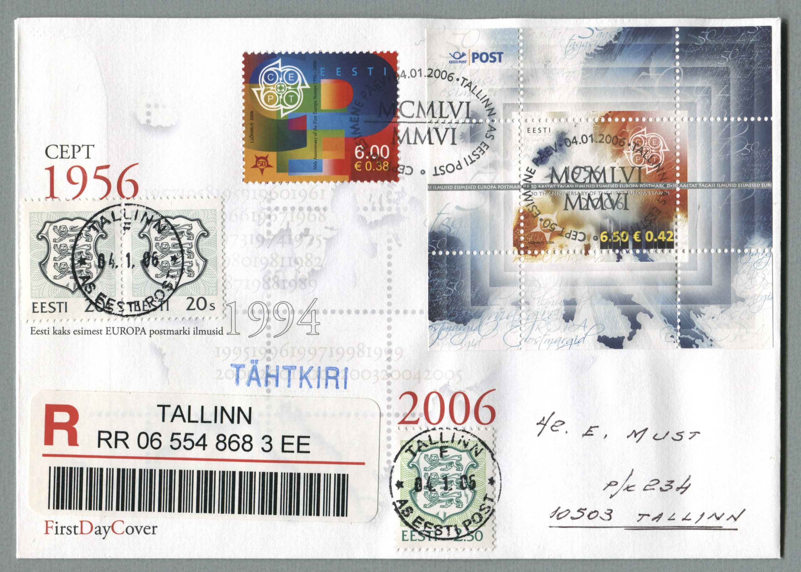 Esimene kohustuslikult kahe nominaaliga mark, „EUROPA postmark 50“, ilmus 4.01.2006, kunstnik oli Lembit Lõhmus.
