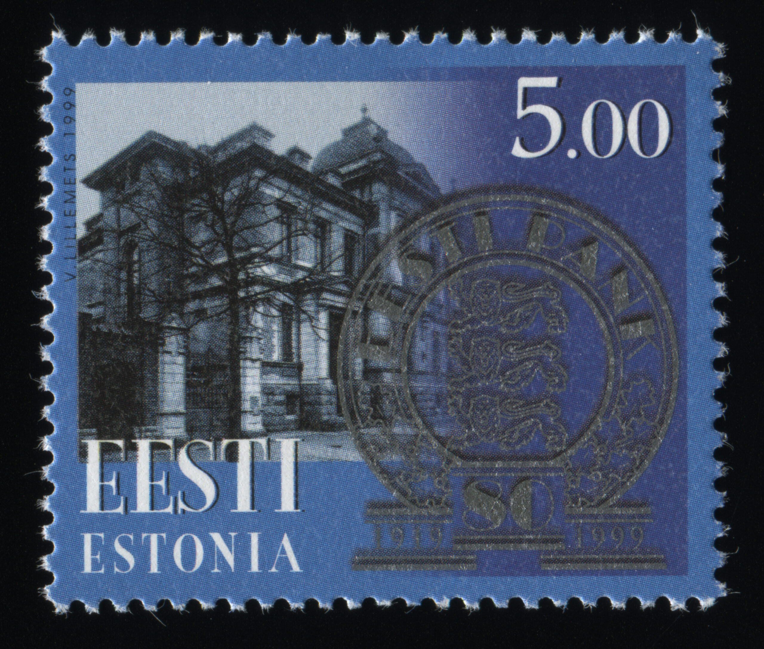 ERMi kogu100-kroonine mark, 18.06.1999. Kunstnik Jaan Saar. Eesti Post kinkis Eesti Filatelistide Liidule 2000 tembeldatud 100-kroonist marki, liikmed said neid osta hinnaga 25 krooni mark.