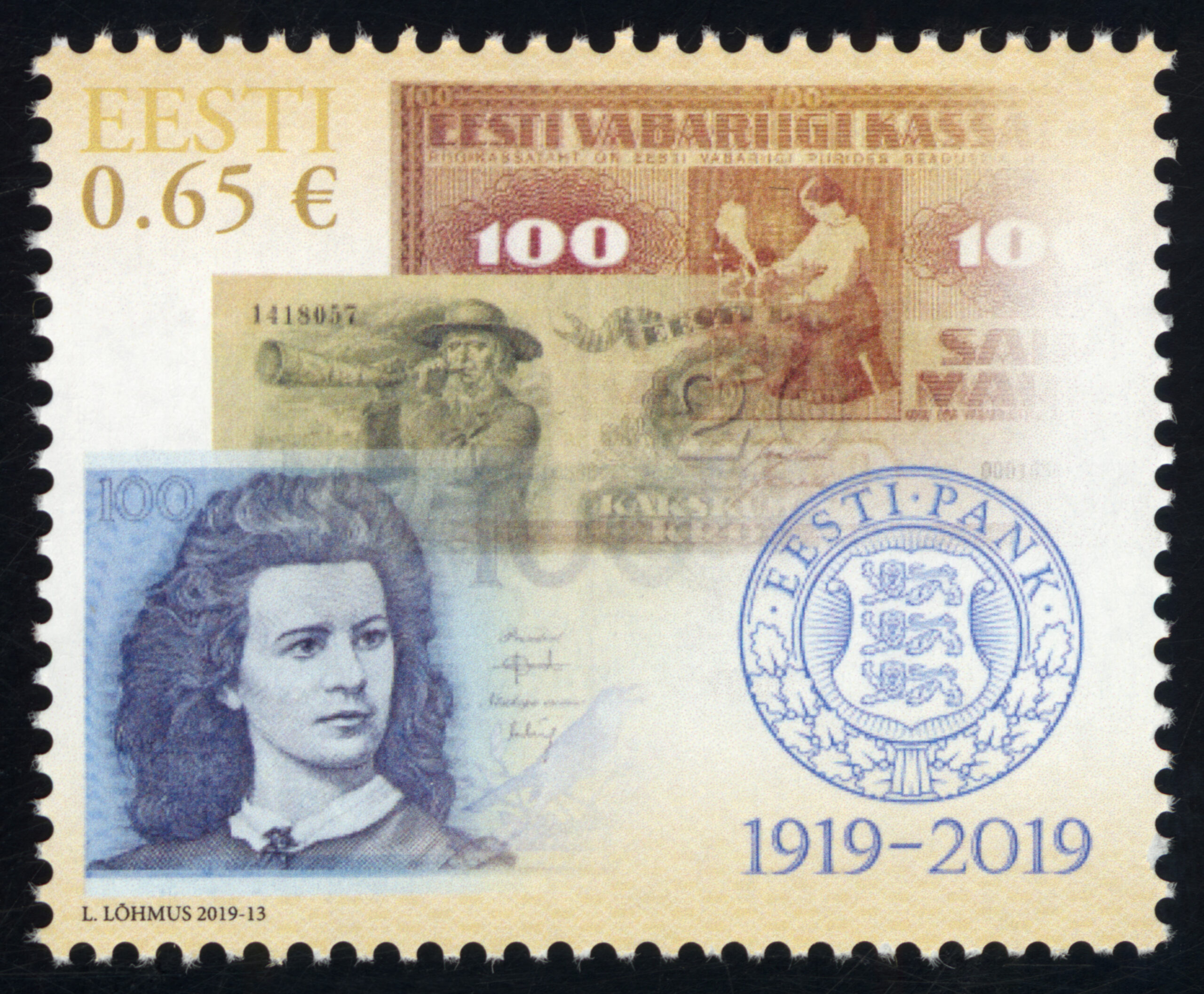 ERMi koguEsimese päeva ümbrik (FDC), „Eesti Pank 100“, 3.05.2019. Kunstnik Lembit Lõhmus.