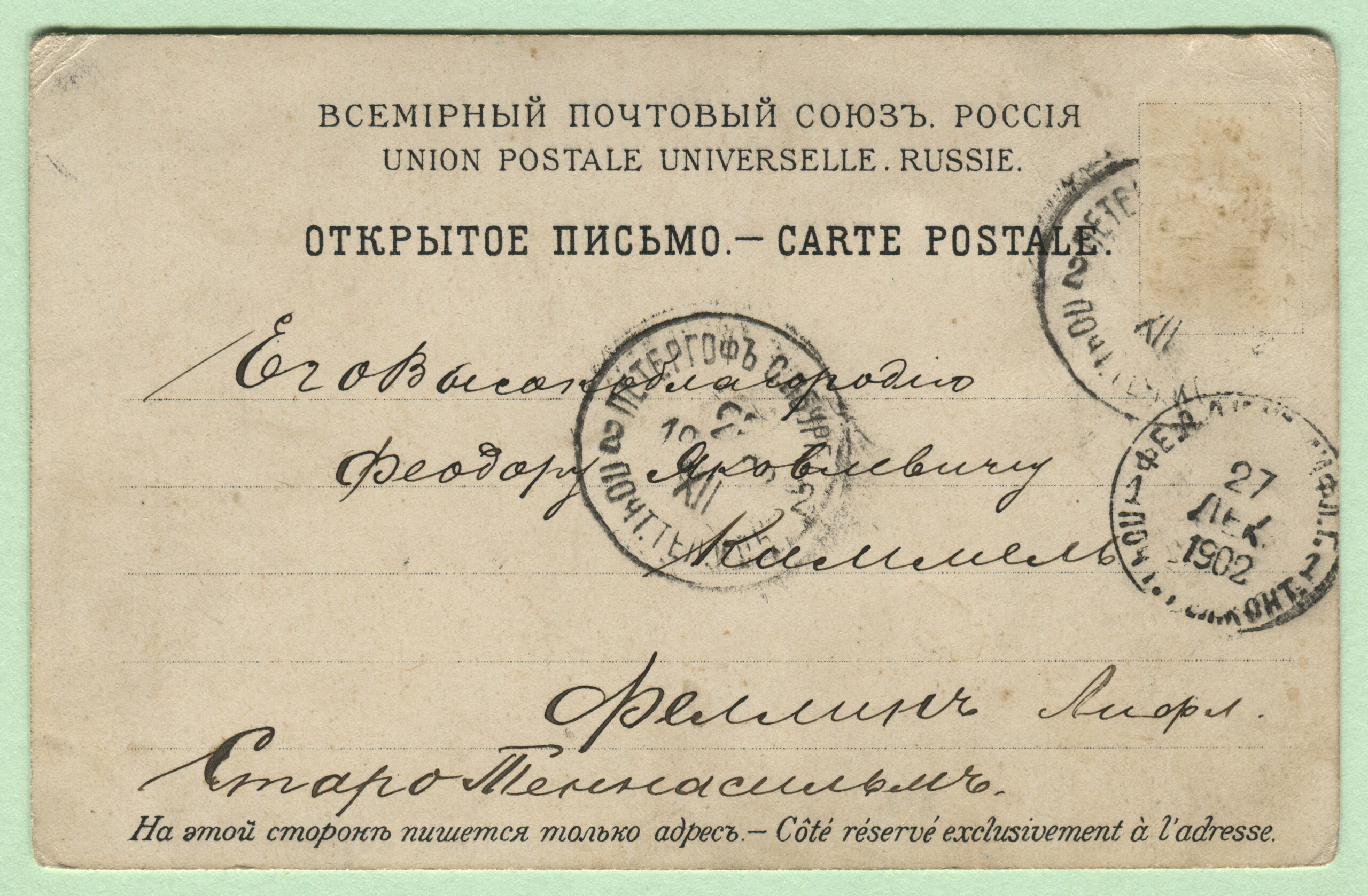 Postkaart saadetud 27.12.1902