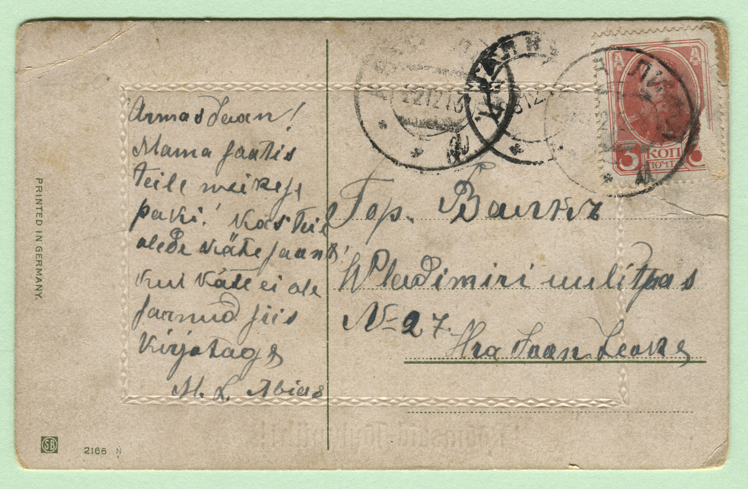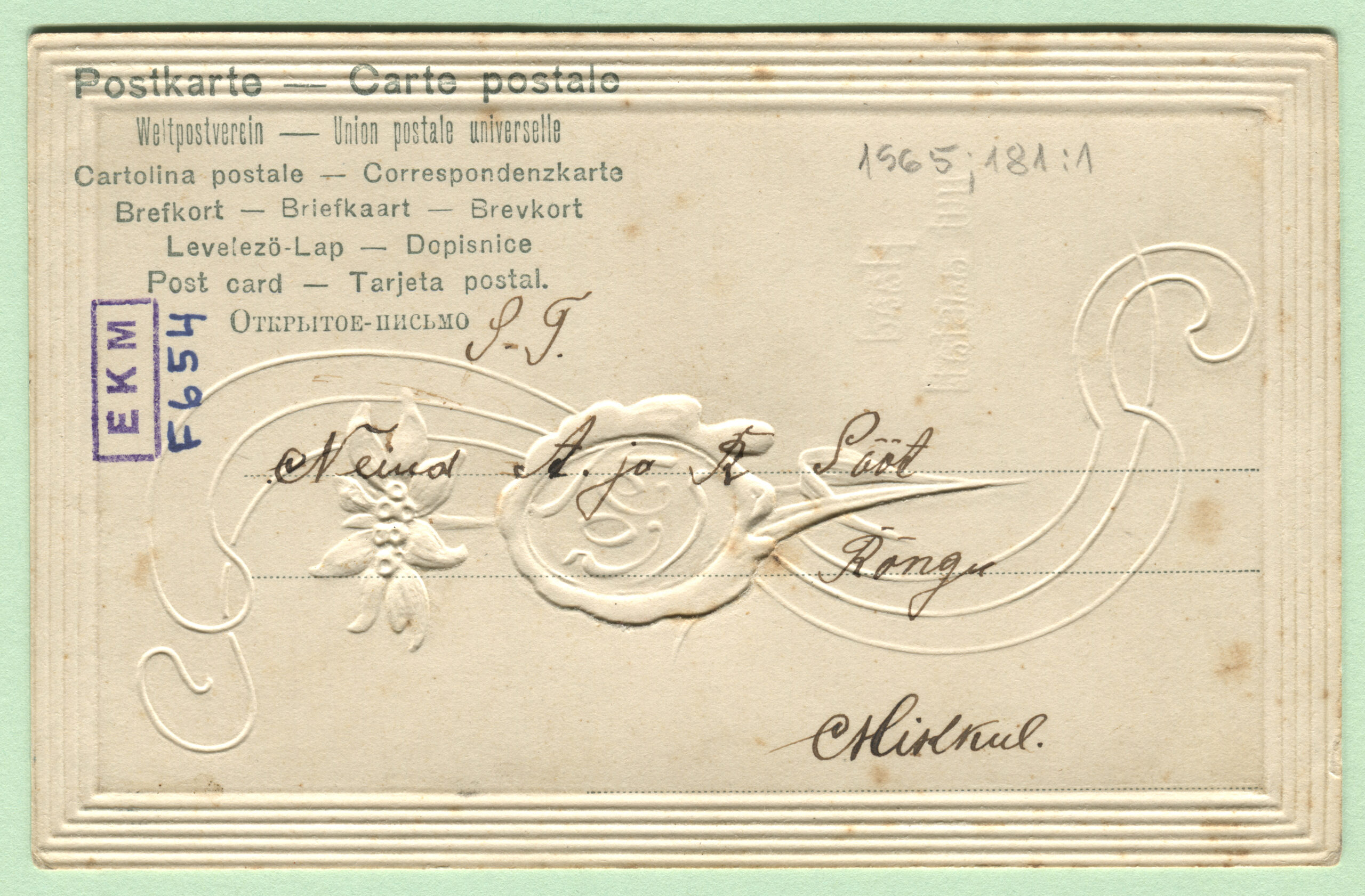 ERMi koguPostkaart saadetud 1909. aastal. Kirjastaja Martin Schlesinger, Berlin