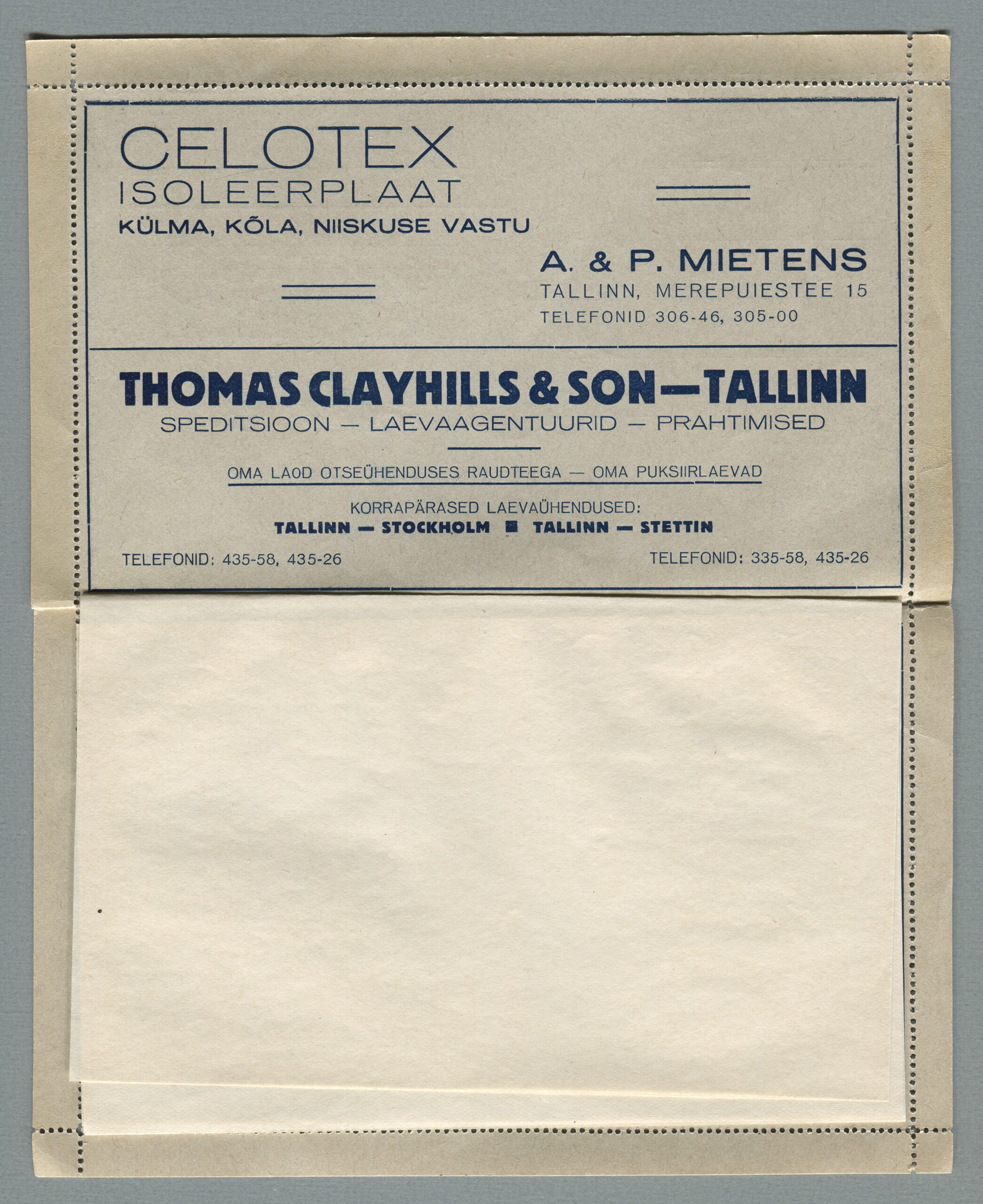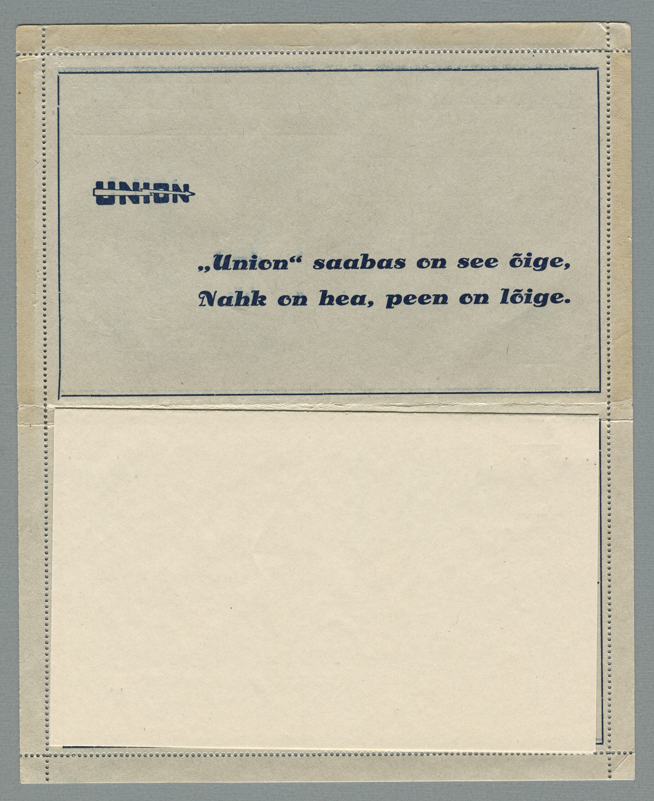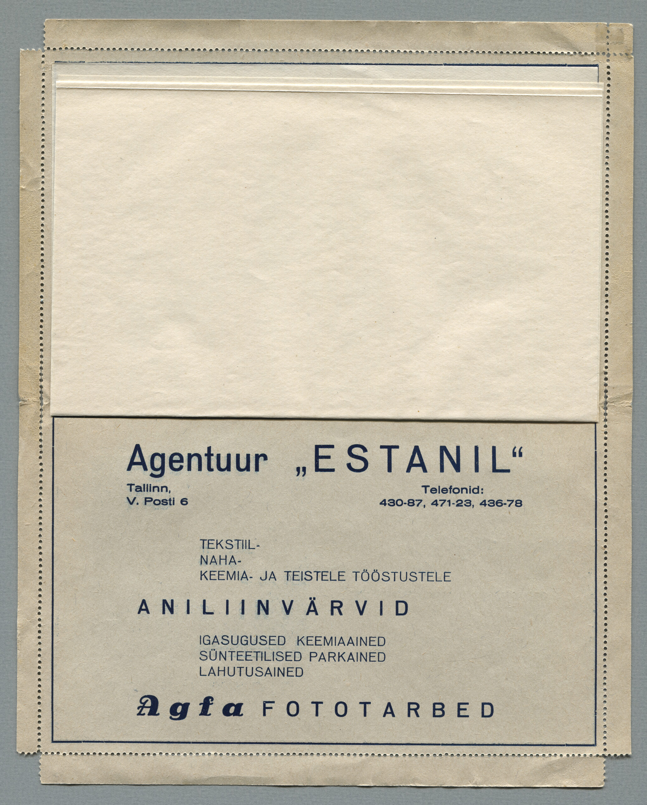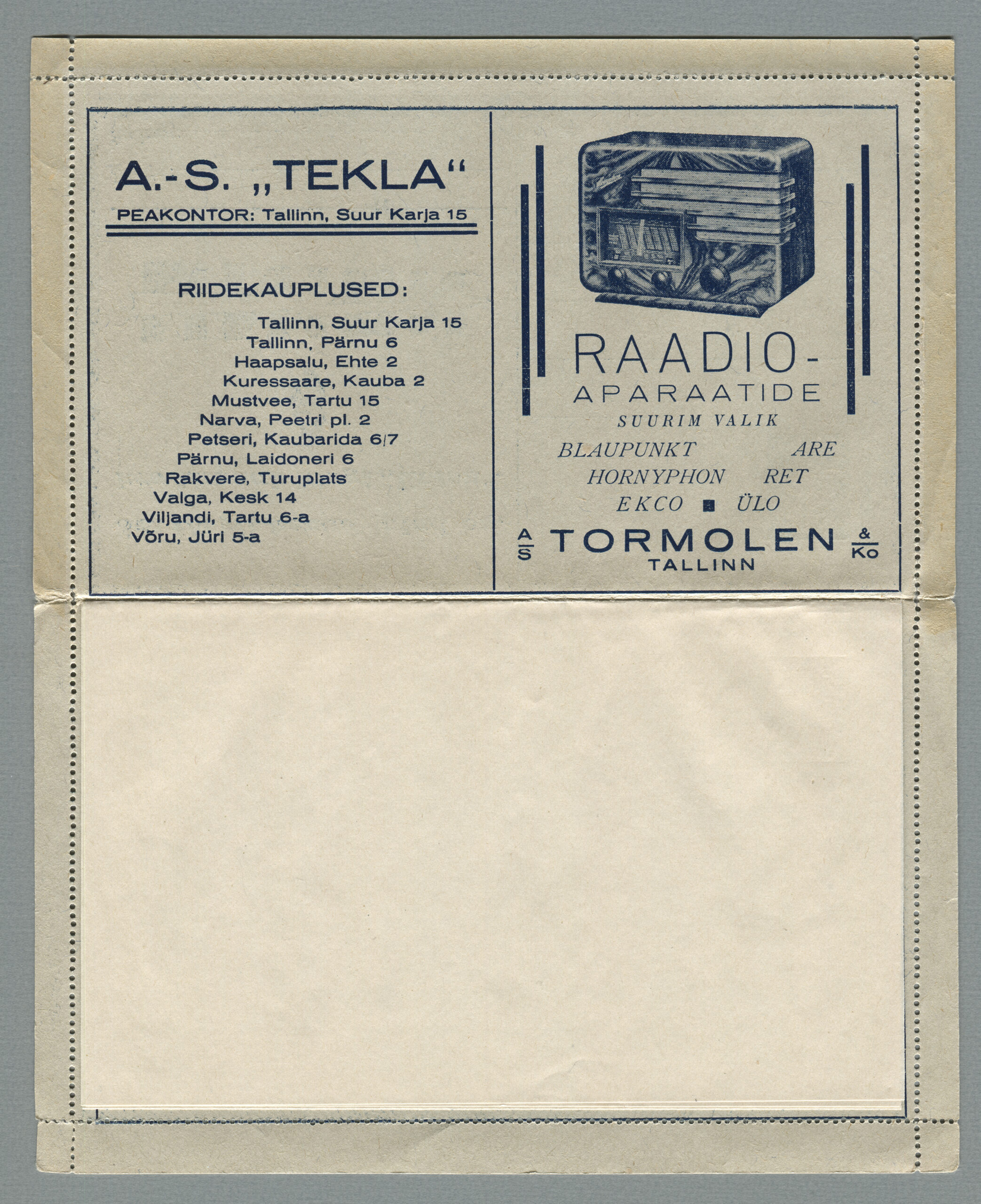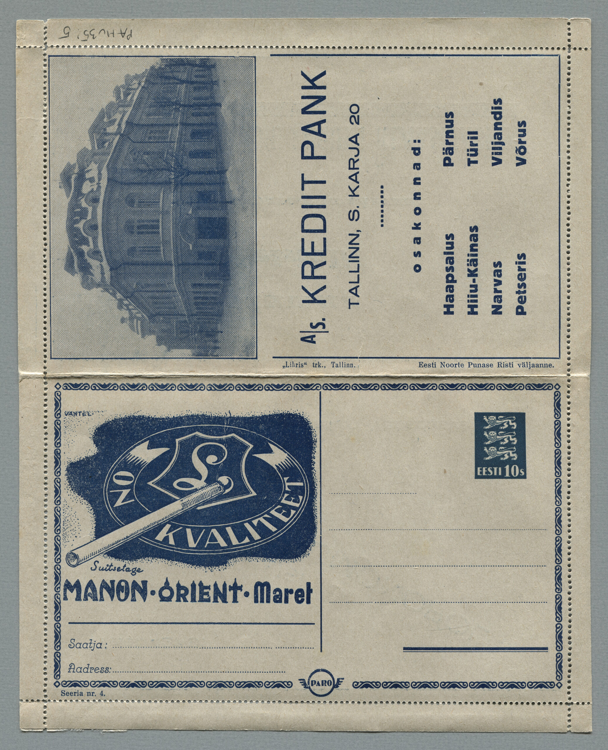 Ideena polnud reklaamiga varustatud tervikasjad tegelikult midagi uut. On teada, et neid esines Tsaari-Venemaal, ka mujal. Mõnel kaartkirja seerial (nr 2, 5, 6, 18) on märgitud Pat. Berne 6538/37, millest võib järeldada, et idee oli patenteeritud.