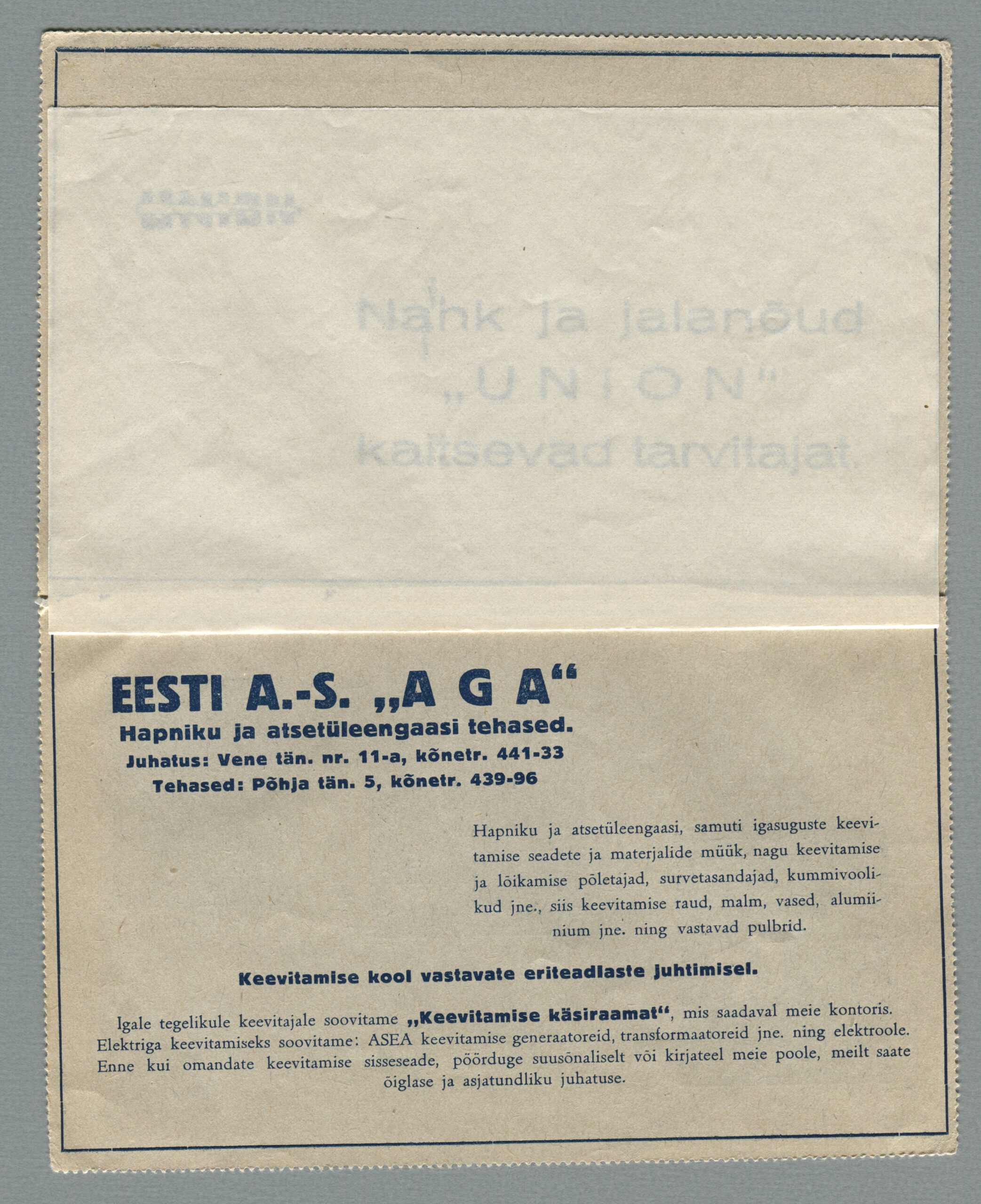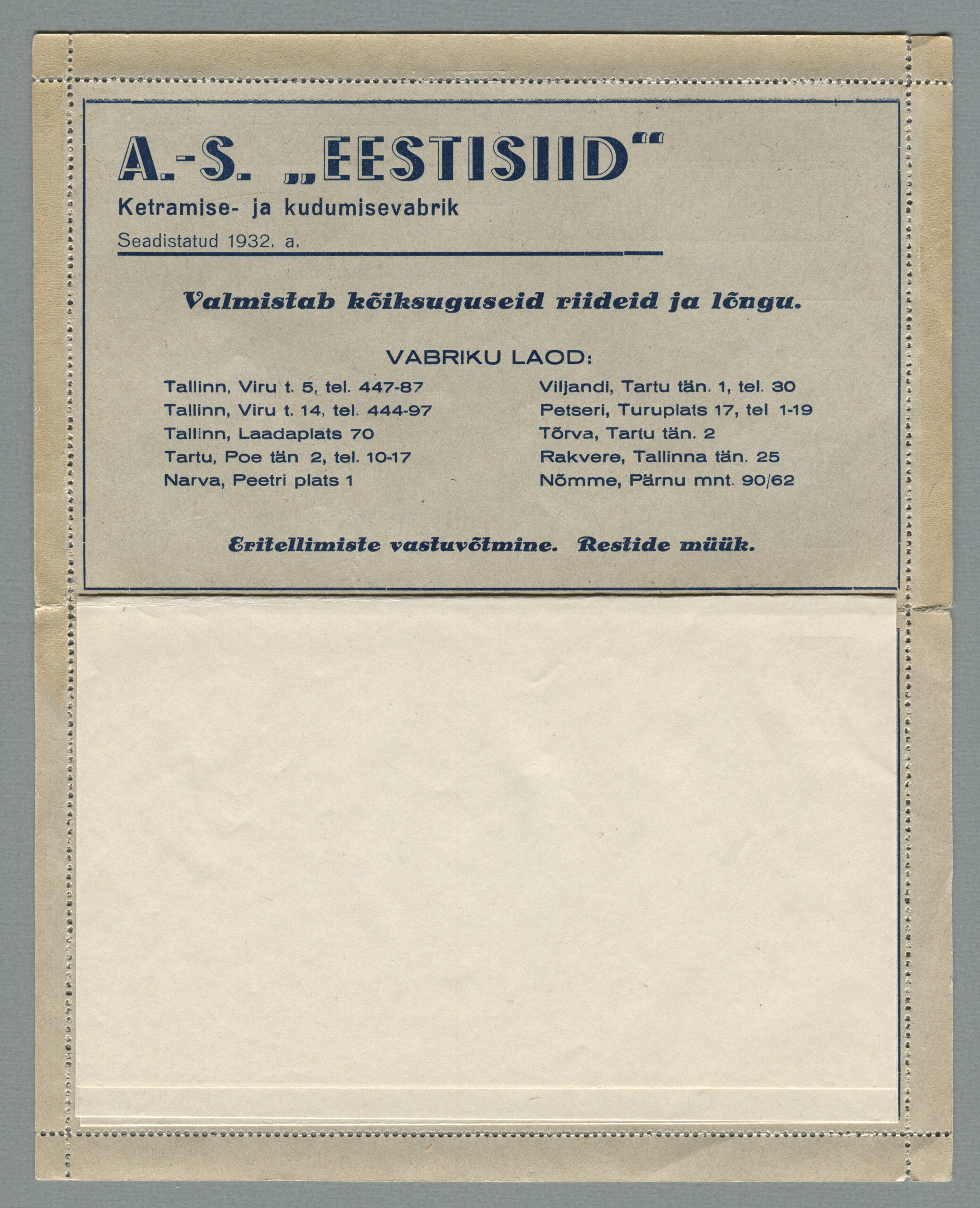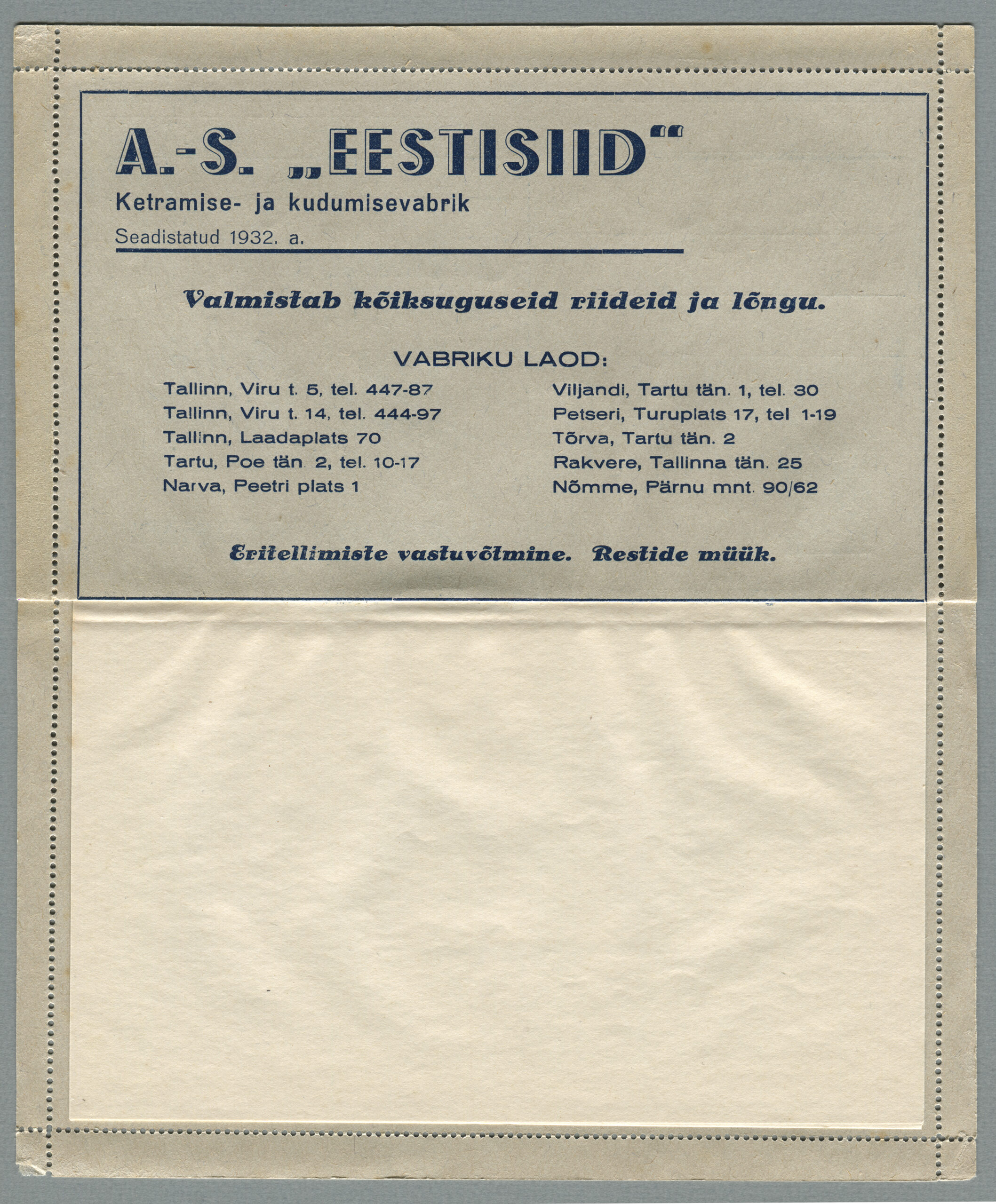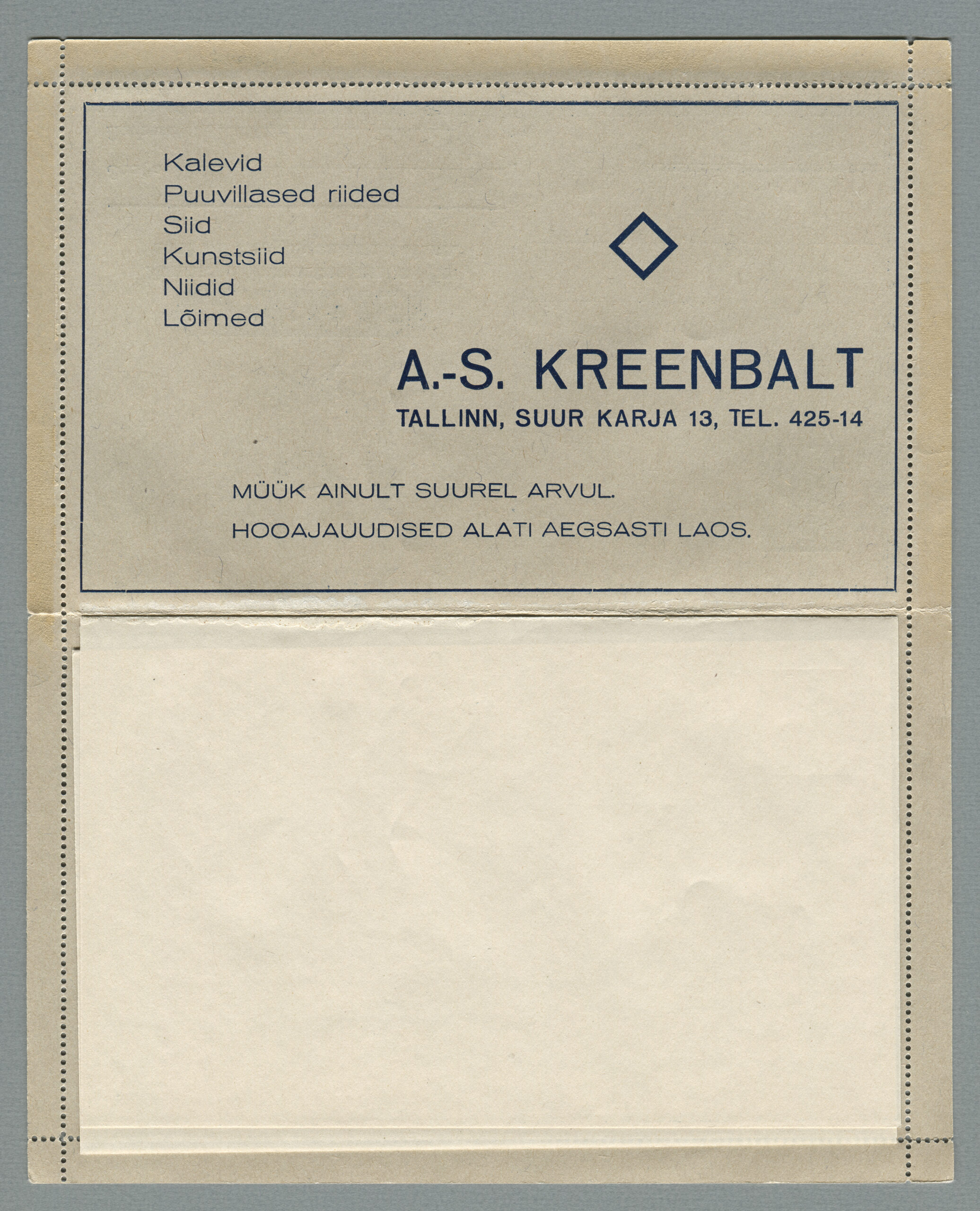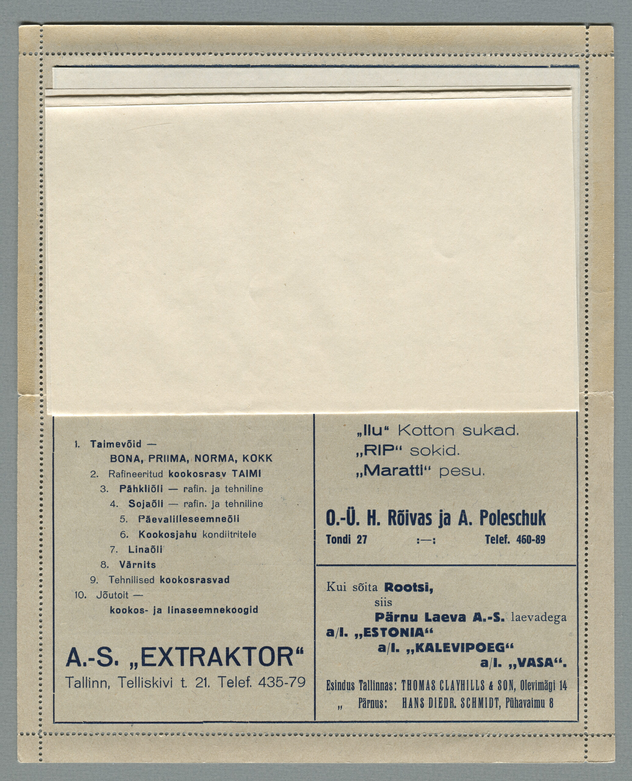 Ideena polnud reklaamiga varustatud tervikasjad tegelikult midagi uut. On teada, et neid esines Tsaari-Venemaal, ka mujal. Mõnel kaartkirja seerial (nr 2, 5, 6, 18) on märgitud Pat. Berne 6538/37, millest võib järeldada, et idee oli patenteeritud.