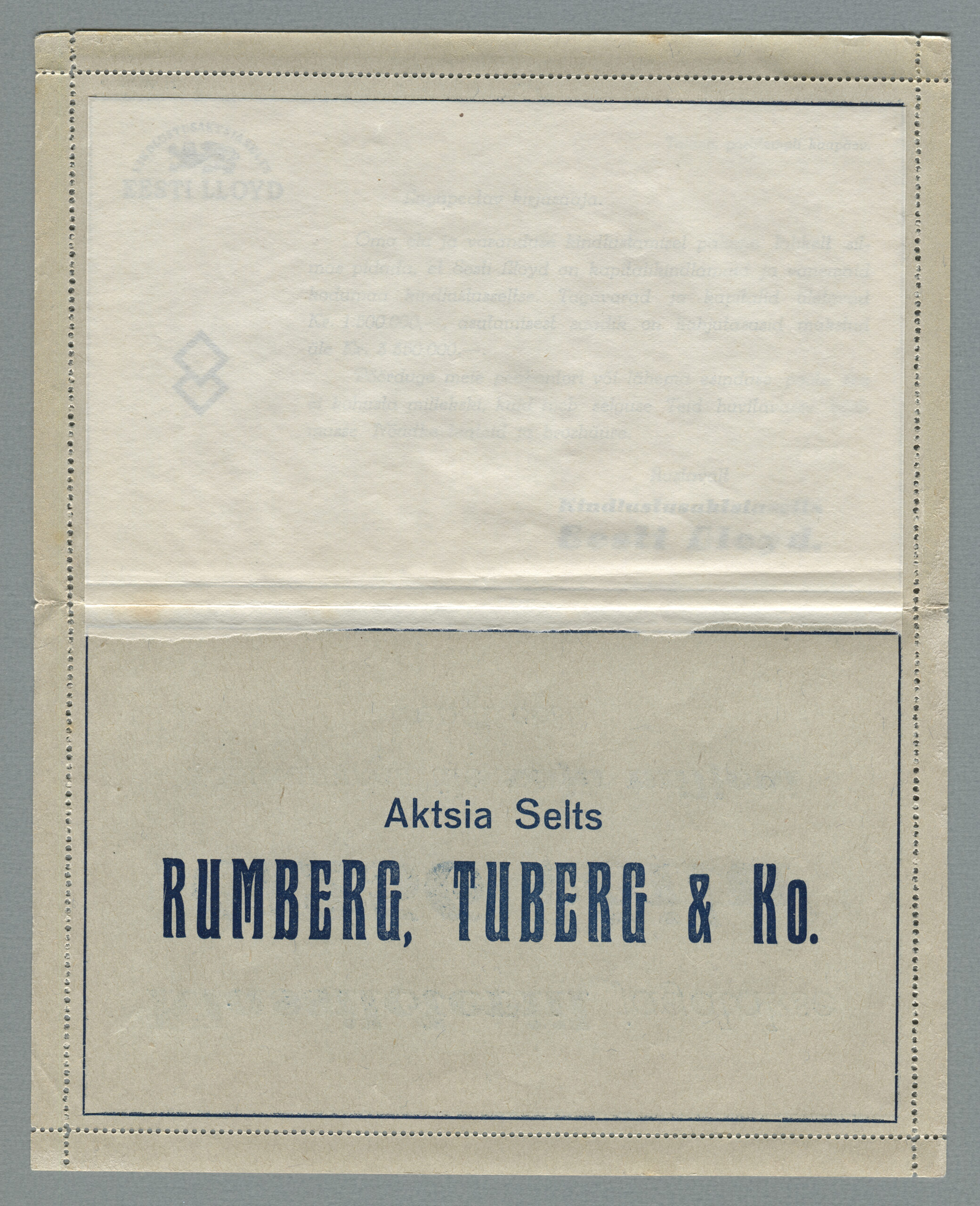 ERMi koguKaartkiri (seeria nr 2), mis on saadetud 11.10.1938 Tallinnast Helsingisse