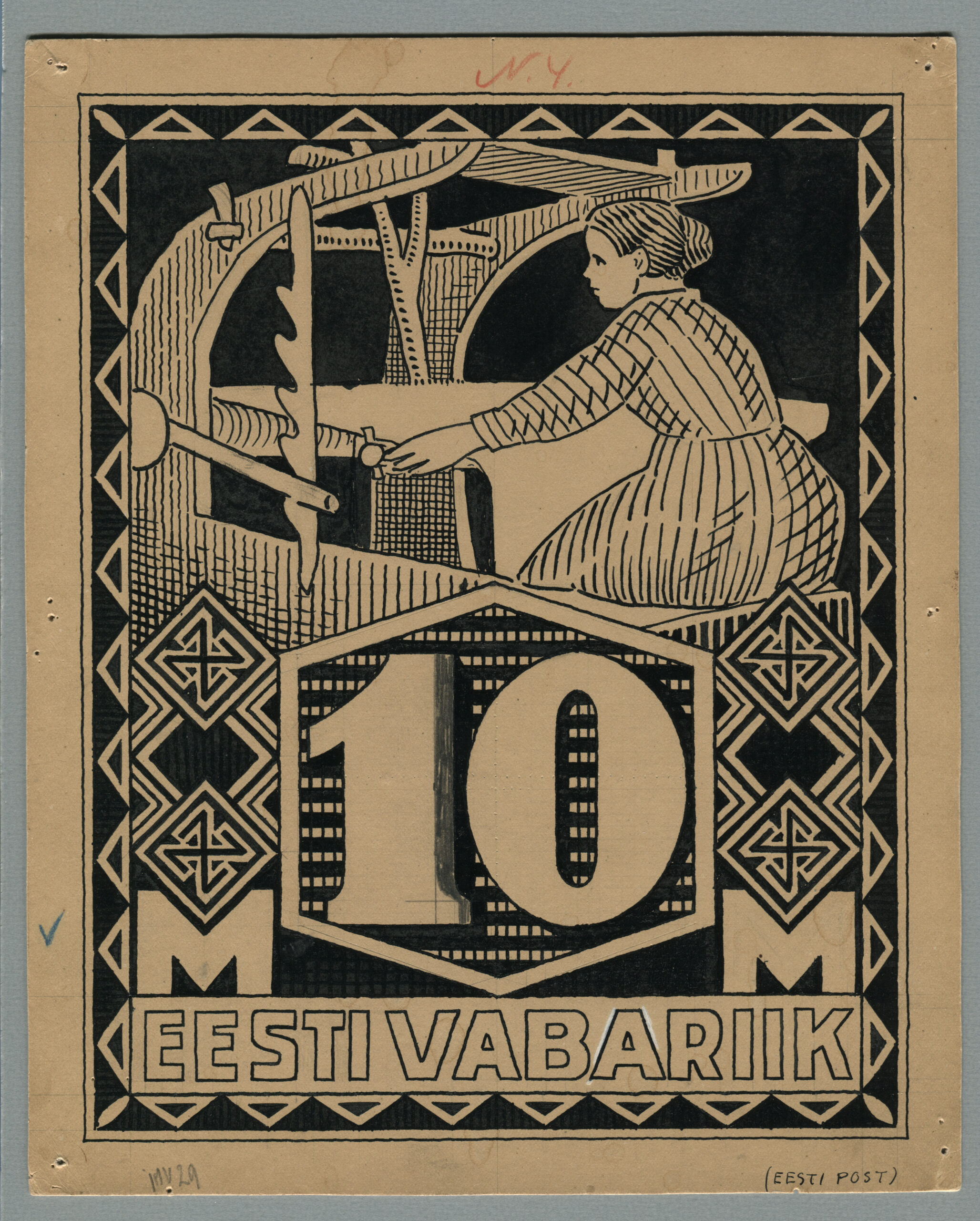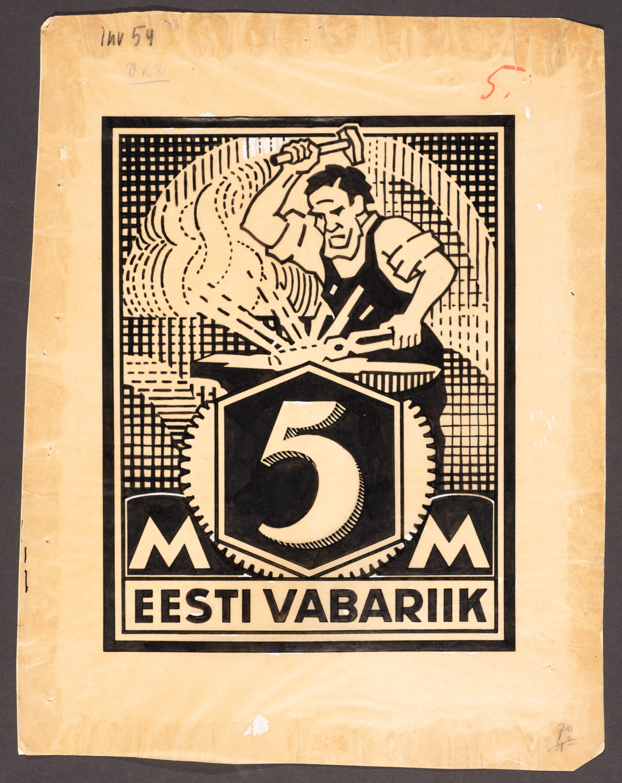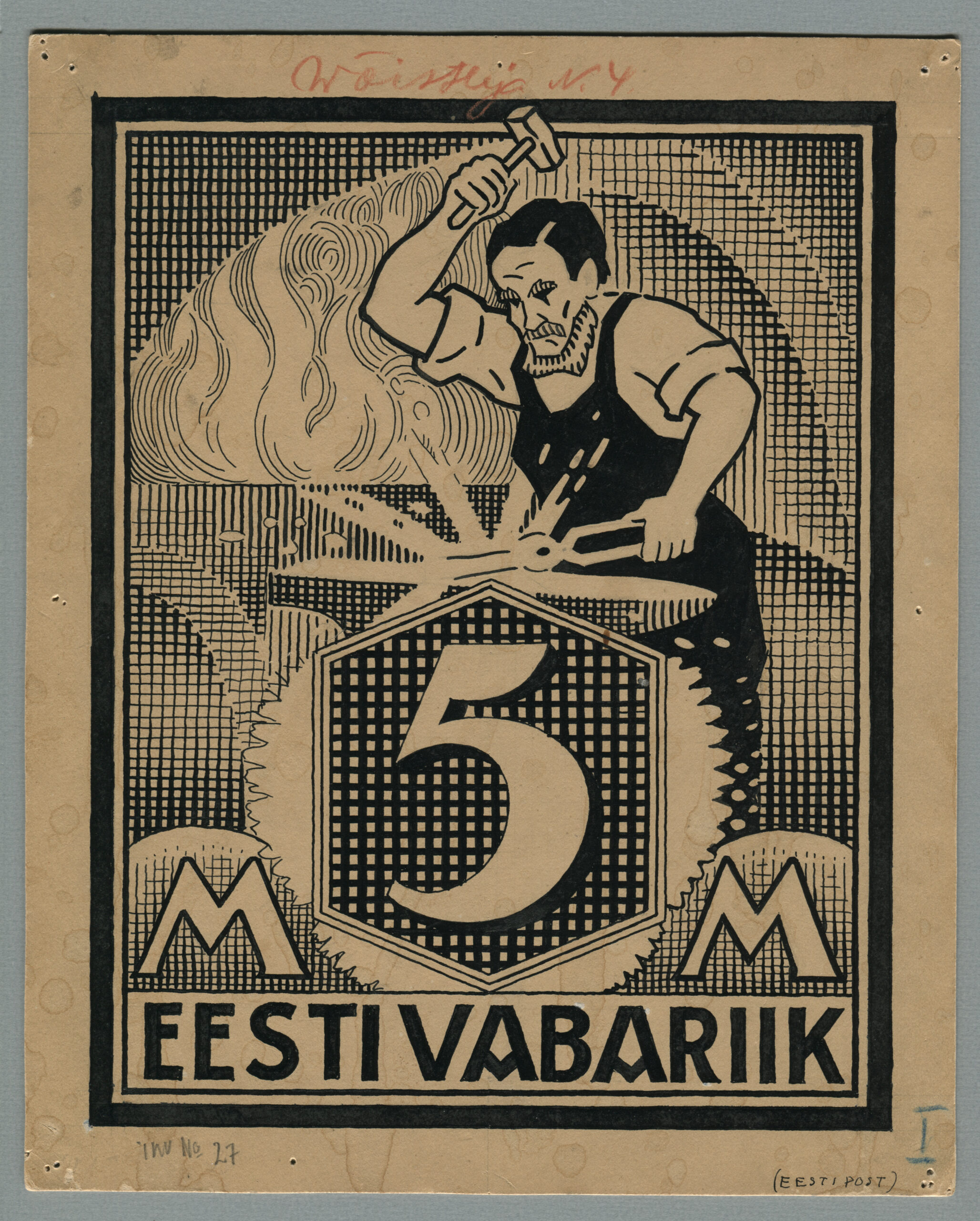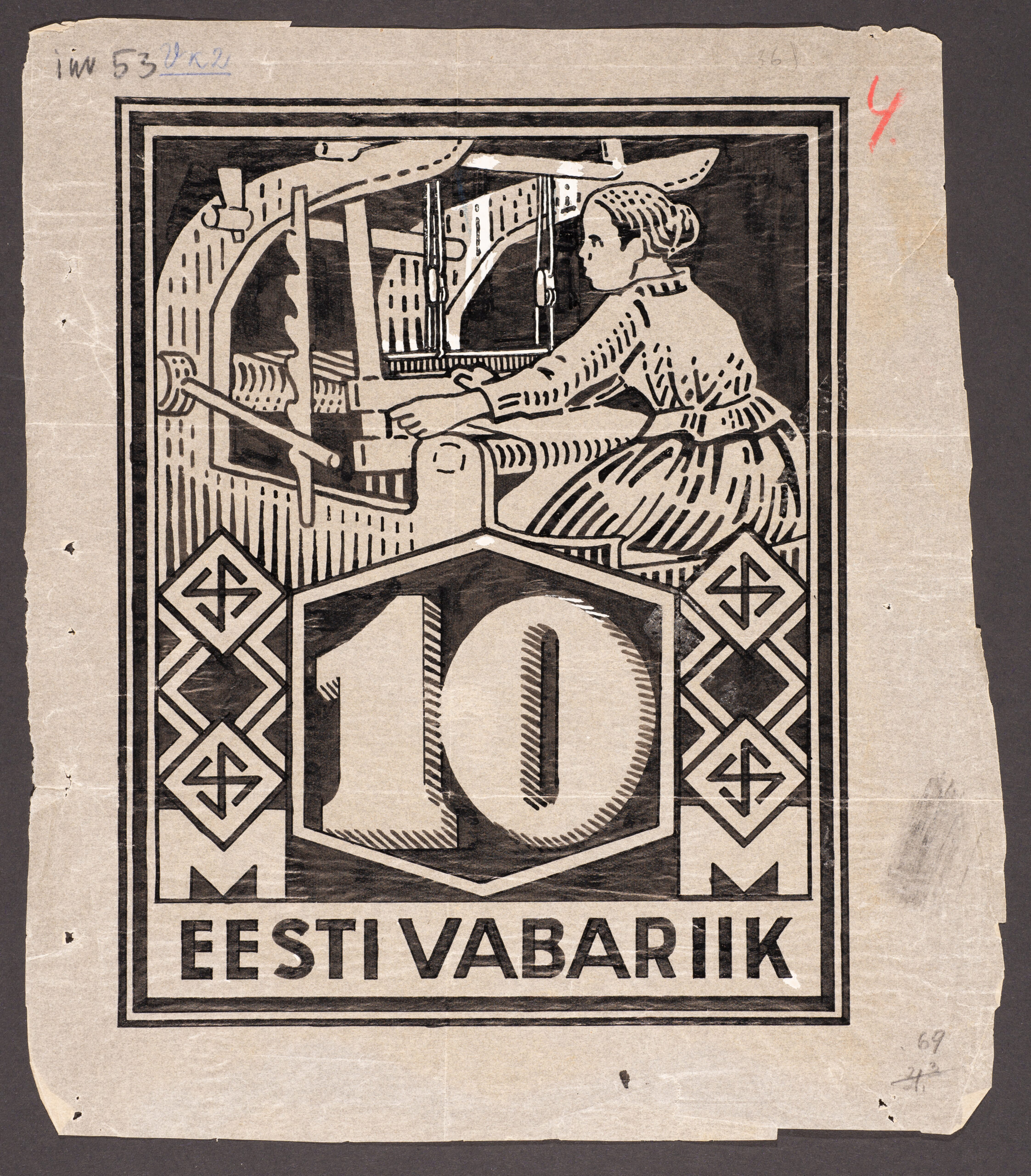 ERMi koguWaba Maa nr 41, 18. veebruar 1922, lk 5Sepp, 18. veebruar 1922, 10 marka, lõigatud. Vahe on värvis ja paberis. Kujundanud Johan Theodor Björnström