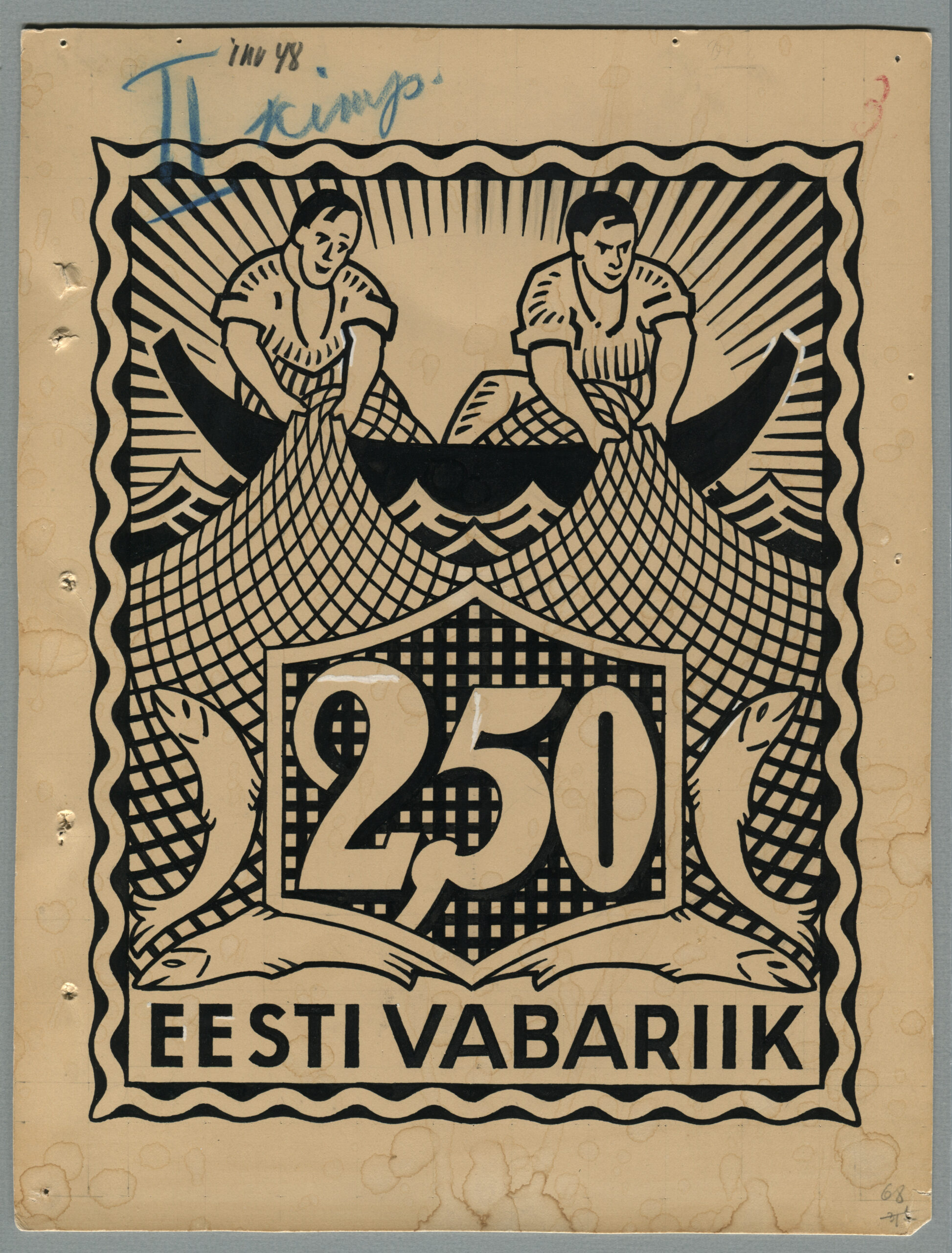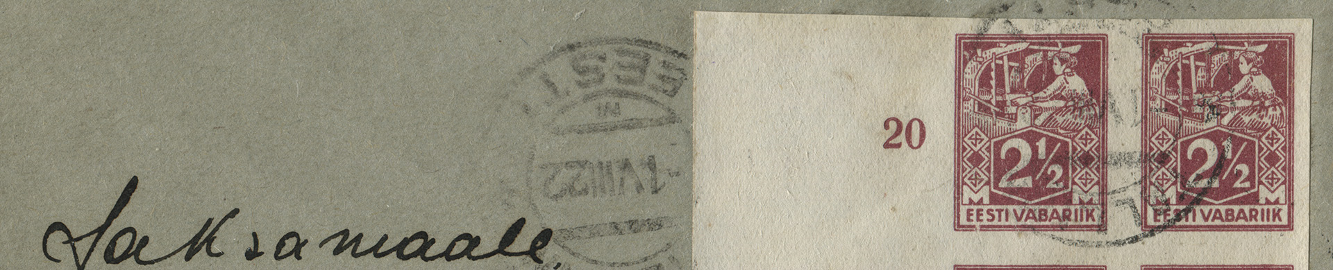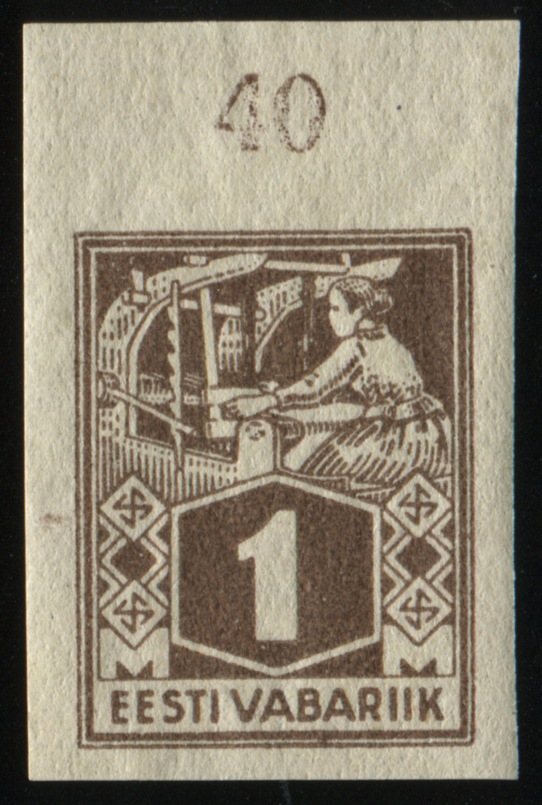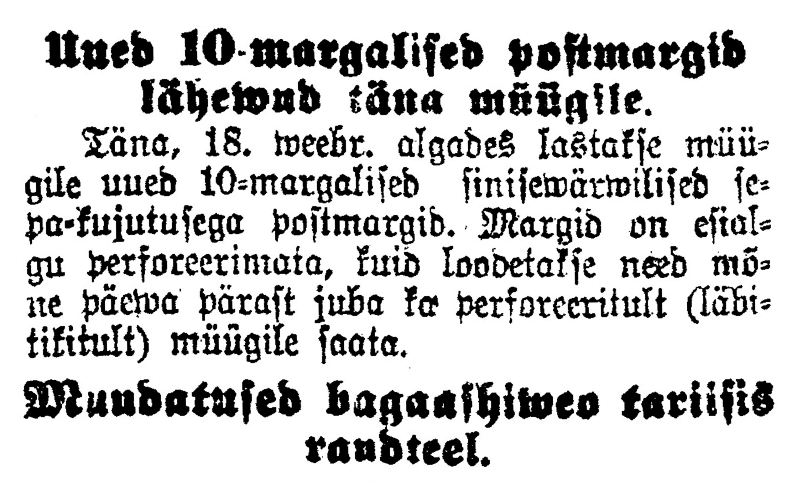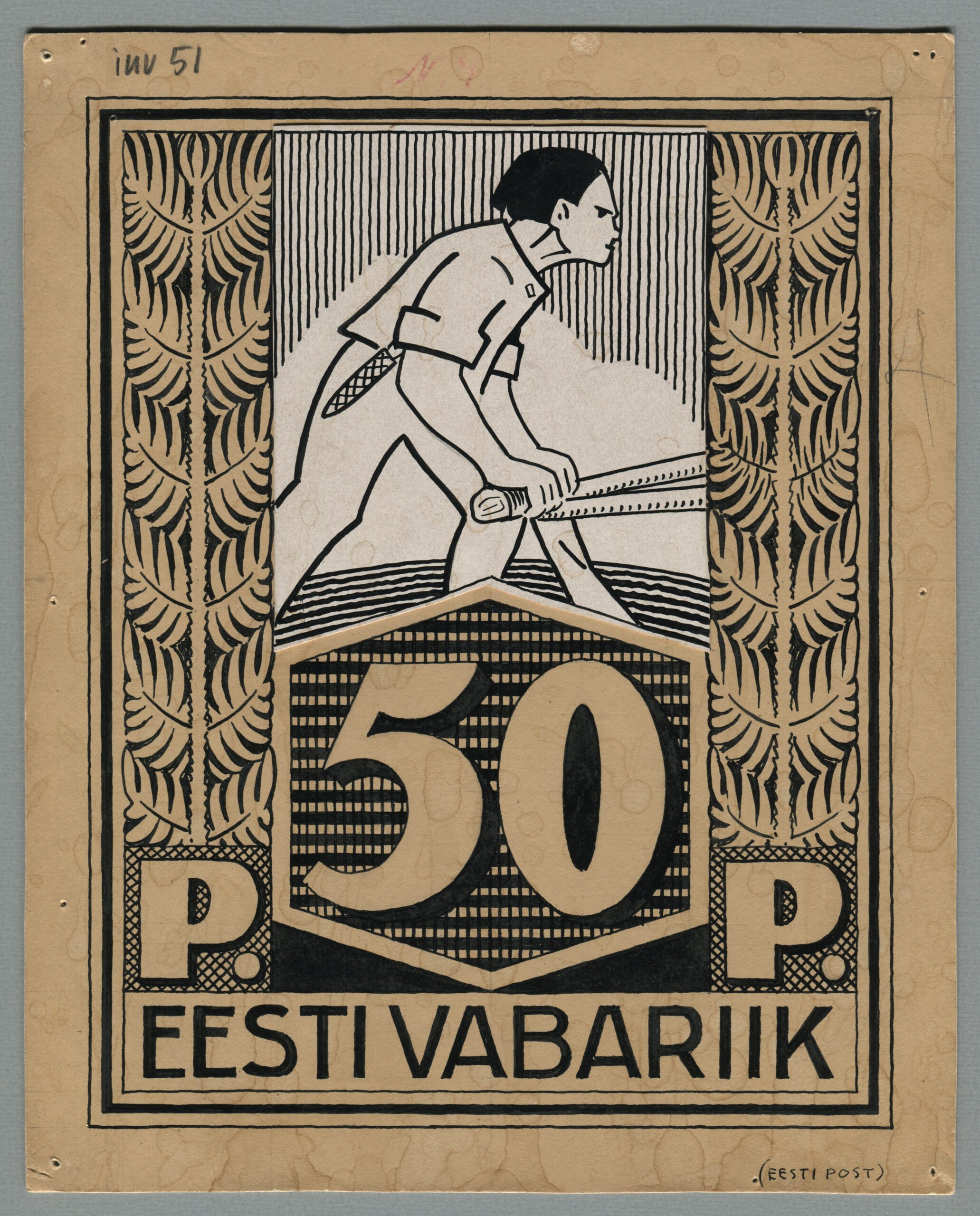 ERMi koguWaba Maa nr 41, 18. veebruar 1922, lk 5Sepp, 18. veebruar 1922, 10 marka, lõigatud. Vahe on värvis ja paberis. Kujundanud Johan Theodor Björnström