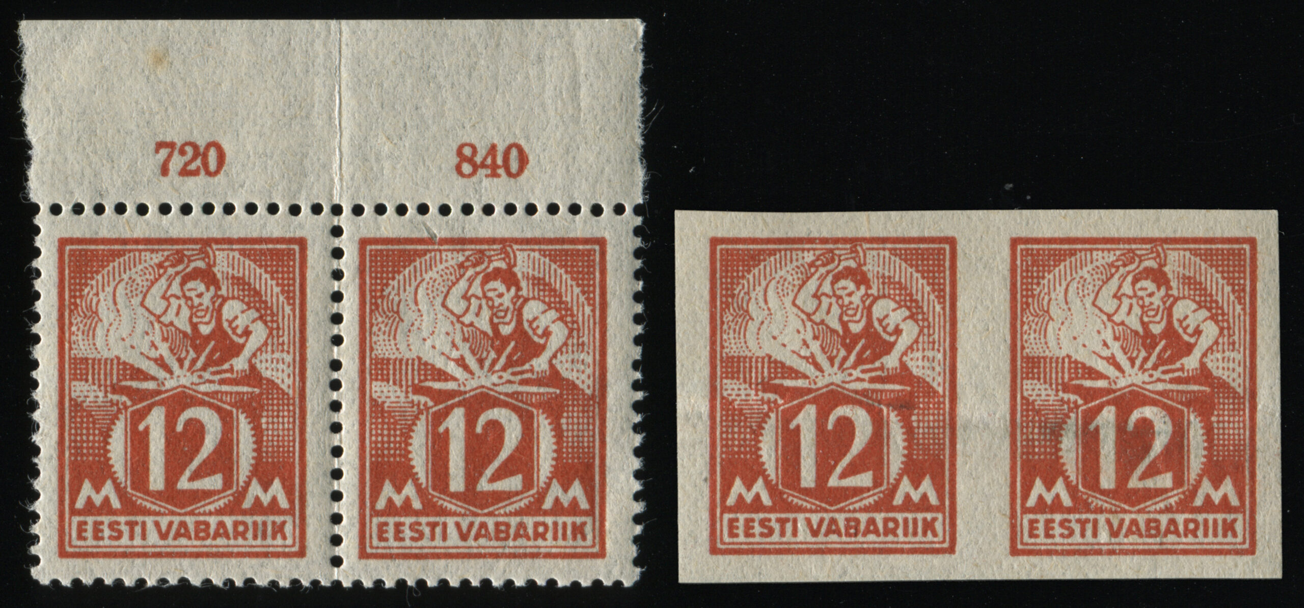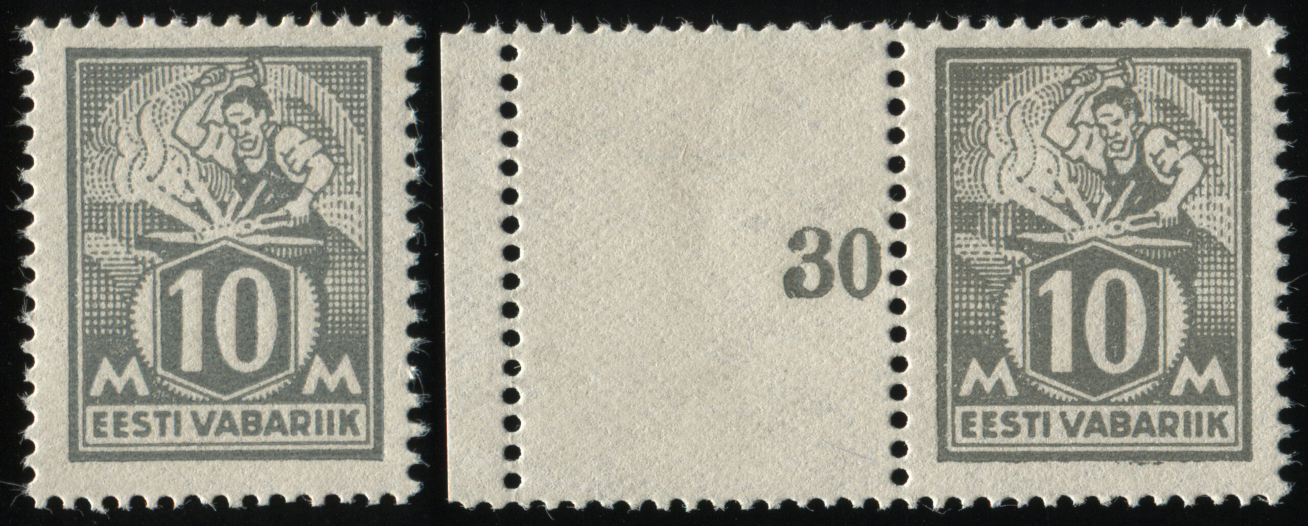 ERMi koguSepp, 18. veebruar 1922, 10 marka, lõigatud, vaheribapaar