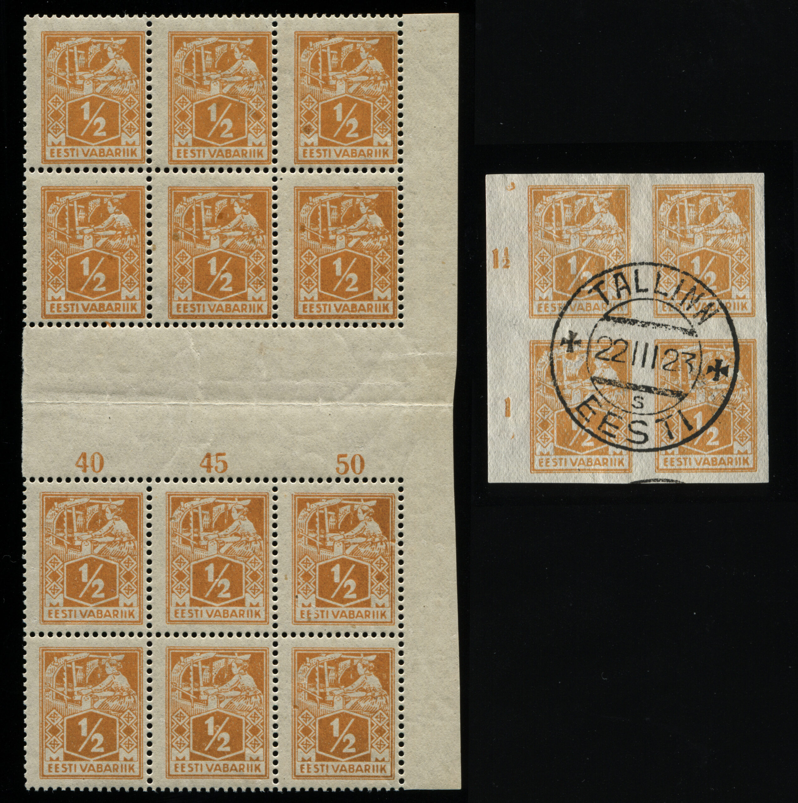 ERMi koguKangur, 27. märts 1923 (hammastatud), ½ m, 22. märts 1923 (lõigatud). Vasakul vaheribapaar, paremal margi ilmumise kuupäeva kalendertempel