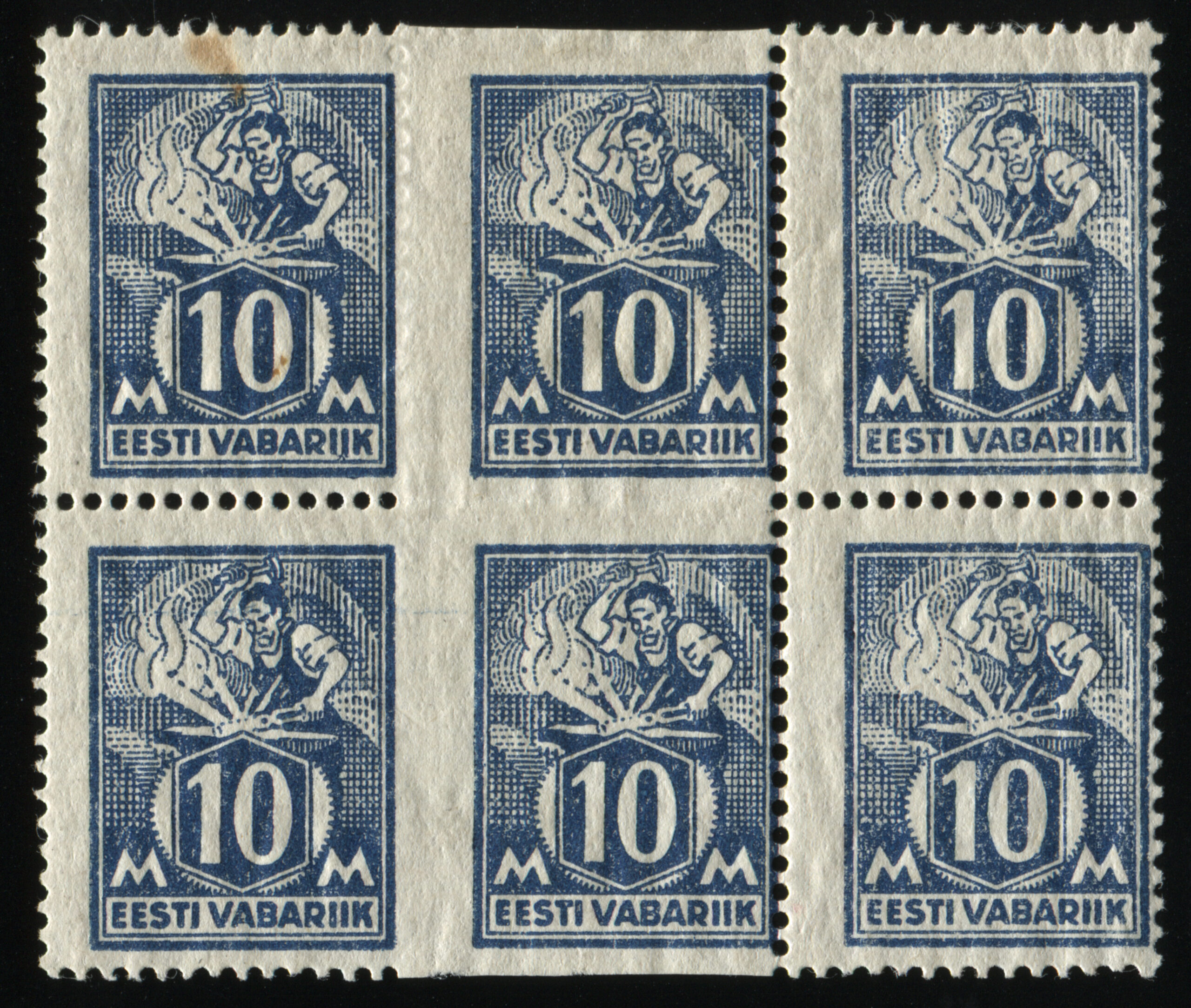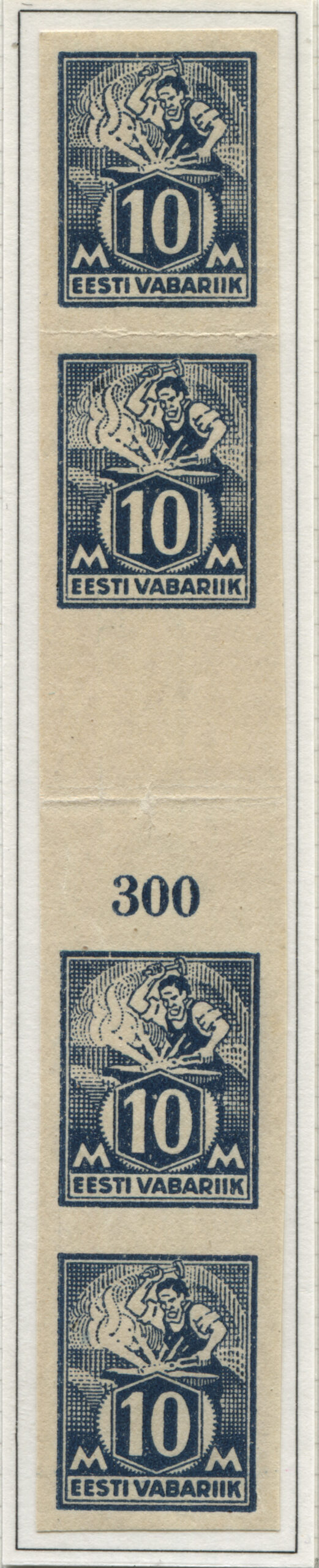 ErakoguSepp, 18. veebruar 1922, 10 marka, lõigatud, vaheribapaar (vaheriba on poogna tühiväli markide vahel).