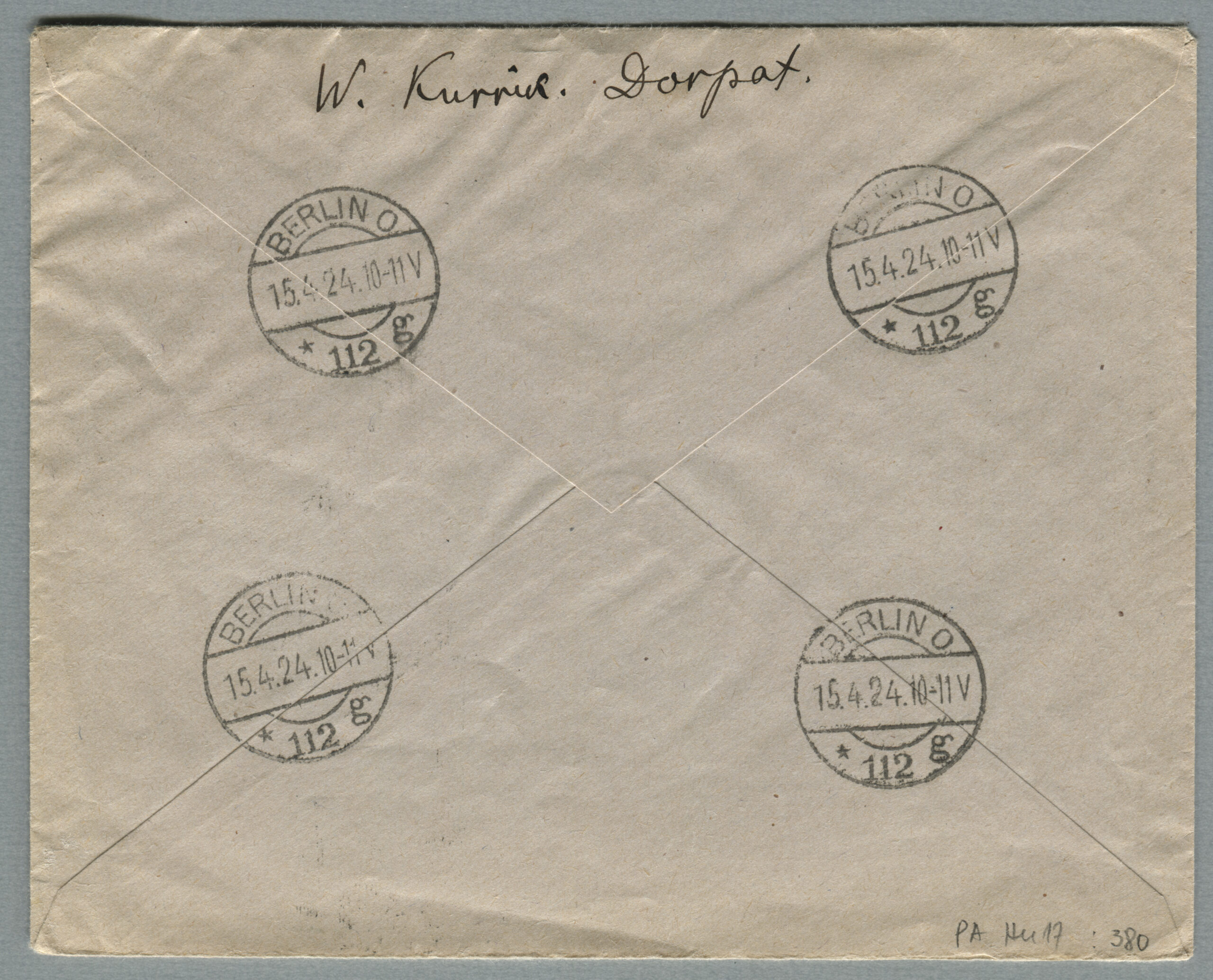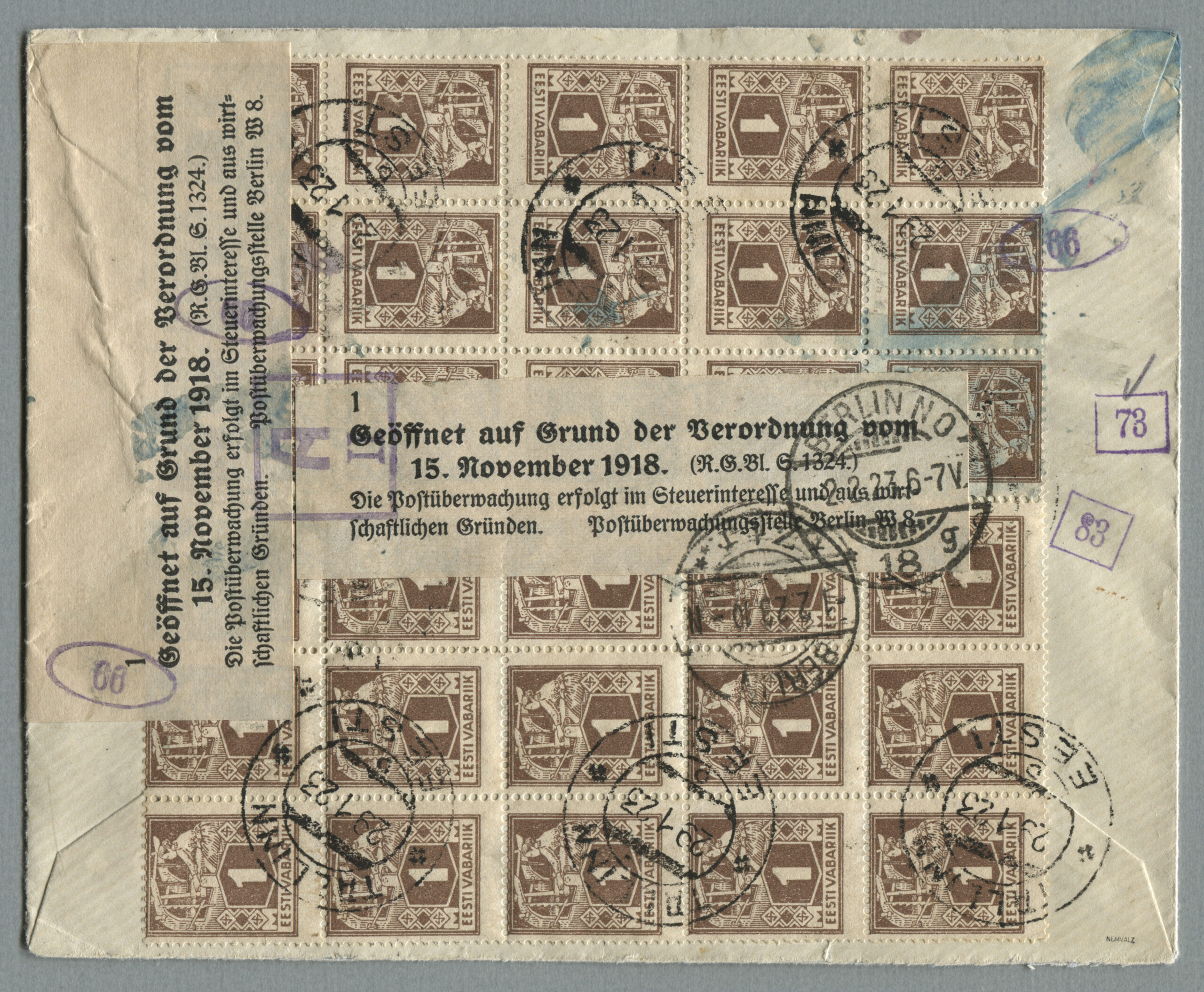 ErakoguTähitud kiri Tallinnast Berliini, 29. jaanuar 1923 – 2. veebruar 1923