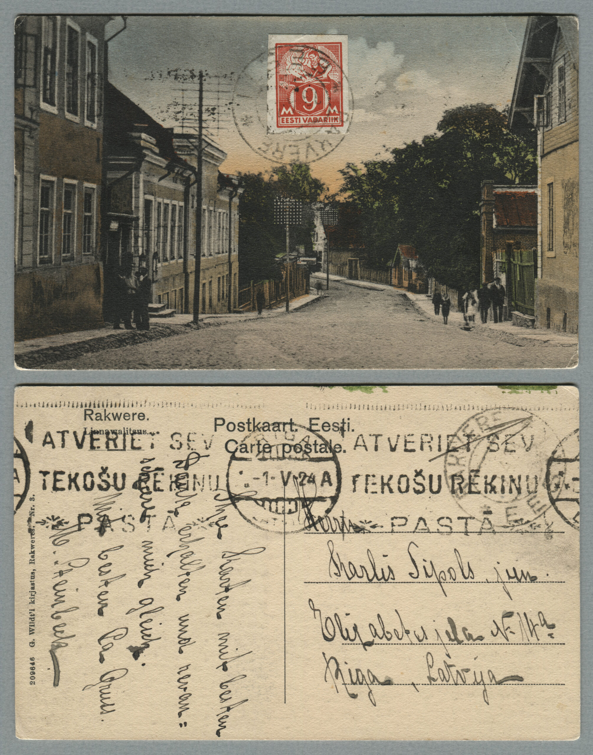 ErakoguPostkaart Rakverest Riiga. 28. aprill – 1. mai 1924. G. Wildt`i kirjastus, Rakwere