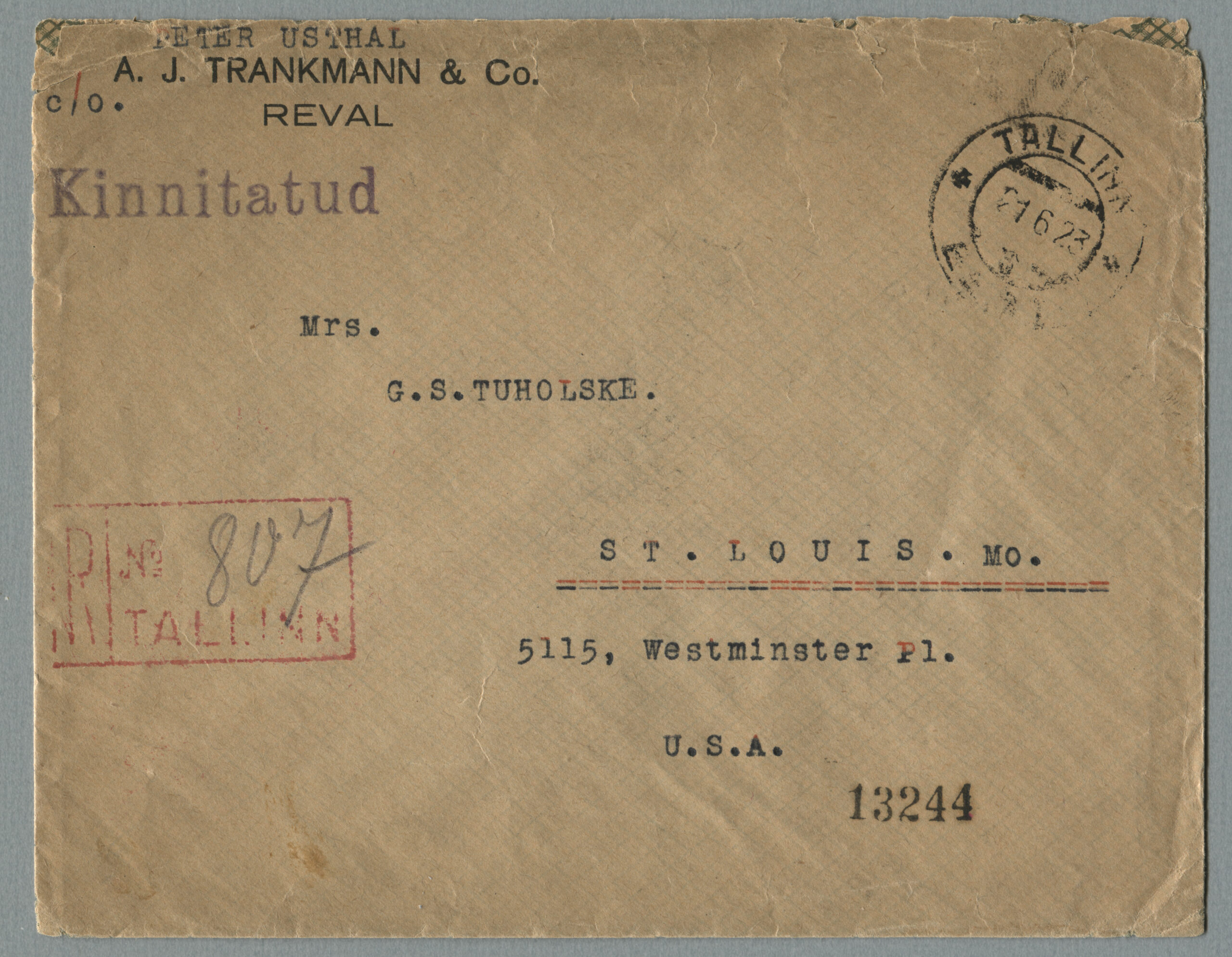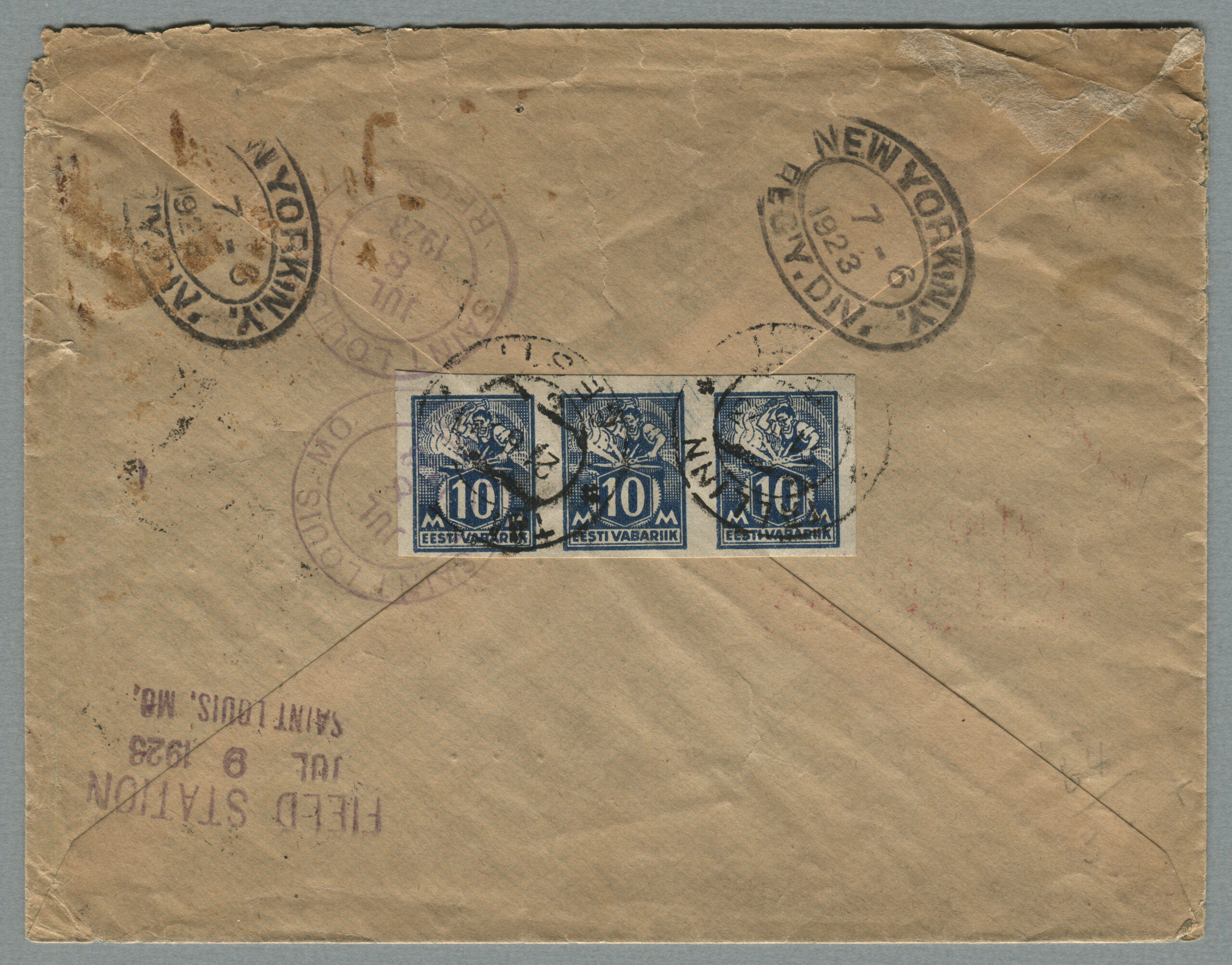 ErakoguRahvusvaheline tähitud kiri Tallinnast New Yorki, 7. juuni 1923 – 8. juuli 1923