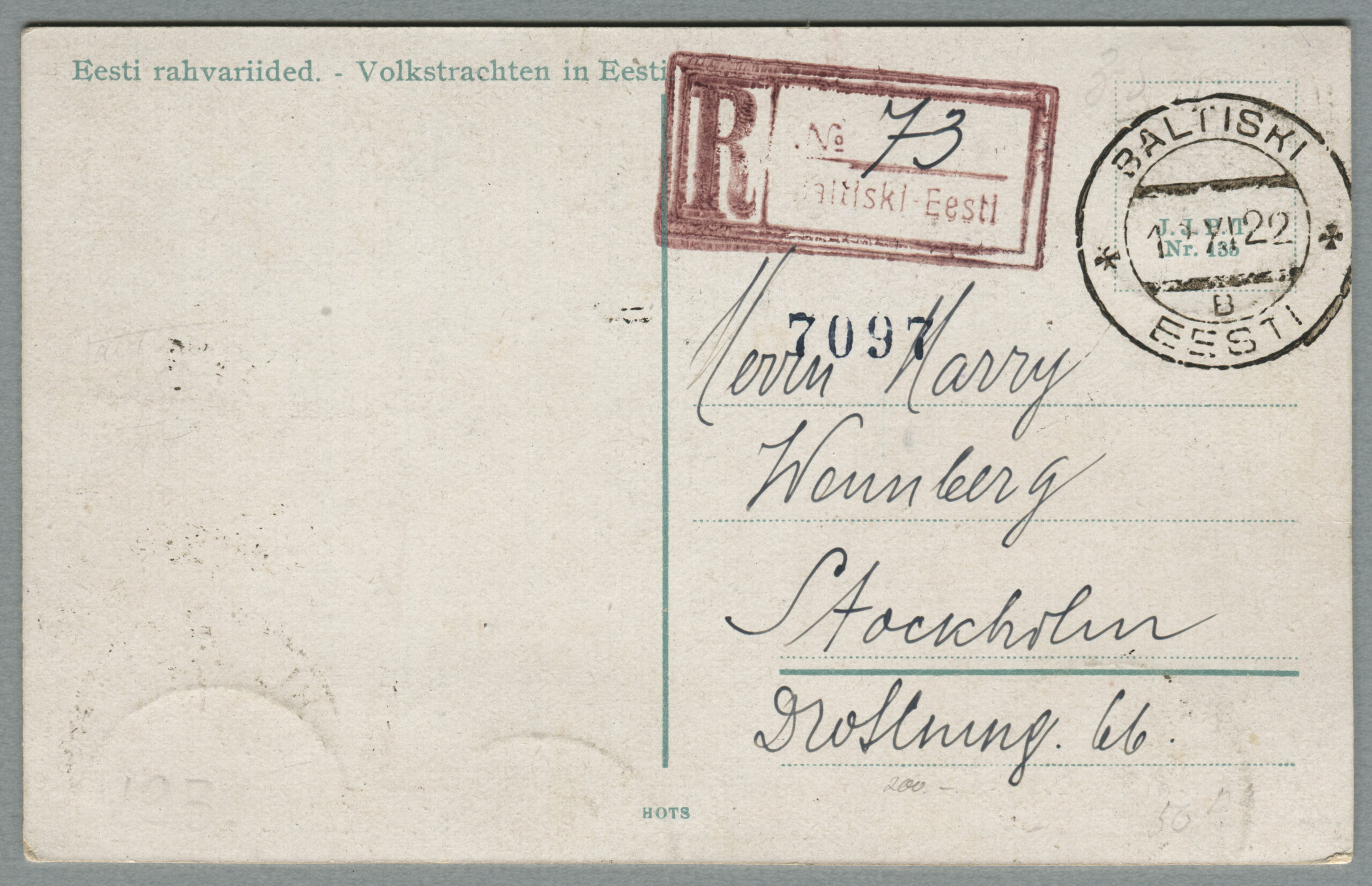 ErakoguRahvusvaheline tähtkiri Baldiskist Stockholmi, 12. november 1922