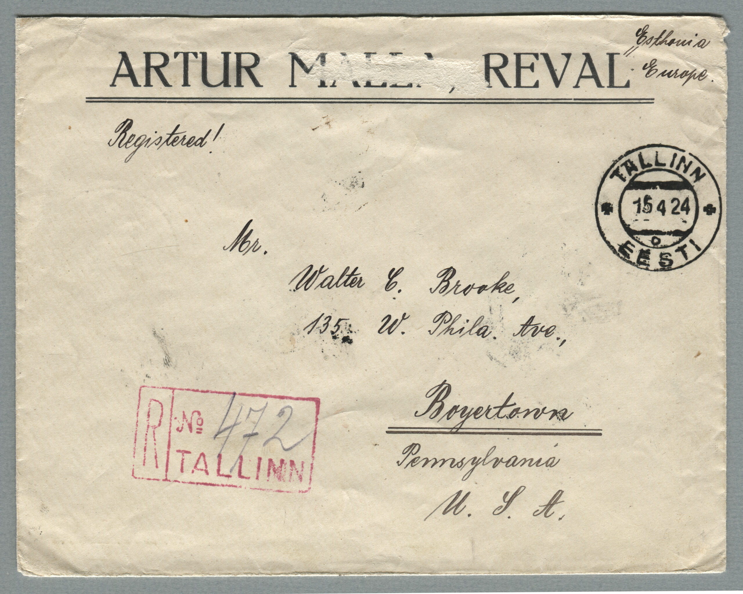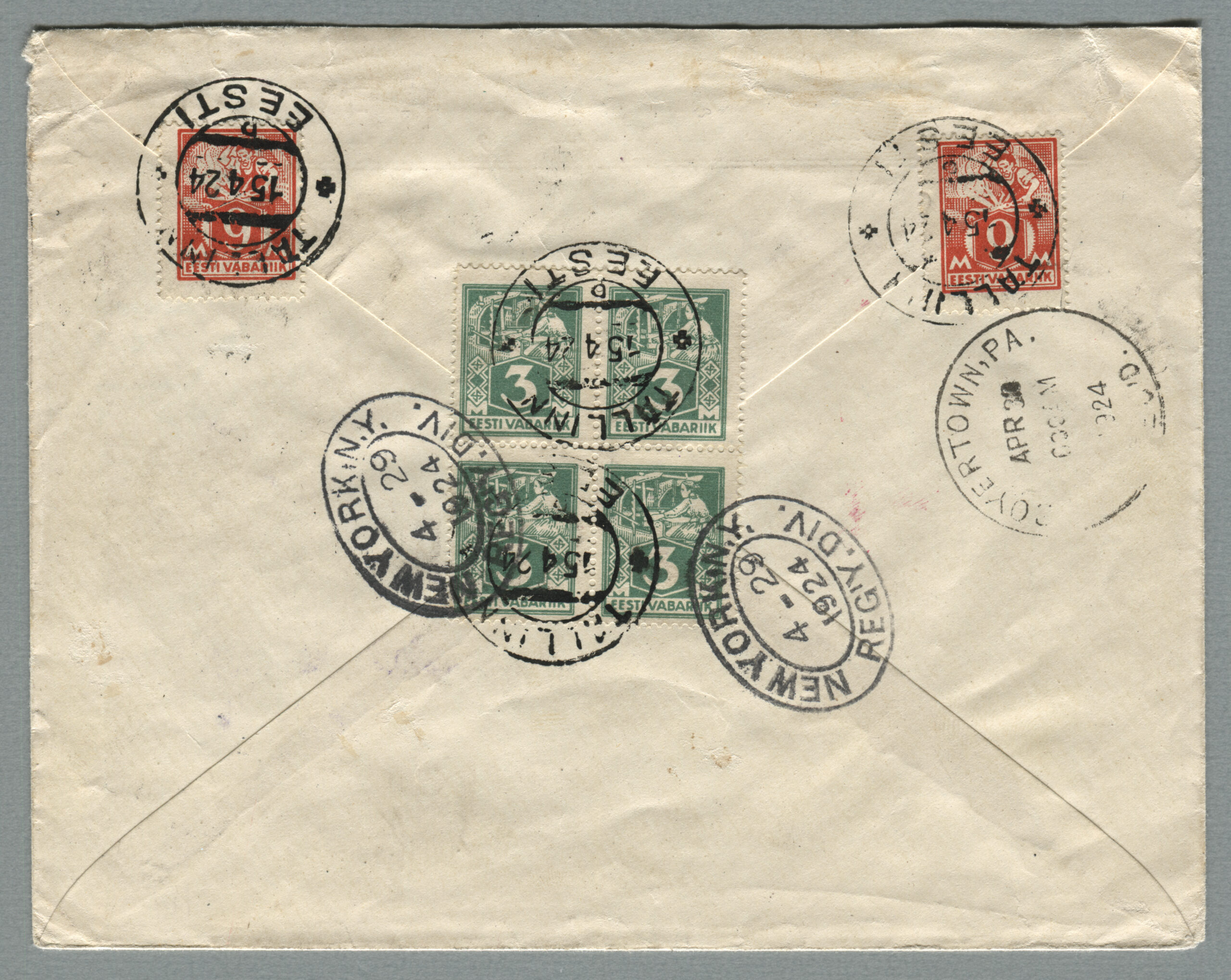 ERMi koguTähitud kiri Tallinnast New Yorgi kaudu Boyertowni, 15. aprill – 29. aprill – 30. aprill 1924