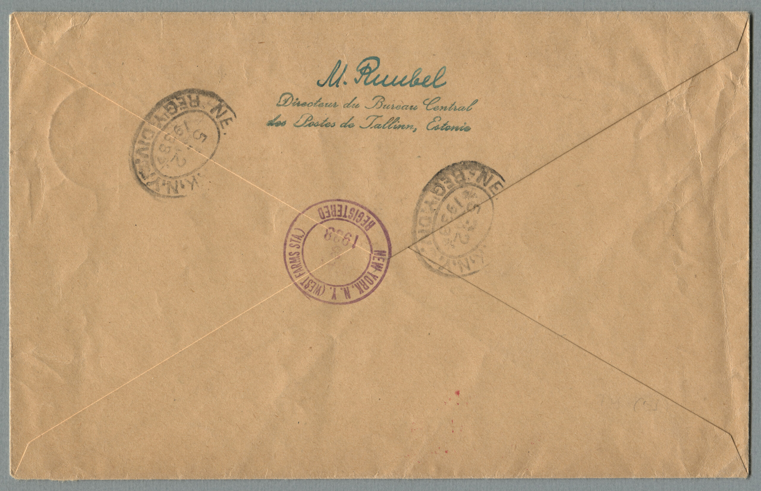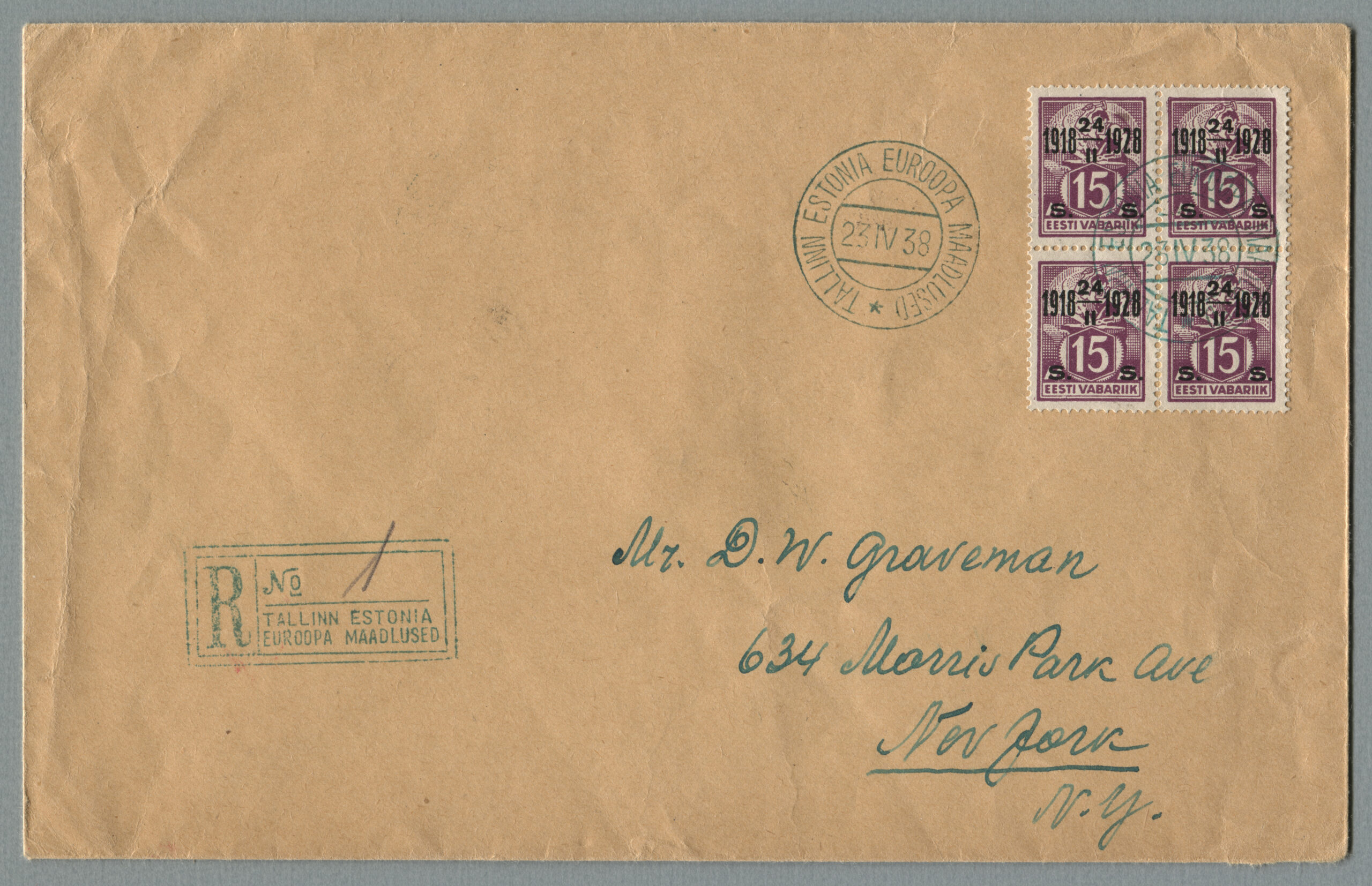 ErakoguTähitud kiri Tallinnast New Yorki, 23. aprill – 5. mai 1938