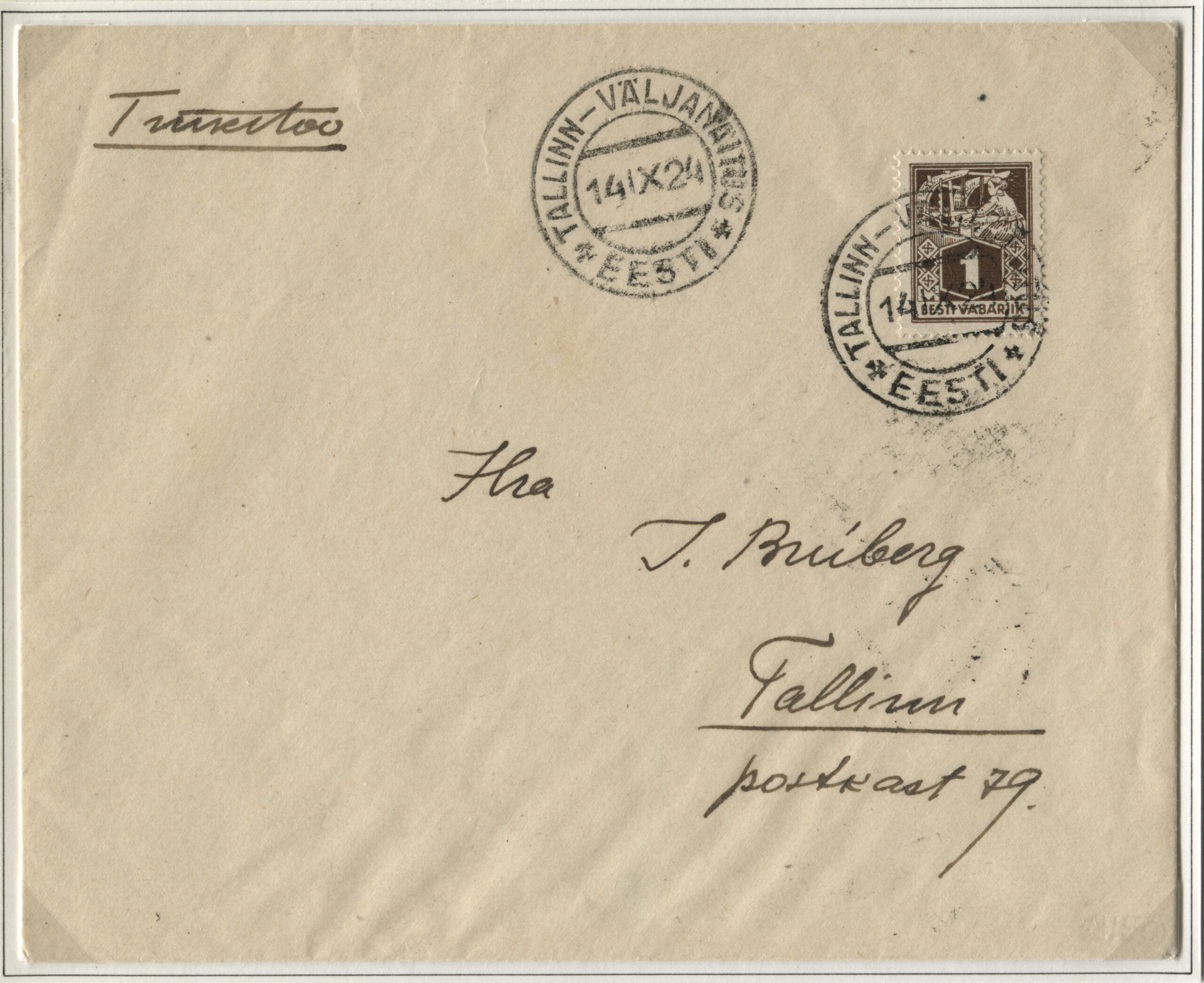 ERMi koguTallinn, 14. september 1924, kohalik trükitöö kiri. Ajutist kalendertemplit „Tallinna väljanäitus“ esineb kirjal harva.