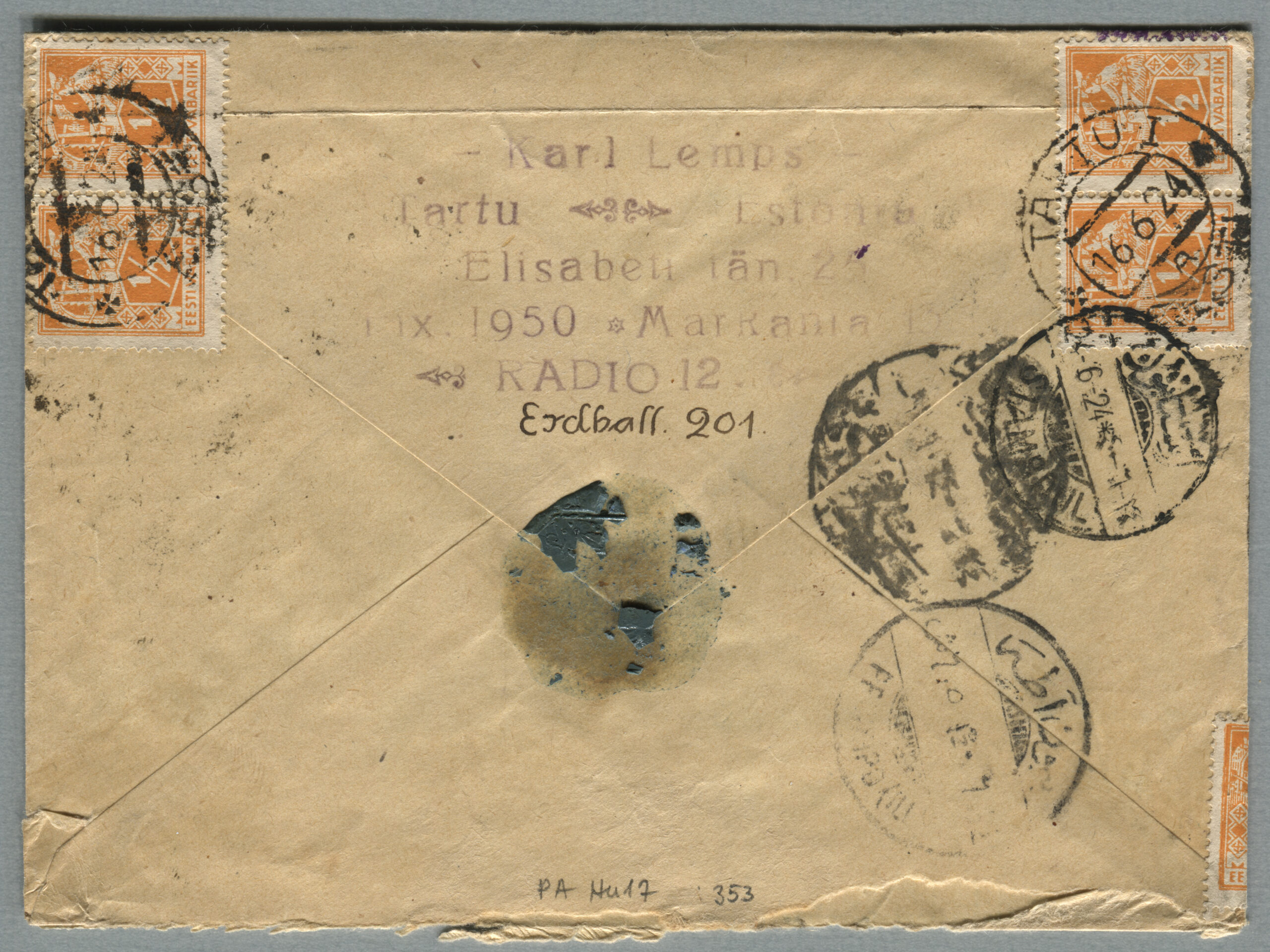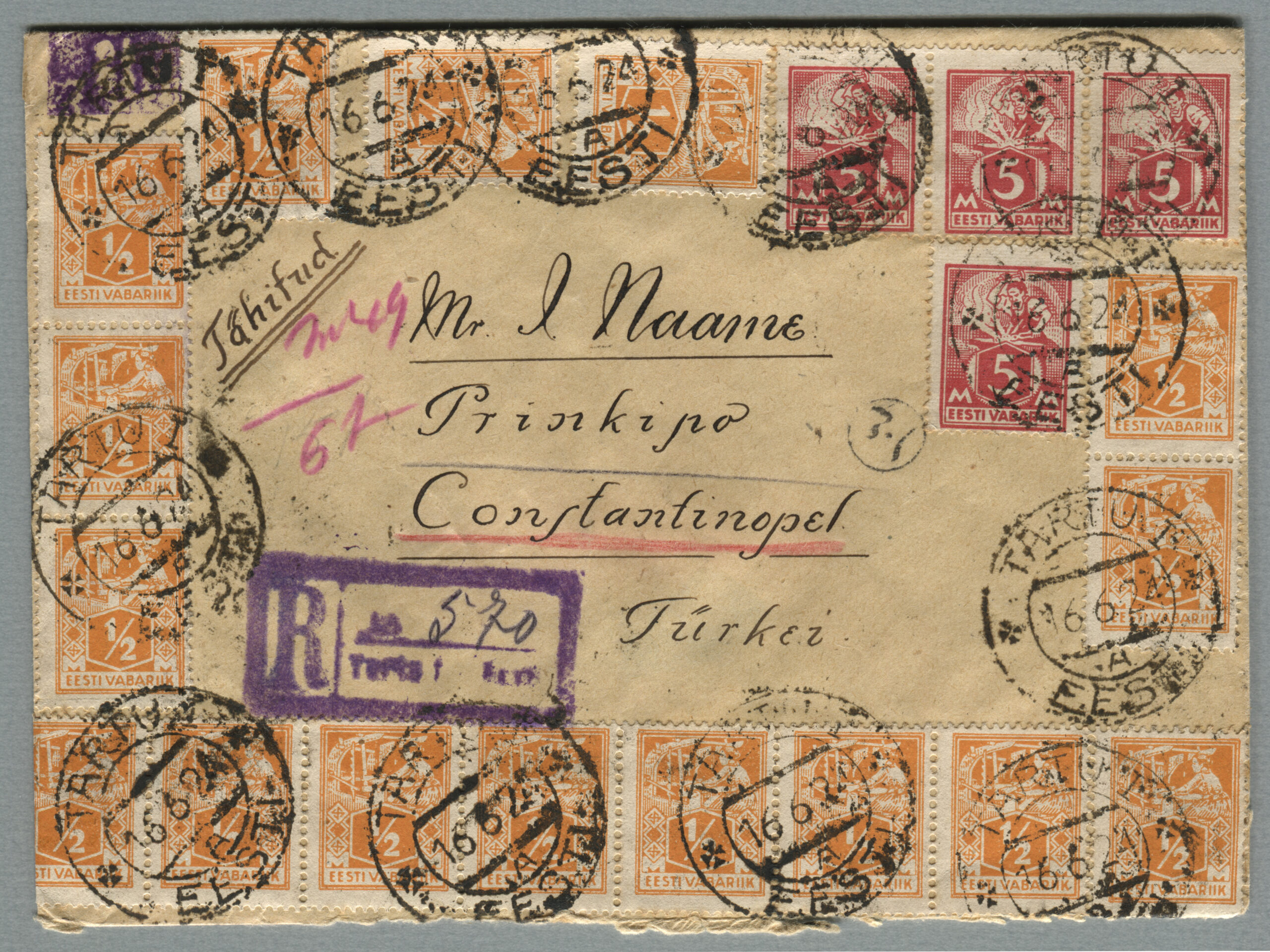 ErakoguTähitud kiri Tartust Konstantinoopolisse, 16. juuni 1924