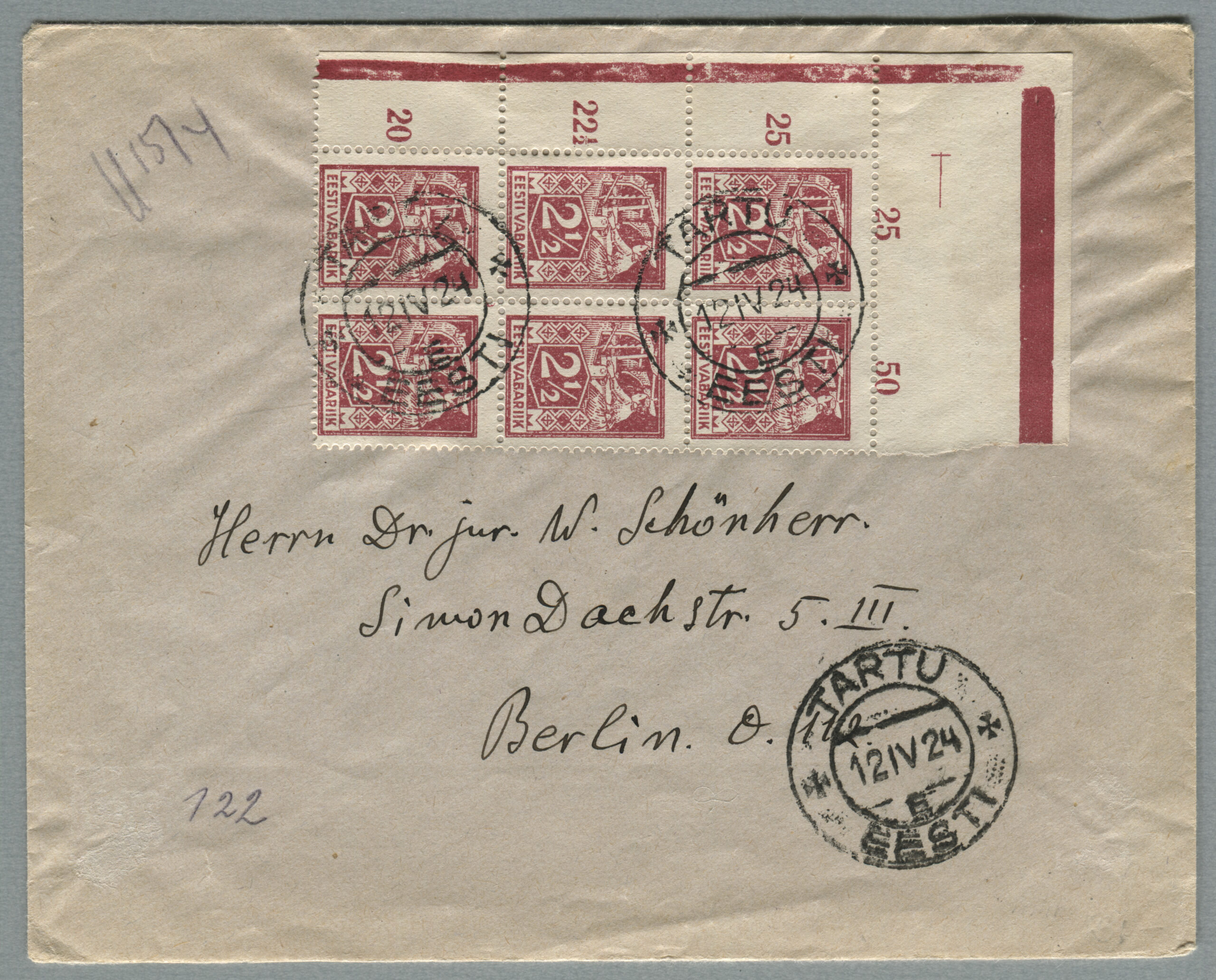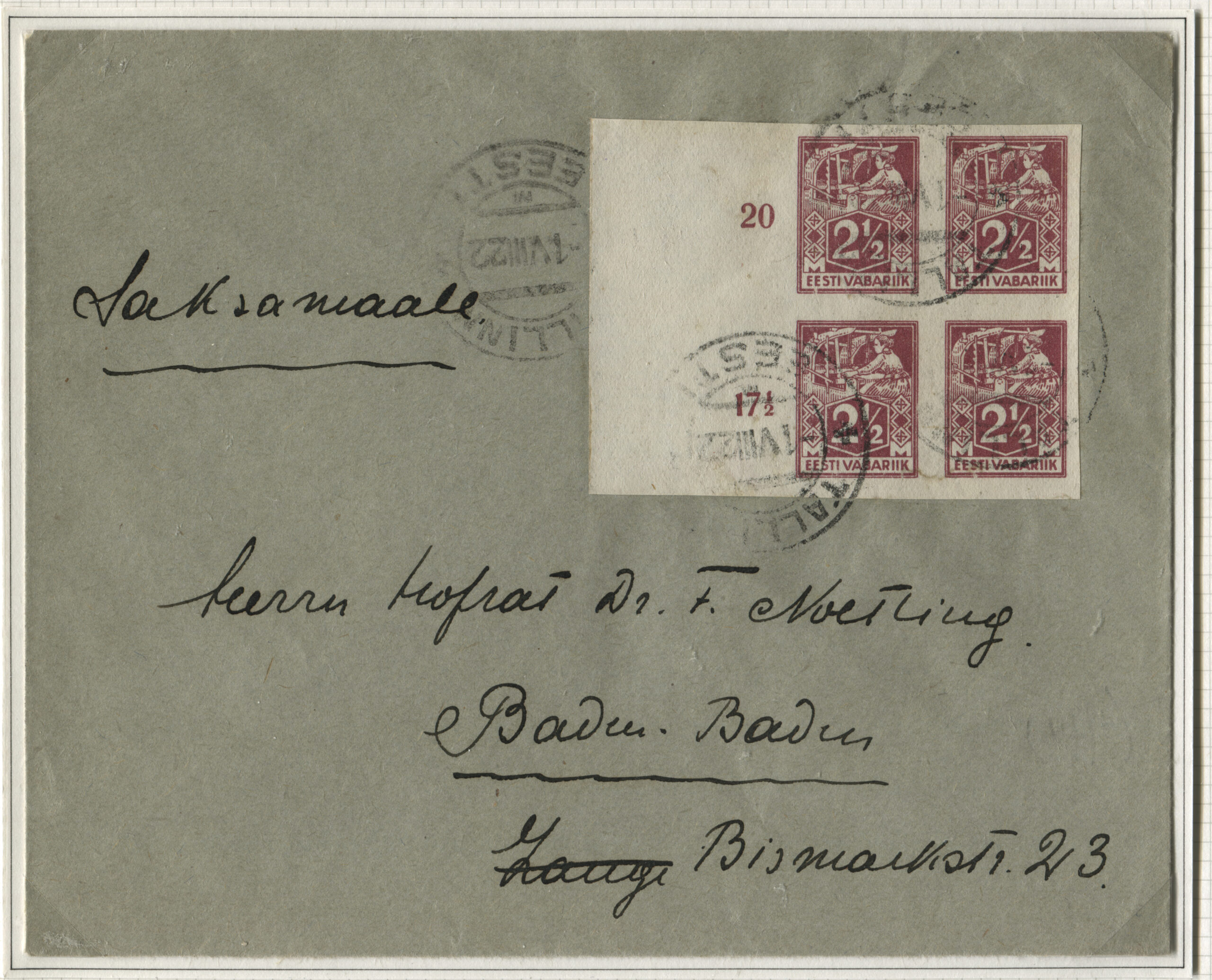 ErakoguTähitud kiri Tallinnast Berliini, 29. jaanuar 1923 – 2. veebruar 1923. Saatja margikunstnik Ilmar Breiberg
