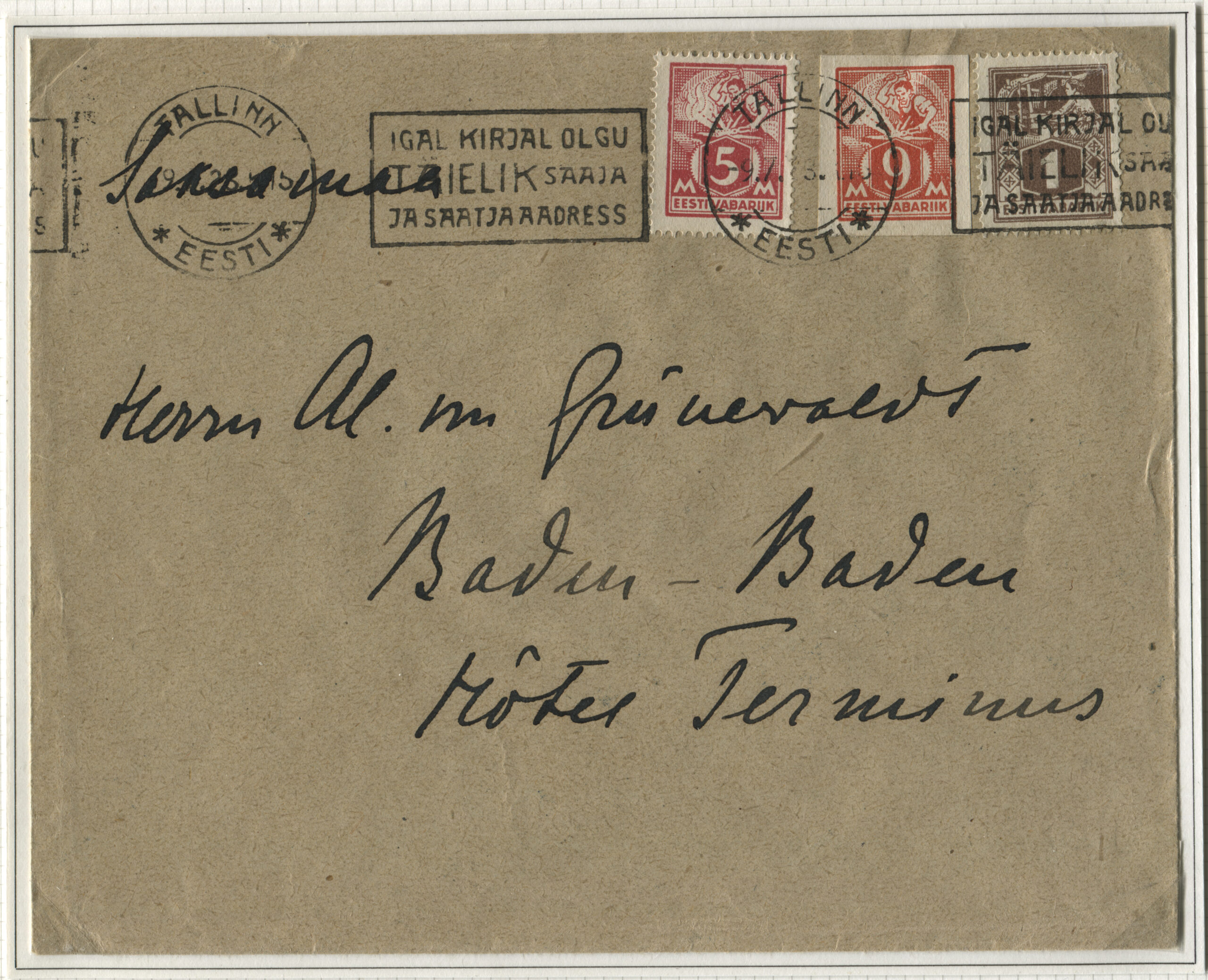 ErakoguKiri Tallinnast Baden Badenisse (Saksamaa), 9. juuli 1923