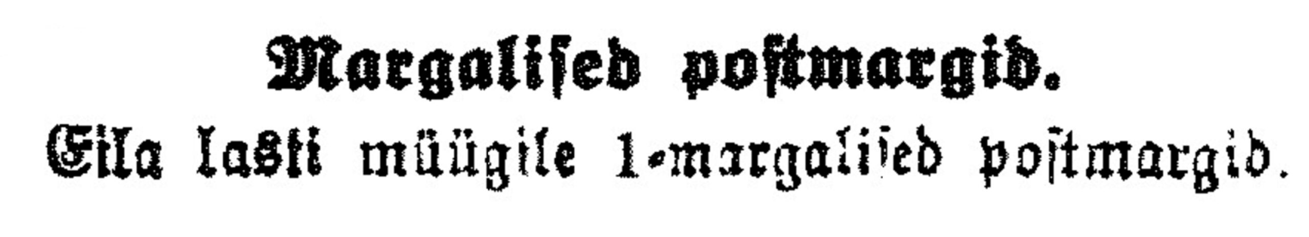 Kirjandus: Hurt, Vambola; Elmar Ojaste. Eesti. Estonia. Philately & postal history handbook. Catalogue. Stockholm, New York: Estonian Philatelic Society, 1986, lk 503–520. Weiner, Isak. Eesti postmarkide, tervikasjade ja ajutiste postitemplite nimekiri. J. & A. Paalmanni trükk. Tallinn, V. Karja tn. 12, 1934, lk 14-20, 61-63. Viigipuu, Elmo. Eesti postmarkide 100 aastat. Riigikantselei ja AS Eesti Meedia, Post Factum, 2018, lk 27. Aru, Mart. Eesti postmargid ja tervikasjad. Kataloog 2015. Eesti Muinsuskaitse Seltsi filateeliaosakond. Köstner, Mait. Filateelia oskussõnastik. Eesti Filatelistide Ühing Rootsis Stockholmis, 1974. Riigi Teataja, nr 60, lk 360, 1921. Riigi Teataja, nr 46–47, lk 212, 1922 Eesti Filatelist nr 24/25, 1979, New Yorgi Eesti Filatelistide Selts ja Eesti Filatelistide Ühing Rootsis, lk 7–32, 41–45. Eesti Filatelist nr 2, 1956, New Yorgi Eesti Filatelistide Selts ja Eesti Filatelistide Ühing Rootsis, lk 10. Eesti Filatelist nr 7, 1961, New Yorgi Eesti Filatelistide Selts ja Eesti Filatelistide Ühing Rootsis, lk 21. Küng, Enn; Aive Küng, Toomas Türk. Eesti rahvuslik postiteenistus 90. AS Eesti Post Postimuuseum, Tartu 2008, lk 35 Waba Maa, nr 41, 18.02.1922 Tulevik, 13.01.1923